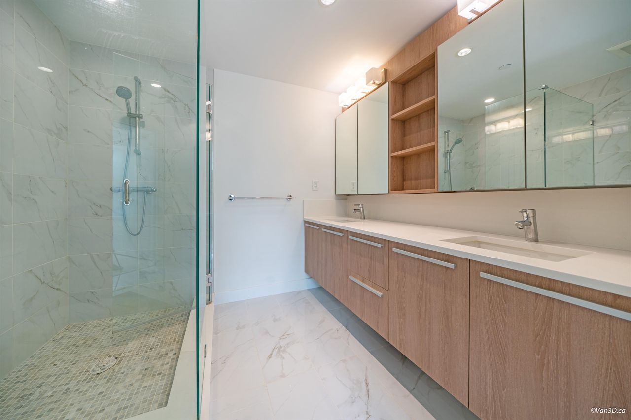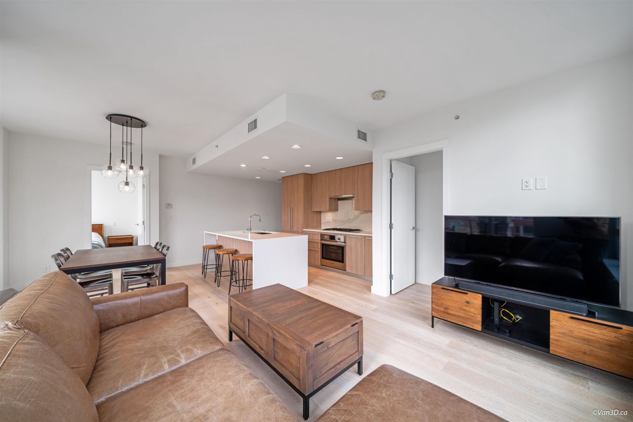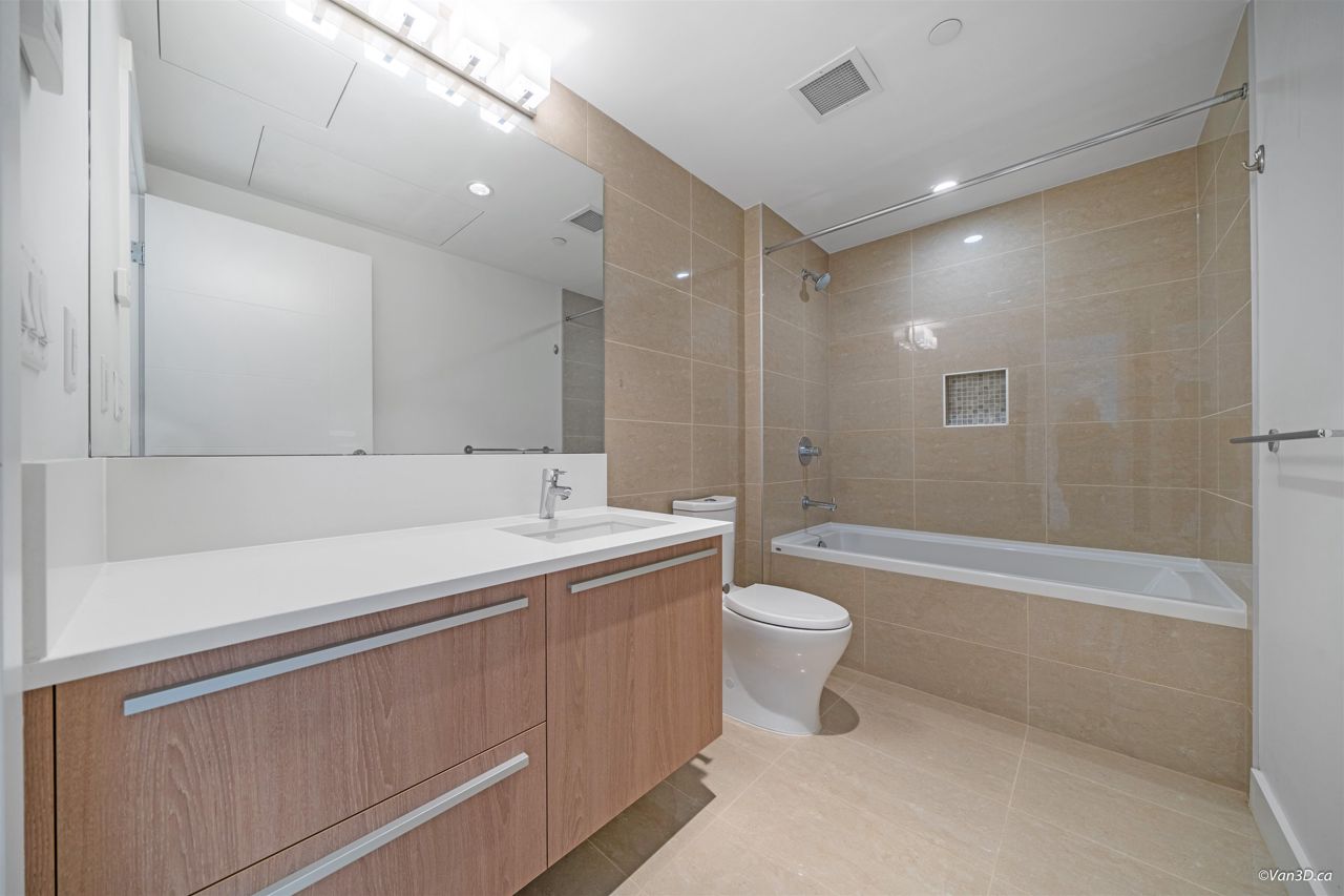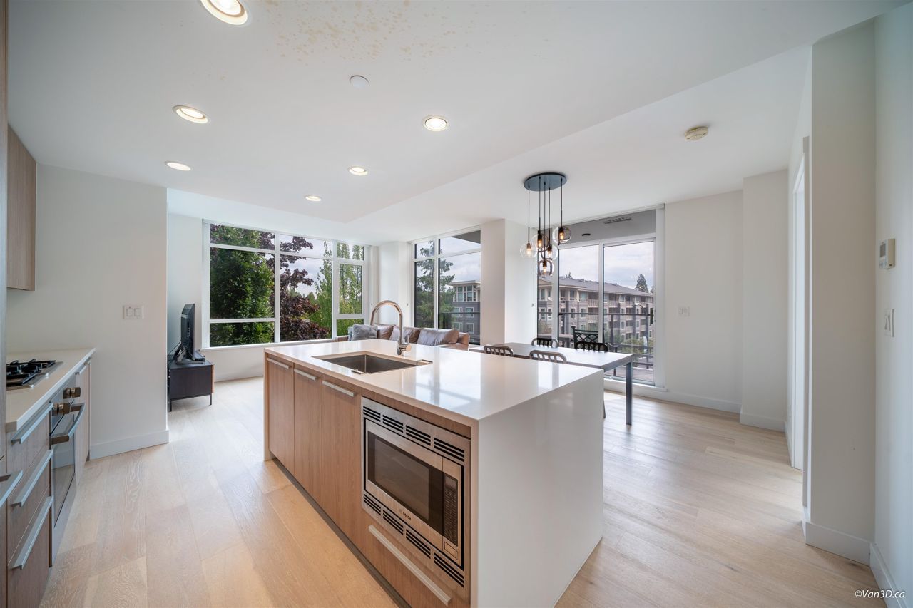 LOCATION LOCATION LOCATION. This 2 bedrm 2 bath suite in concrete low rise built by award winning Bosa Dev. It's close by scenic Lynn Valley for outdoor sports in biking & hiking and it embraces all convenience in urban living where grocery, restaurant, retail stores, clinics, banks are within a minute walk. This bright corner suite offers all elements of a modern comfort living with open and spacious layout, ample light from large S & E facing windows, high ceiling, central heat & A/C, top notch gourmet kitchen w/Inform Interior cabinetry, quartz counter top island, gas cooking and Bosch appliances; great privacy in bedrooms on separate sides. Build. amenities include gym, party room, pet wash station, bike storage. 2 side by side parking spots and 1 storage locker included.