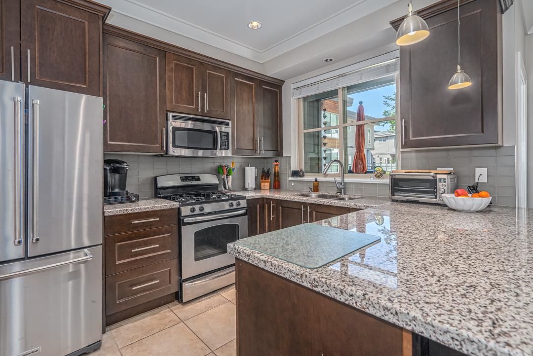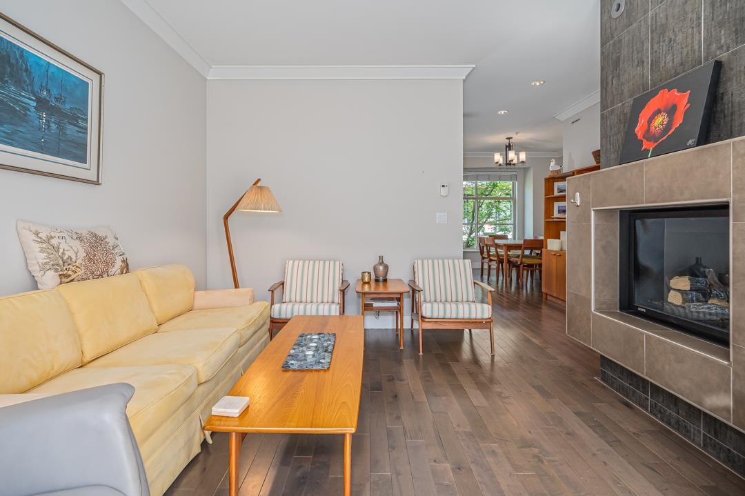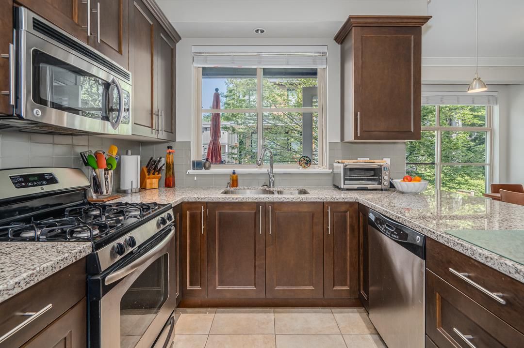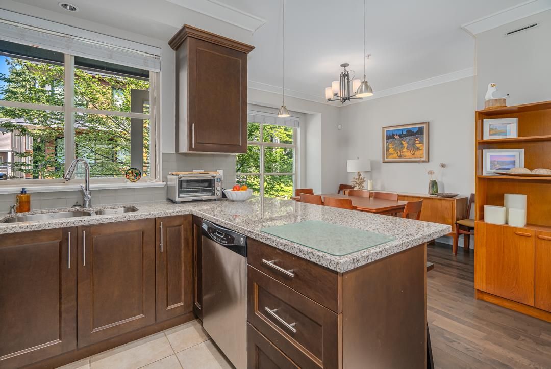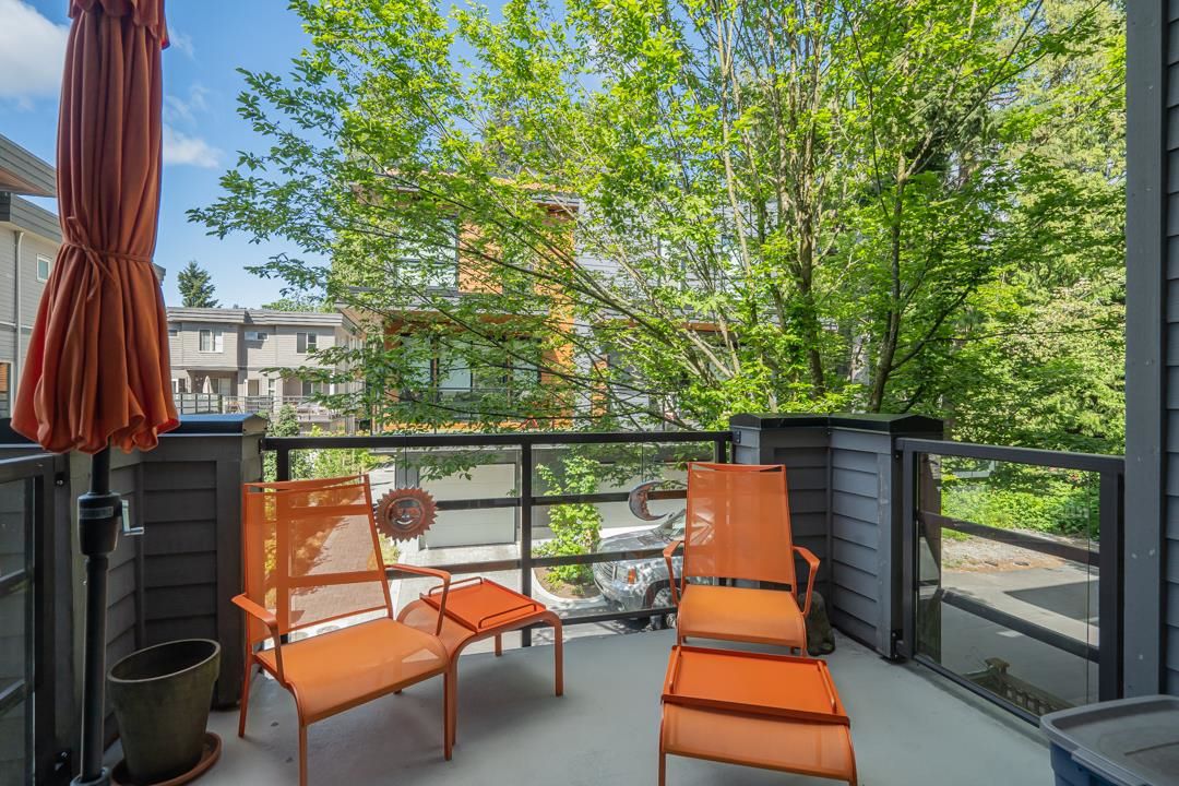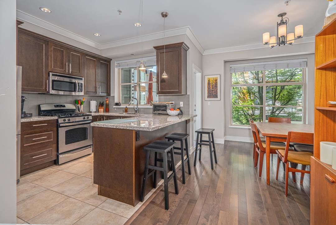 Contemporary Townhome is worth viewing with spacious main floor with hardwood flooring, wonderful kitchen with granite counters & stainless appliances and a cozy gas fireplace in the living room, 2 large bedrooms & 2 full bathrooms upstairs. The lower level has a 3rd bedroom & a recreation room. Extra features include 9’ ceilings, ultra large windows on the upper 2 floors, 2 patios and 1 large sundeck of the kitchen for BBQ’ing, instant hot water & 1 car parking. Very well run complex of 14 homes with low maintenance fee of $395/m and a proactive strata. Award winning Vicinity townhome by Brody Developments. Park your car and walk to Lynn Valley Mall, restaurants, library, Lynn Valley Elementary & Argyle Secondary, Karen Magnussen Recreation Centre.
