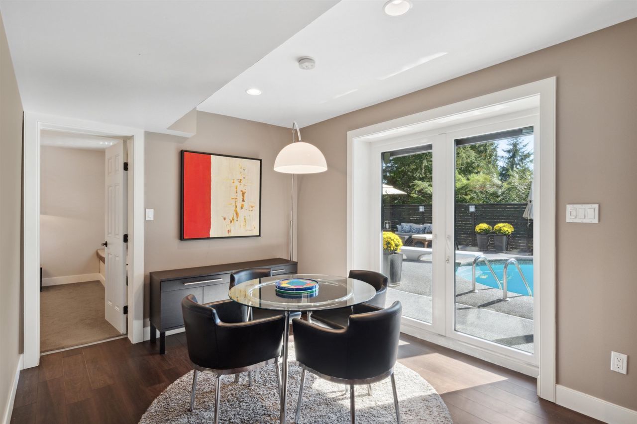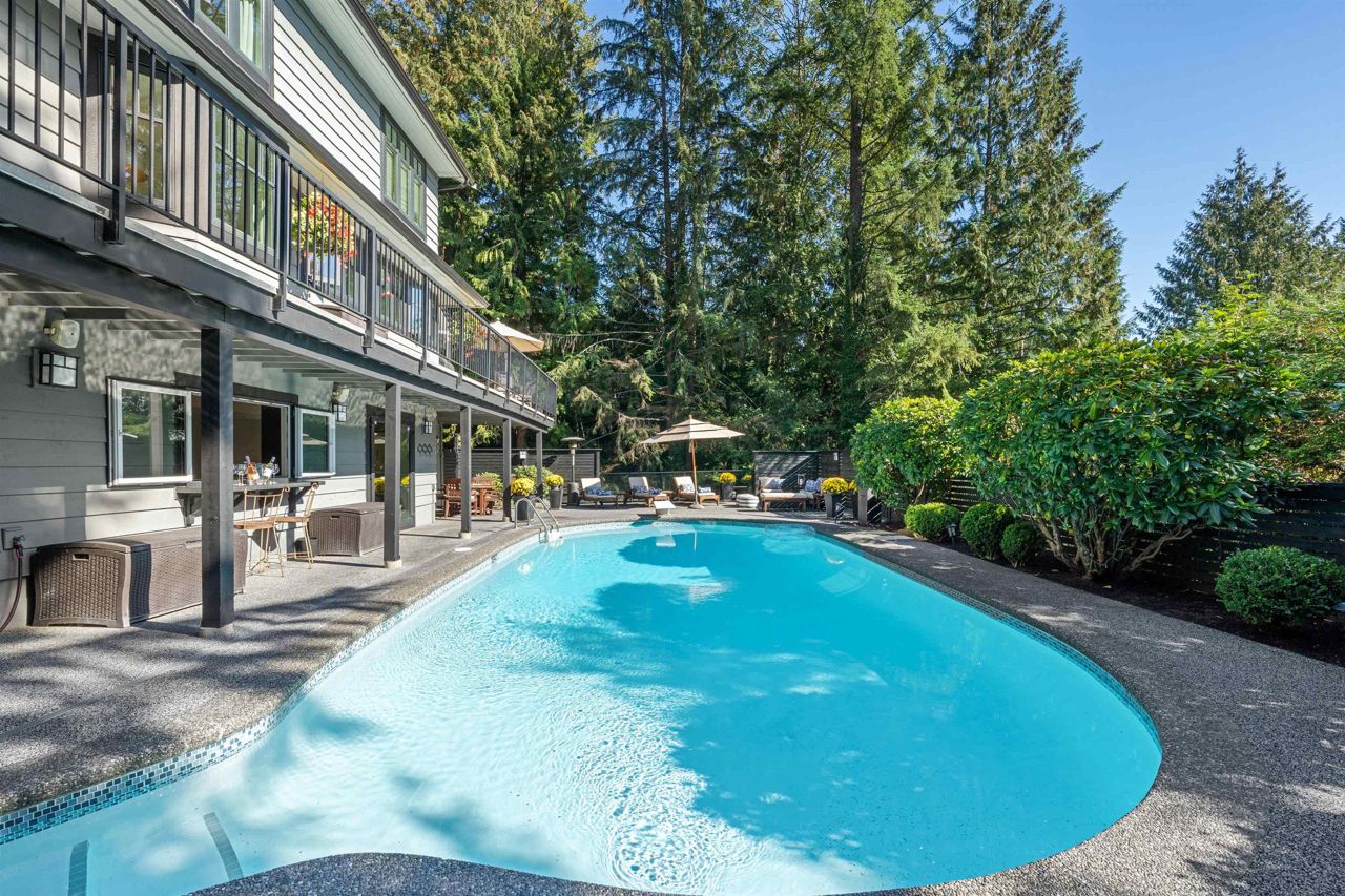 Poised in an idyllic enclave of executive homes near Edgemont Village, this Poskitt designed masterpiece will impress. Exquisitely finished w/ custom millwork, hardwood floors & limestone spa ensuite, this home is perfectly composed for family life & stylish entertaining. The updated chef's kitchen & formal dining room will accommodate your largest gatherings-up to 16 in fact! For more casual fun, head to the recroom complete with wet bar opening to the resort-style pool & south facing patio. Fully landscaped, your estate size lot with 105’ of frontage offers privacy & a gorgeous greenbelt outlook. You’ll appreciate 4 bedrooms on one level, with a generous 5th bedroom below for guests or teens. Until then, the kids will love the cul-de-sac & neighbouring playground. This one is special!