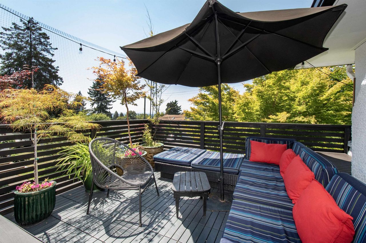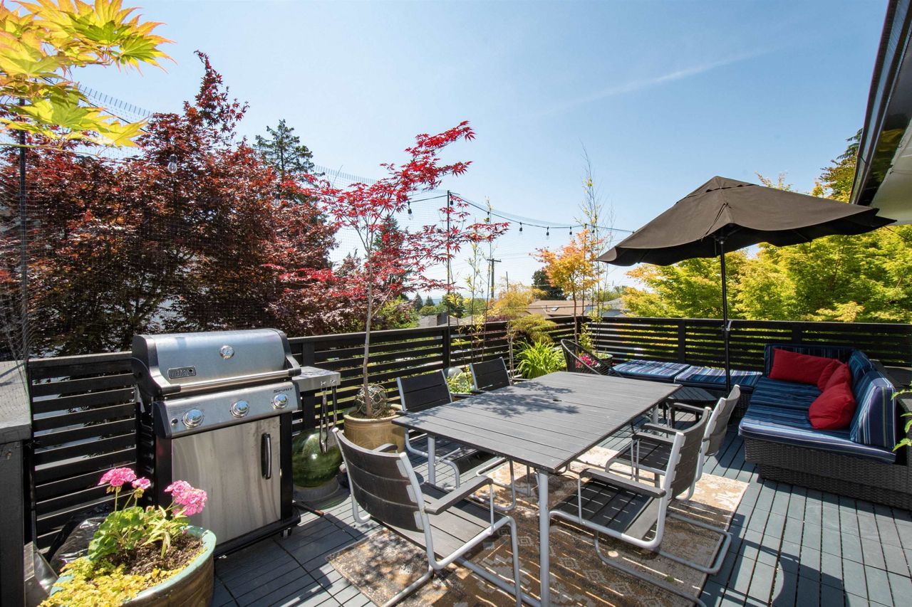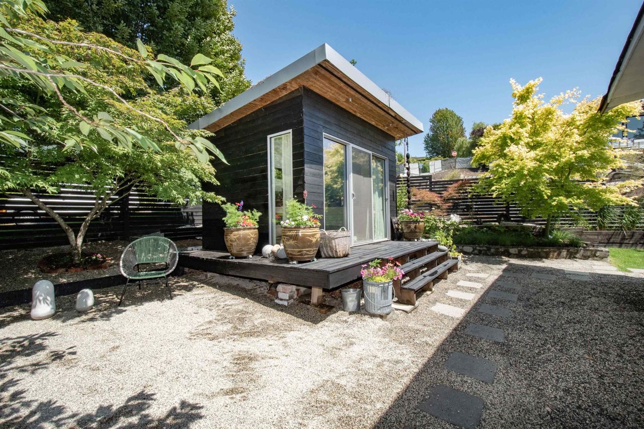Wonderful family home on a trophy lot in the sought after Marlborough Heights! Sitting on a corner lot with 98' frontage, surrounded by perfectly maintained gardens and yard, the home is wrapped in nature and privacy. The main floor features open concept living with an updated kitchen. The indoor space transitions perfectly to the massive SW facing deck with ocean views, perfect for summer BBQs or an evening cocktail with friends. Downstairs is an ideal area for kids with a large living space, two more bedrooms, mud room and full kitchen. Or use the space as a suite for in-laws or a 2 bed mortgage helper. There is a fantastic detached studio (with power), ideal for WFH or art studio. Cool outdoor shower/soaker set up and XL garage round off this wonderful space. Come view today!