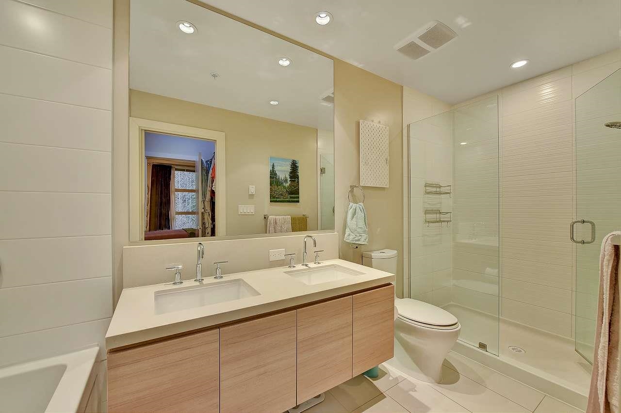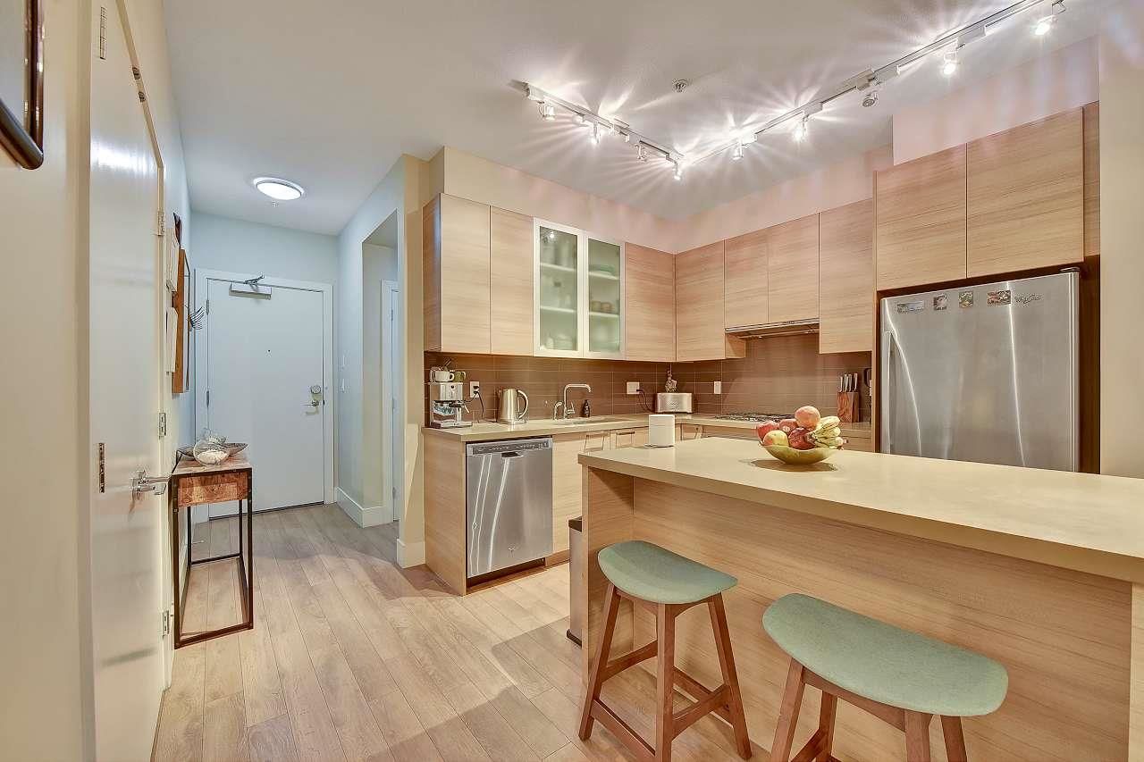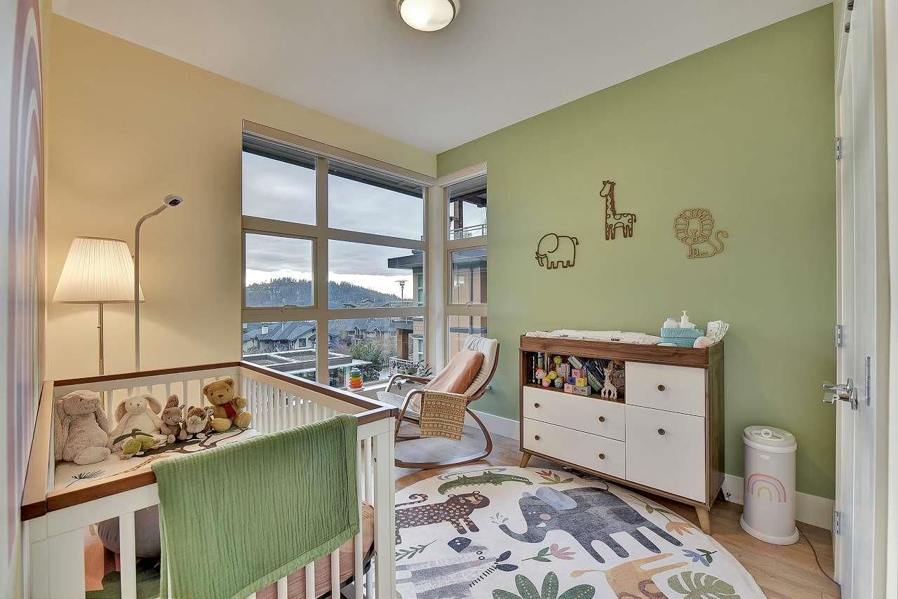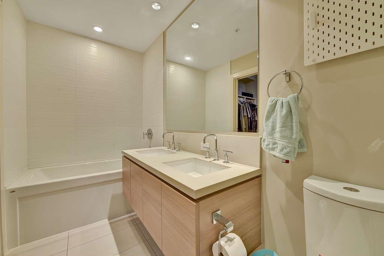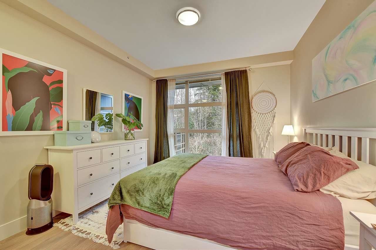 Welcome to Destiny 1 in Roche Point. This immaculate 3 bedroom corner unit features windows on 3 sides, with views of Burrard Inlet south from one, and a treed outlook from the kitchen-living-dining area. The spacious kitchen with gas cooktop opens onto the large dining and adjacent living room with electric fireplace and light laminate floors. Across the back a partially covered 200sqft deck overlooks treed privacy. The master bedroom is beyond the dining room and features a walk thru closet and spa like ensuite. Ensuite laundry and second bedroom with view of the Inlet complete this floor plan. 2 side by side parking stalls with electric car charger. Remote controlled blinds in Bedroom 2 and new patio flooring - Must see!