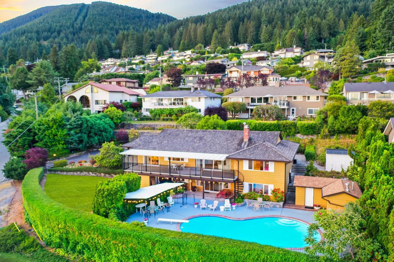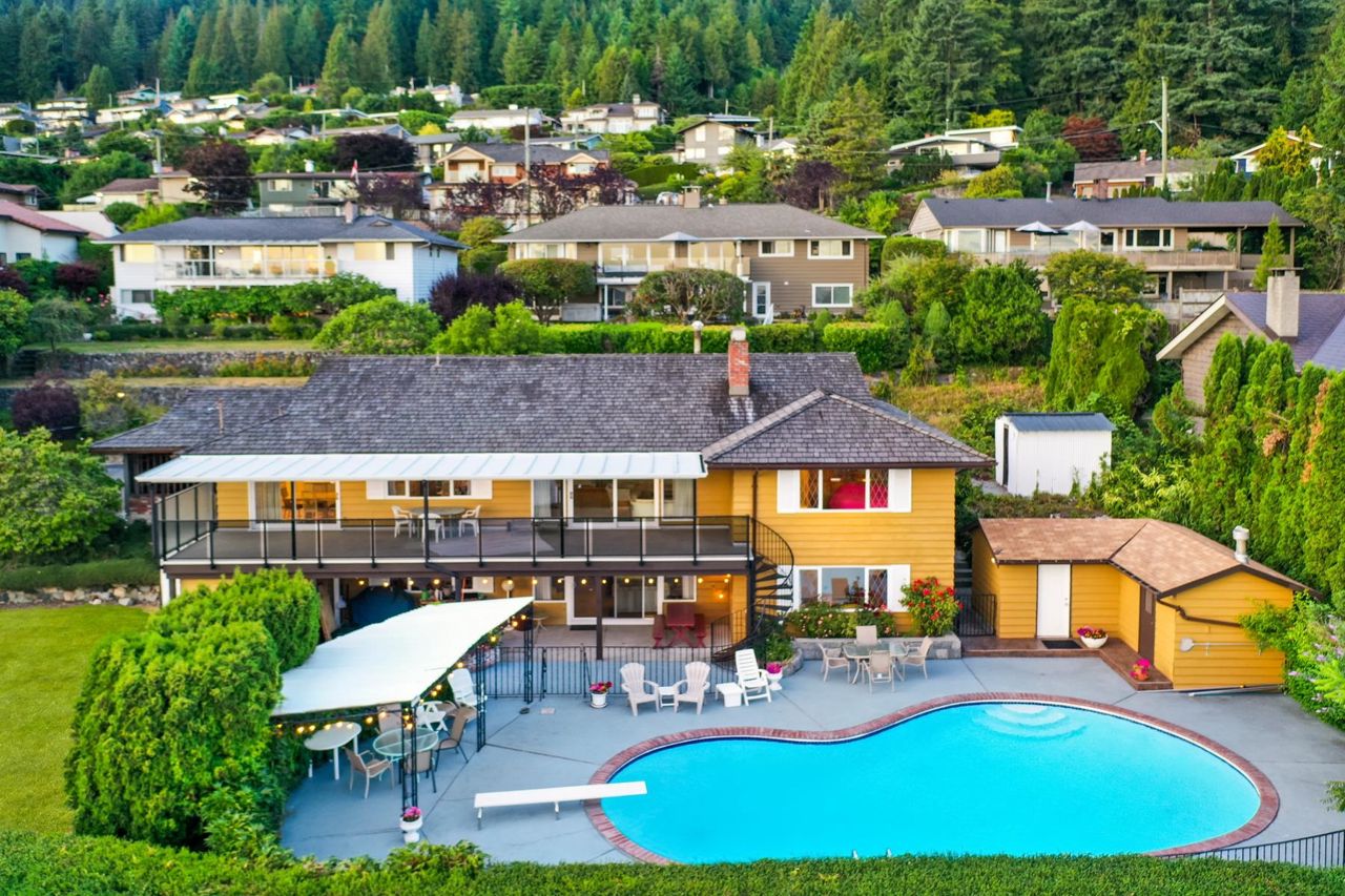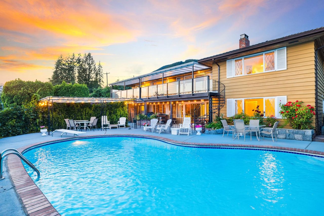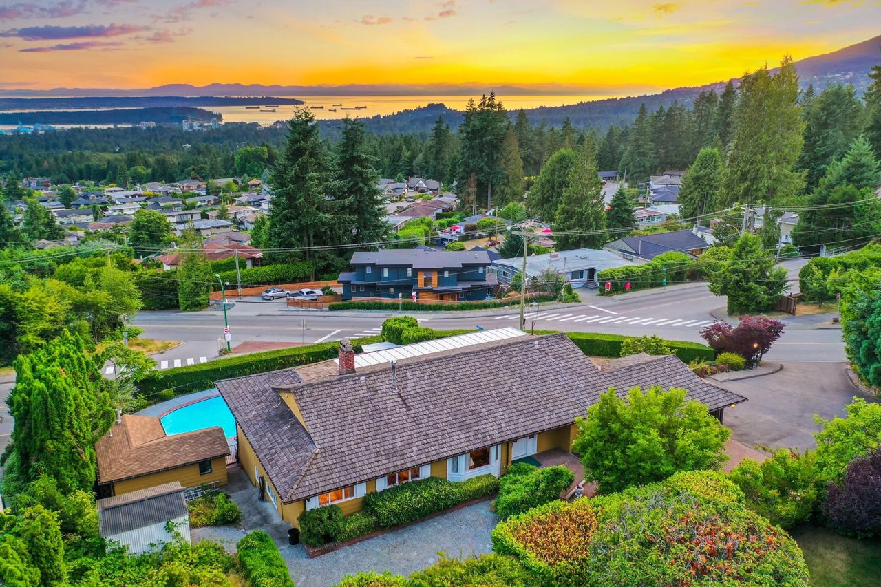 A beautiful Upper Delbrook view home on an estate-sized lot with a sub-division application submitted at the DNV. This is a great opportunity to own this amazing half acre property, with stunning views of the city and water. The proposed two lots meet minimum size requirements for RS3 zoning. The existing home is spacious, bright and beautifully maintained. With its southern exposure, the property has all day sunshine, and killer sunsets! The home has ample accommodations, with 5 bedrooms and 4 bathrooms, great living spaces and a large pool for those hot summer days. Close to recreation, playgrounds and parks, you are also in the coveted school catchment of Braemar Elementary & Carson Secondary (IB).