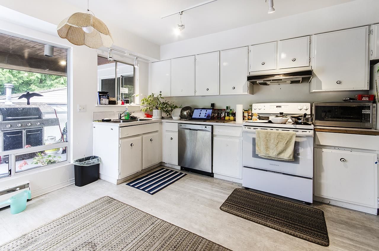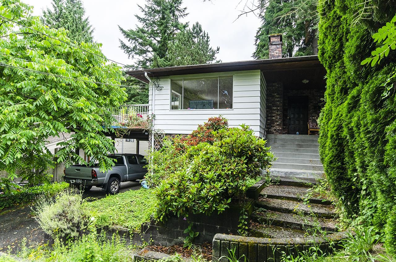 This family home is located just steps away from a waterfront park - perfect for swimming & kayaking! Strong, well built home features 5 bedrooms (3 up), 2-1/2 baths, & fully finished downstairs (except workshop). The upper level is bright & airy with hardwood floors throughout, 3 bedrooms & 1-1/2 baths. The kitchen is large & bright with floor to ceiling windows overlooking 500 sq ft deck. Downstairs features a finished rec room/office with gas fireplace & marble surround, 1-2 bedrooms, bathroom with shower, & a large storage . Kitchen area down makes for an easy suite down or in-law accommodation. Perfect for Deep Cove lovers with beach and park steps away. Great building lot or renovation project.