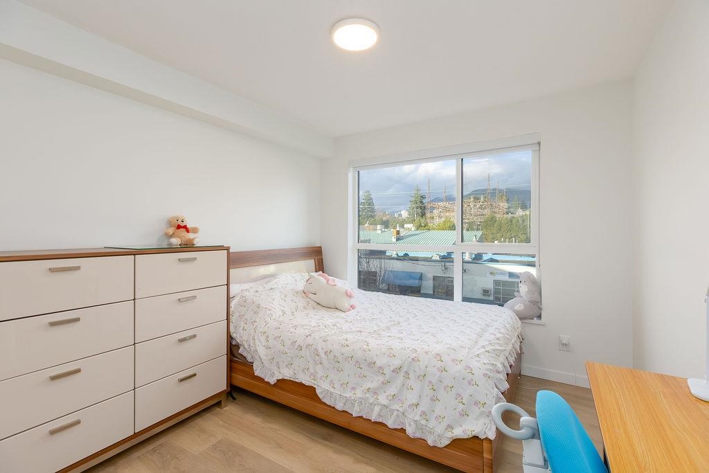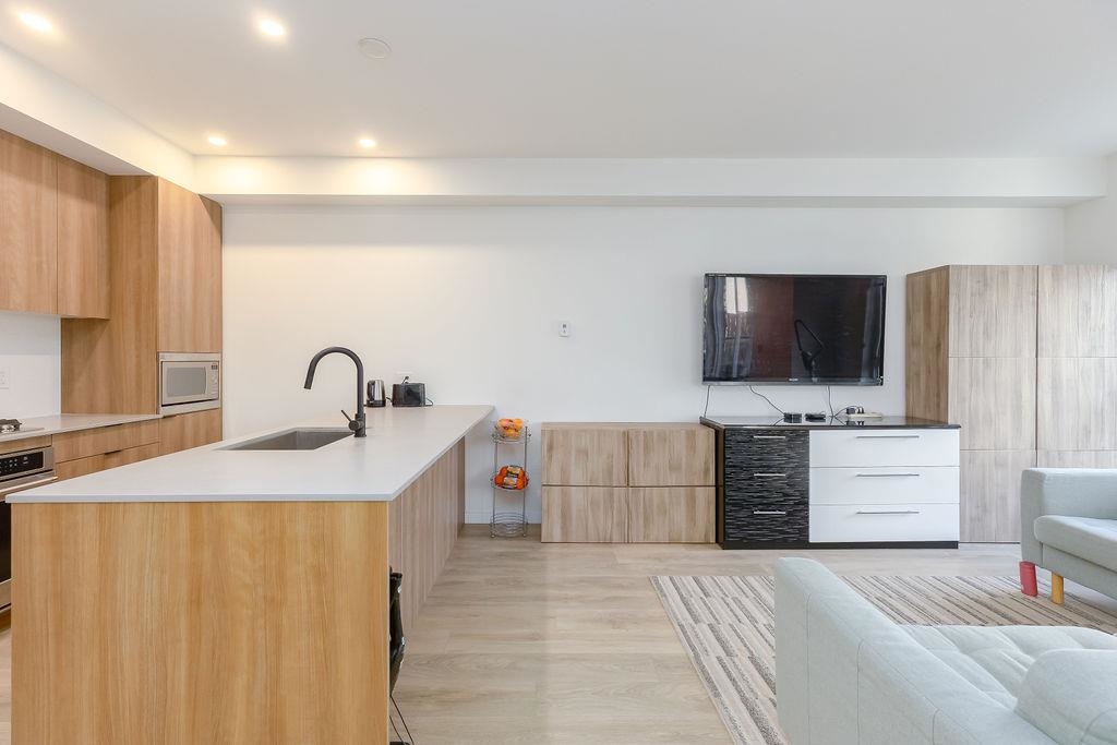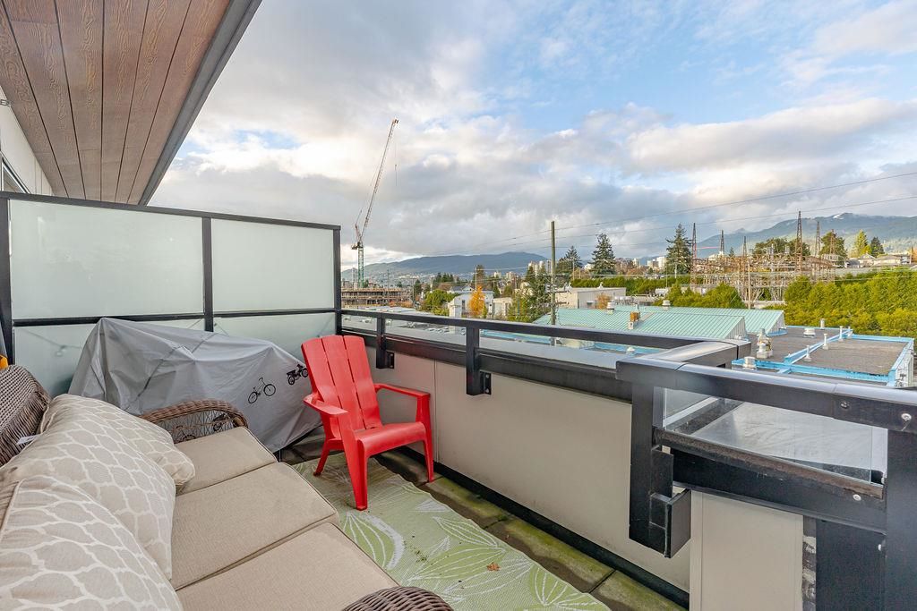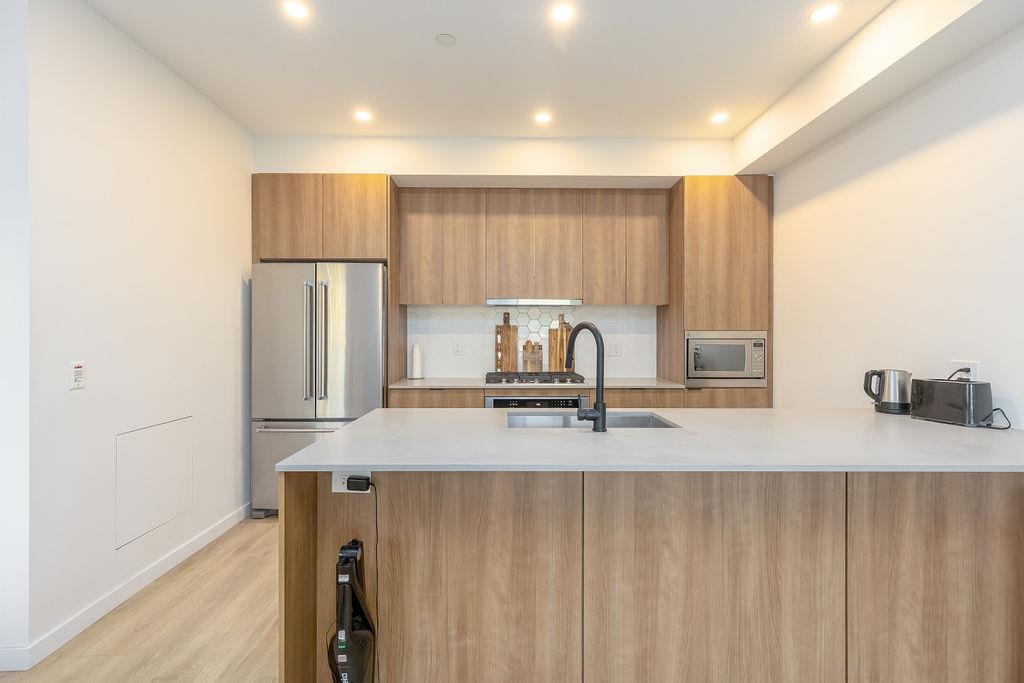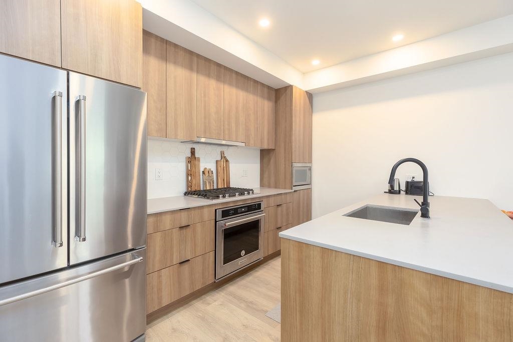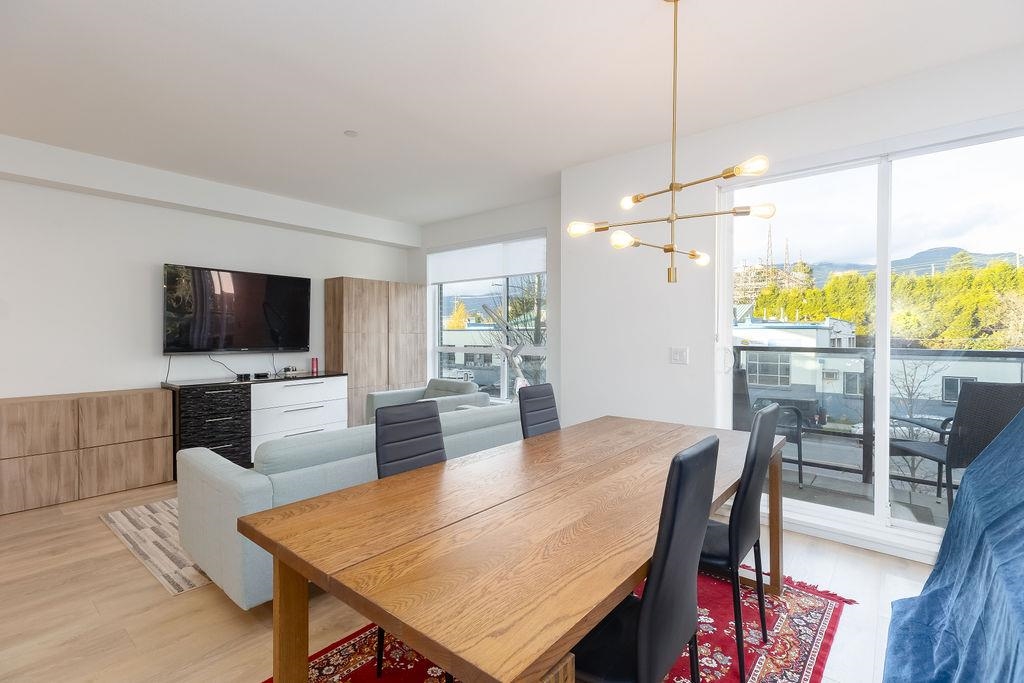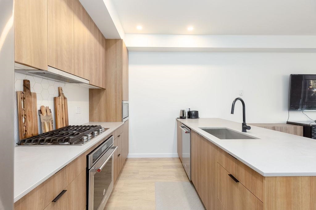 Welcome to this beautiful 4 bed & 3 bath home located at Founders Block North in Lower Lonsdale! With over 1765 sqft of living space, this spacious corner unit offers a comfortable & inviting atmosphere. Open floor plan w/ high ceilings creates a bright & airy living area, complemented by a stunning kitchen equipped w/ top-of-the-line stainless steel appliances, including a gas stove. Off the dining room is the large balcony, perfect for hosting! Admire the breathtaking mountain & water views from your master bedroom! This home also has a rental suite, providing an great opportunity for add'l income. Centrally located to the North Shore Breweries, Shipyards, Capilano Uni, groceries, restaurants, Ridgeway Elementary & Sutherland Secondary & more.