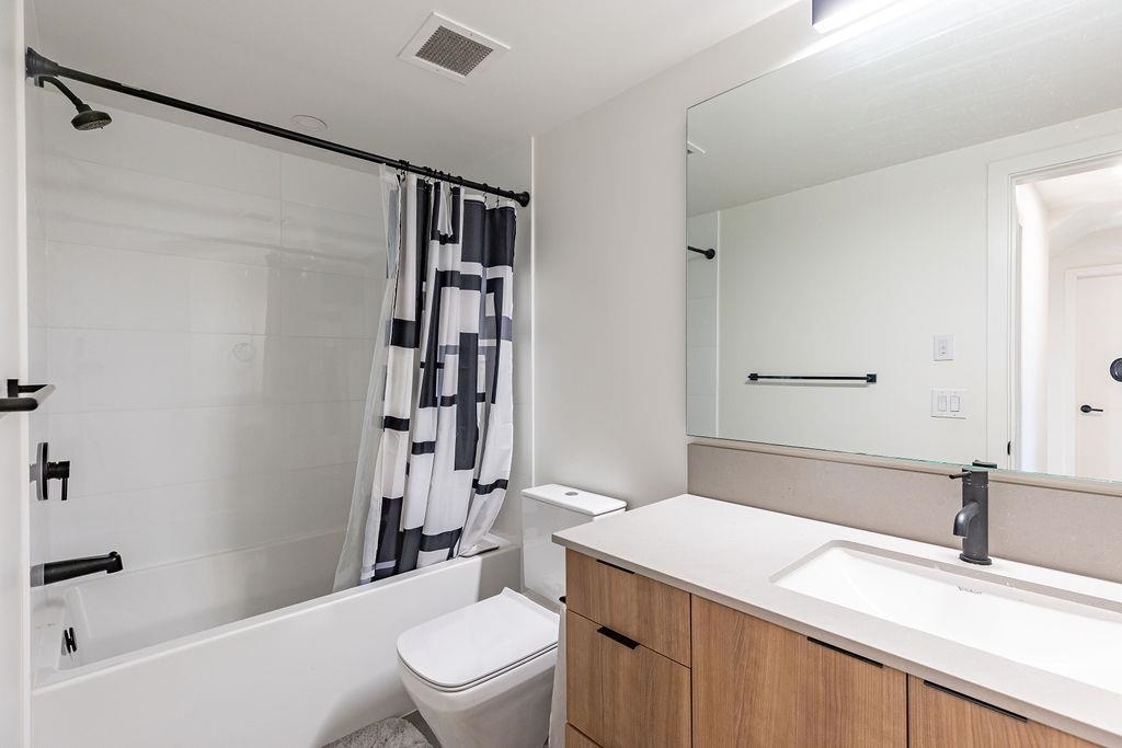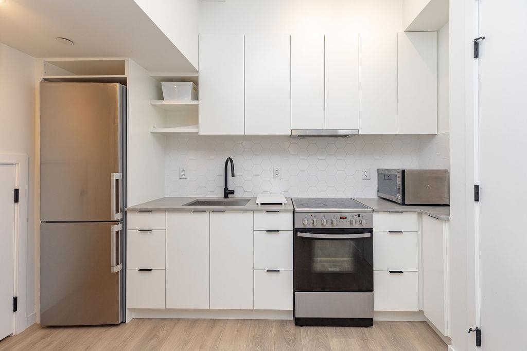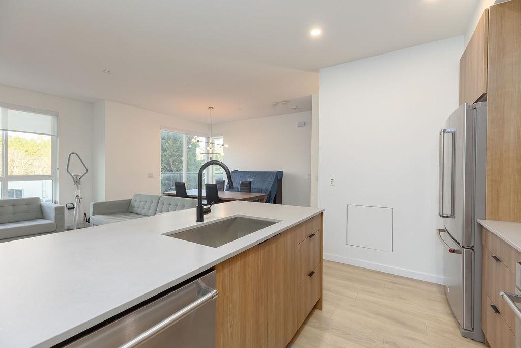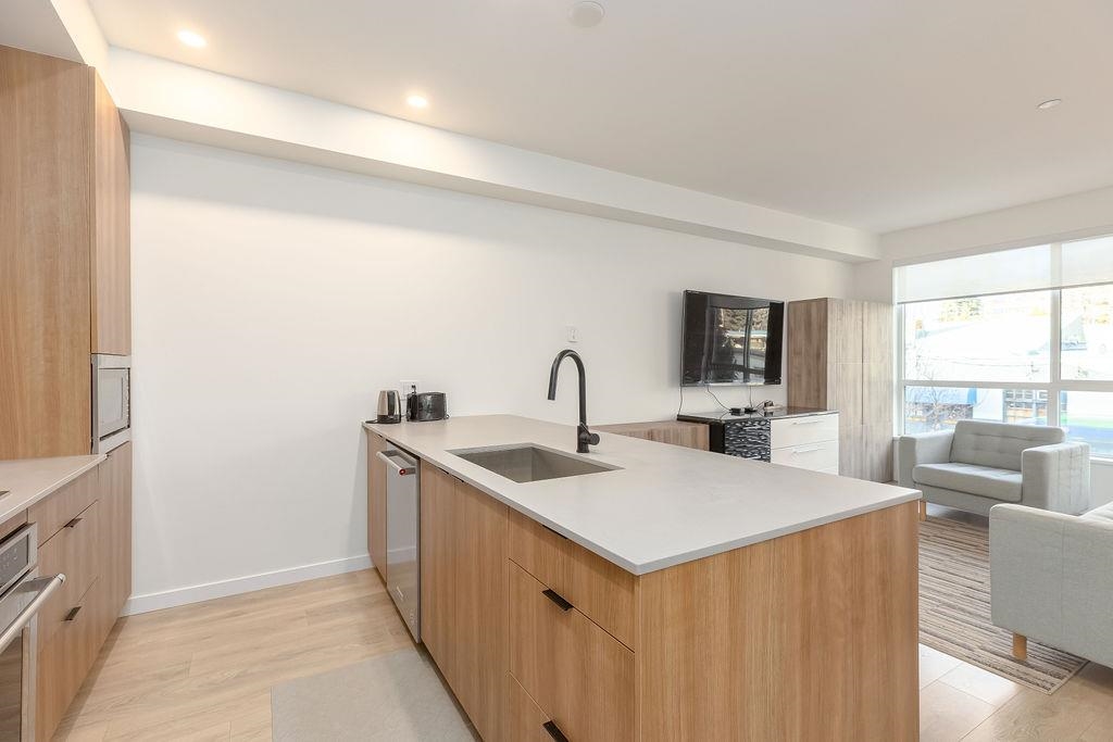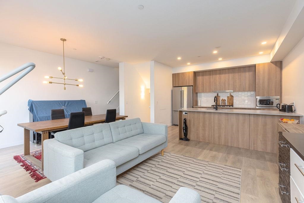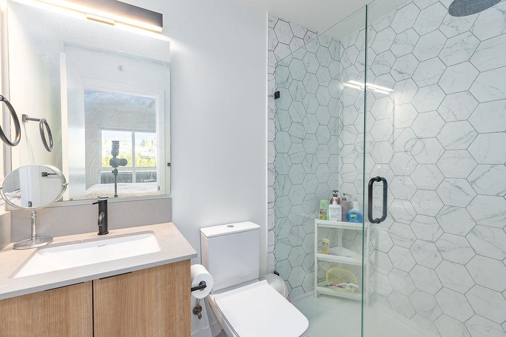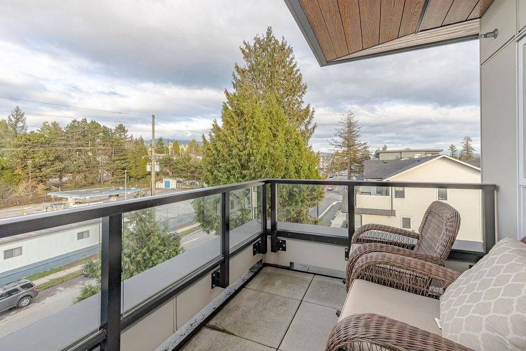 Welcome to this beautiful 4 bed & 3 bath home located at Founders Block North in Lower Lonsdale! With over 1765 sqft of living space, this spacious corner unit offers a comfortable & inviting atmosphere. Open floor plan w/ high ceilings creates a bright & airy living area, complemented by a stunning kitchen equipped w/ top-of-the-line stainless steel appliances, including a gas stove. Off the dining room is the large balcony, perfect for hosting! Admire the breathtaking mountain & water views from your master bedroom! This home also has a rental suite, providing an great opportunity for add'l income. Centrally located to the North Shore Breweries, Shipyards, Capilano Uni, groceries, restaurants, Ridgeway Elementary & Sutherland Secondary & more.