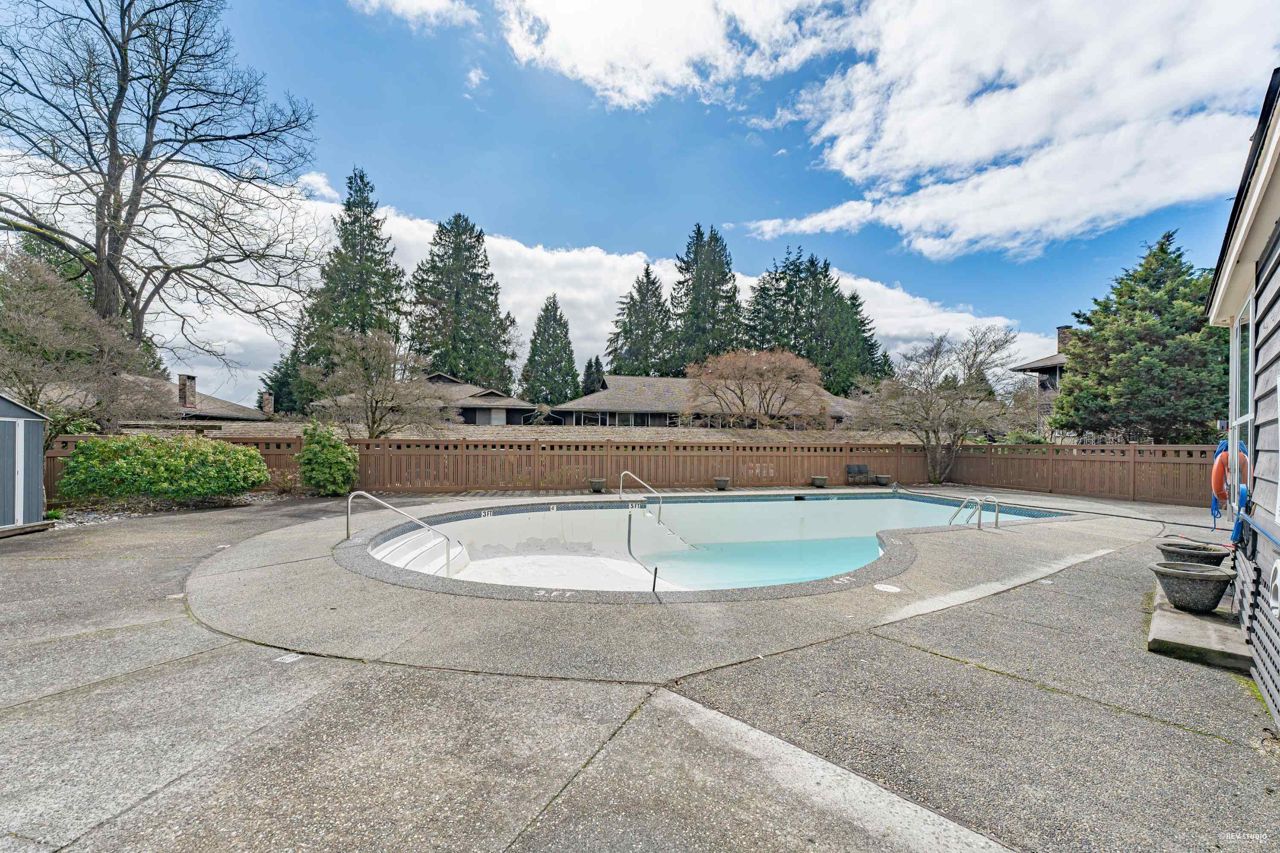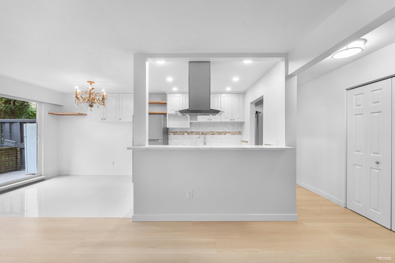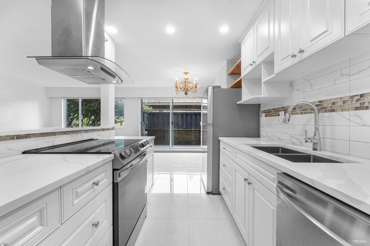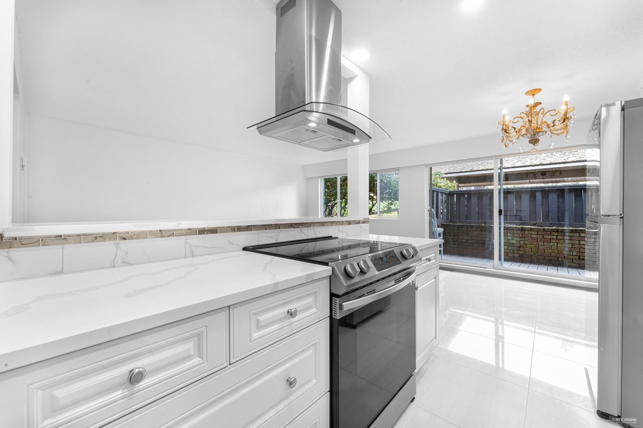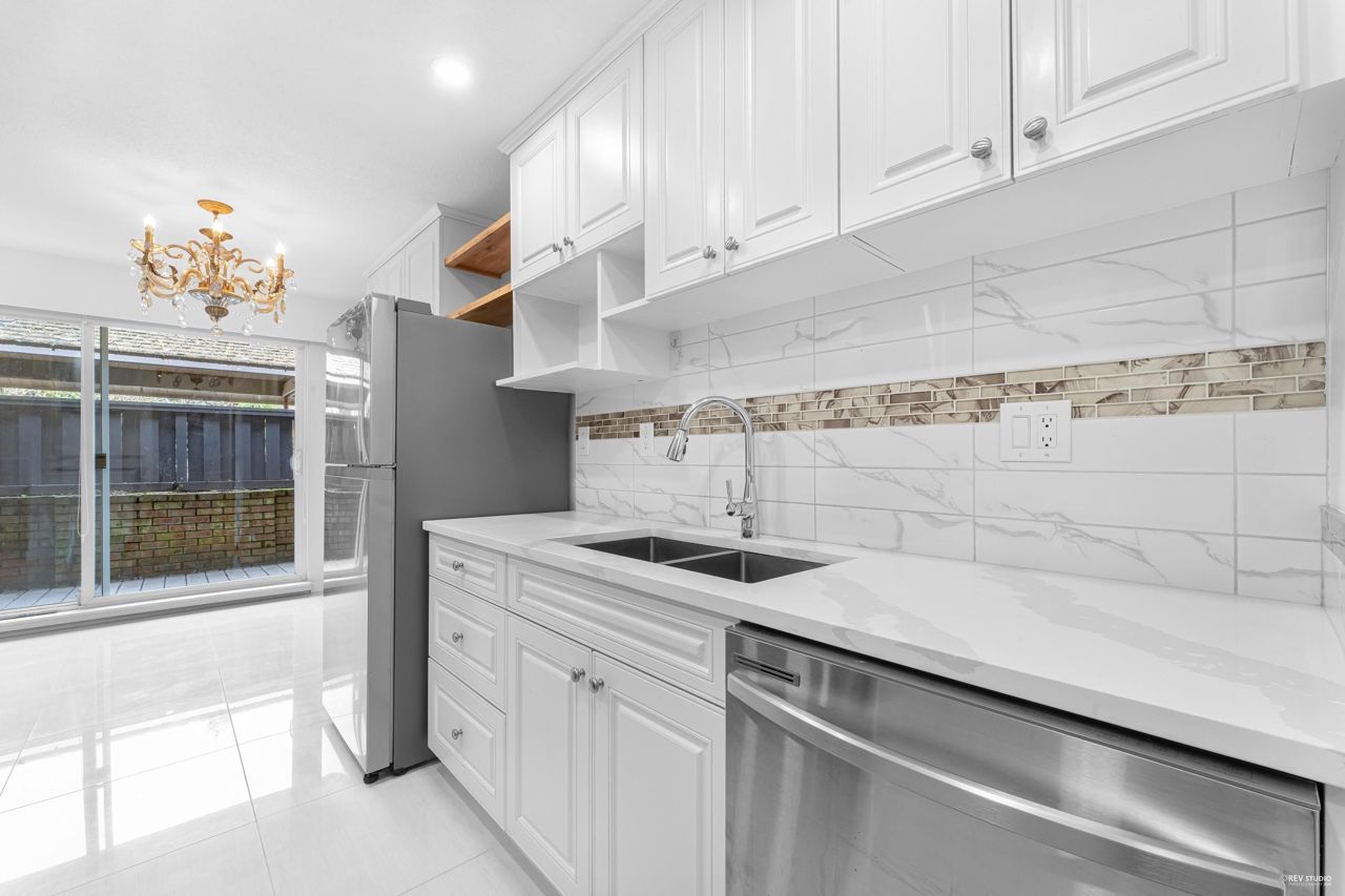 Welcome to the exclusive Cedarbrooke Village! This meticulously renovated ground level townhouse-style condo exudes elegance and comfort. Situated in a tranquil corner, the unit boasts a contemporary open concept floor plan, showcasing a chef's kitchen with updated stainless steel appliances, quartz countertops, and refined hardwood floors complemented by sleek cabinetry. Enjoy the spacious patio with garden space, enhanced by new fencing! Updated double pane windows offer both aesthetic appeal and practicality. One parking and storage locker included. Pet & family-friendly complex with outdoor swimming pool and clubhouse. HEAT included in strata fee! Steps from Larson Elementary, Westview Shopping Centre, Carson Secondary & Delbrook Community Centre.