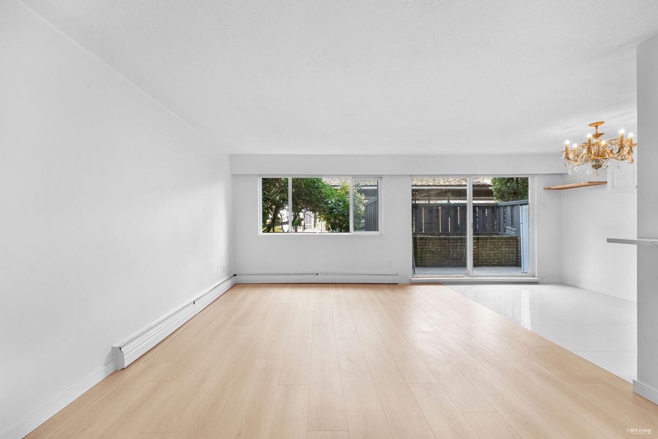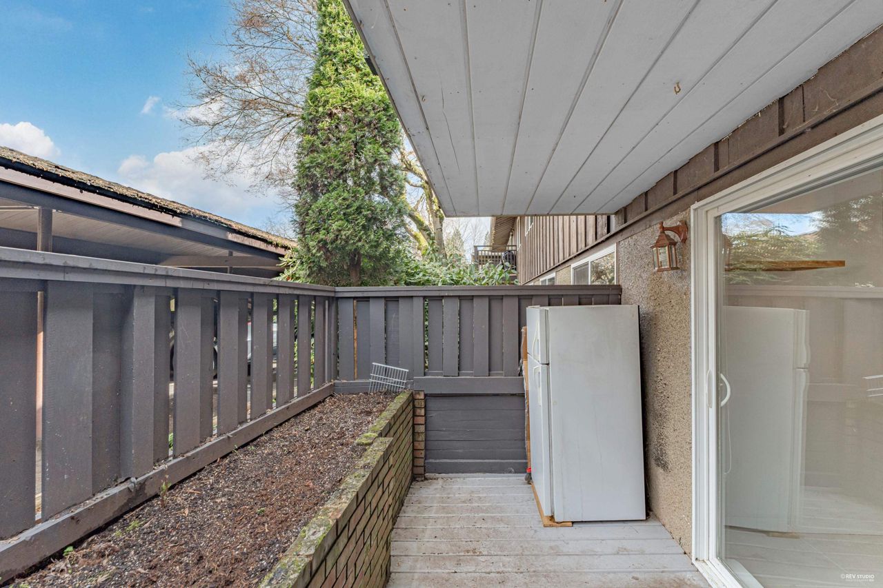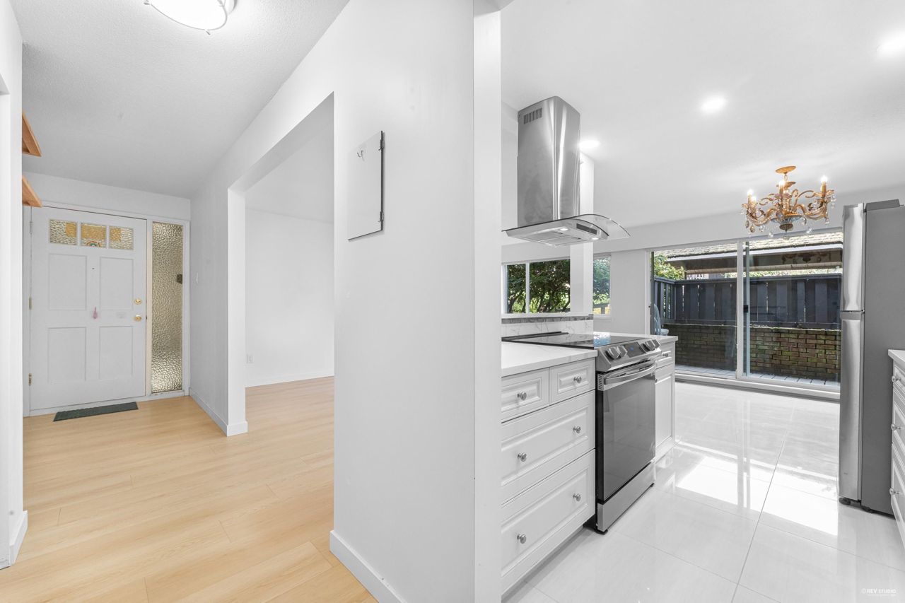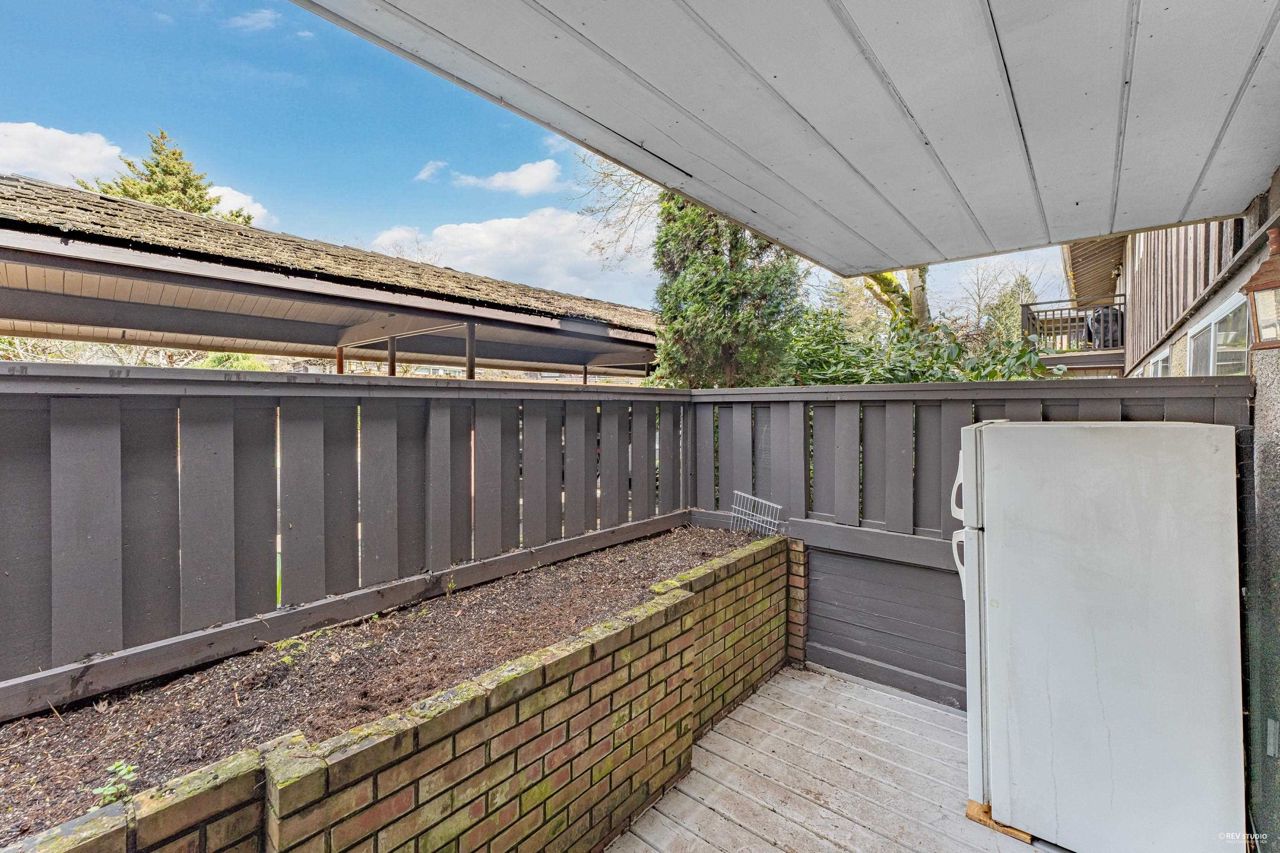 Welcome to the exclusive Cedarbrooke Village! This meticulously renovated ground level townhouse-style condo exudes elegance and comfort. Situated in a tranquil corner, the unit boasts a contemporary open concept floor plan, showcasing a chef's kitchen with updated stainless steel appliances, quartz countertops, and refined hardwood floors complemented by sleek cabinetry. Enjoy the spacious patio with garden space, enhanced by new fencing! Updated double pane windows offer both aesthetic appeal and practicality. One parking and storage locker included. Pet & family-friendly complex with outdoor swimming pool and clubhouse. HEAT included in strata fee! Steps from Larson Elementary, Westview Shopping Centre, Carson Secondary & Delbrook Community Centre.