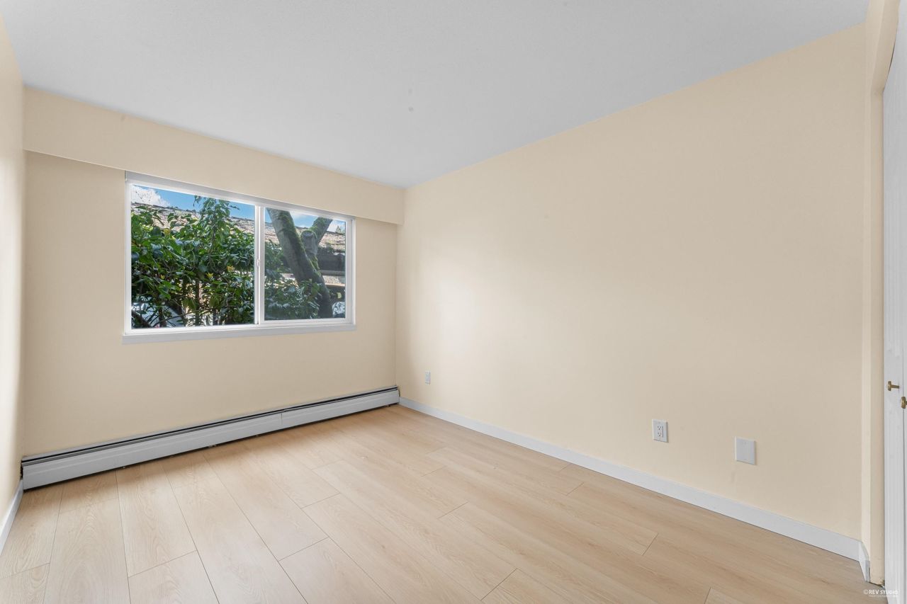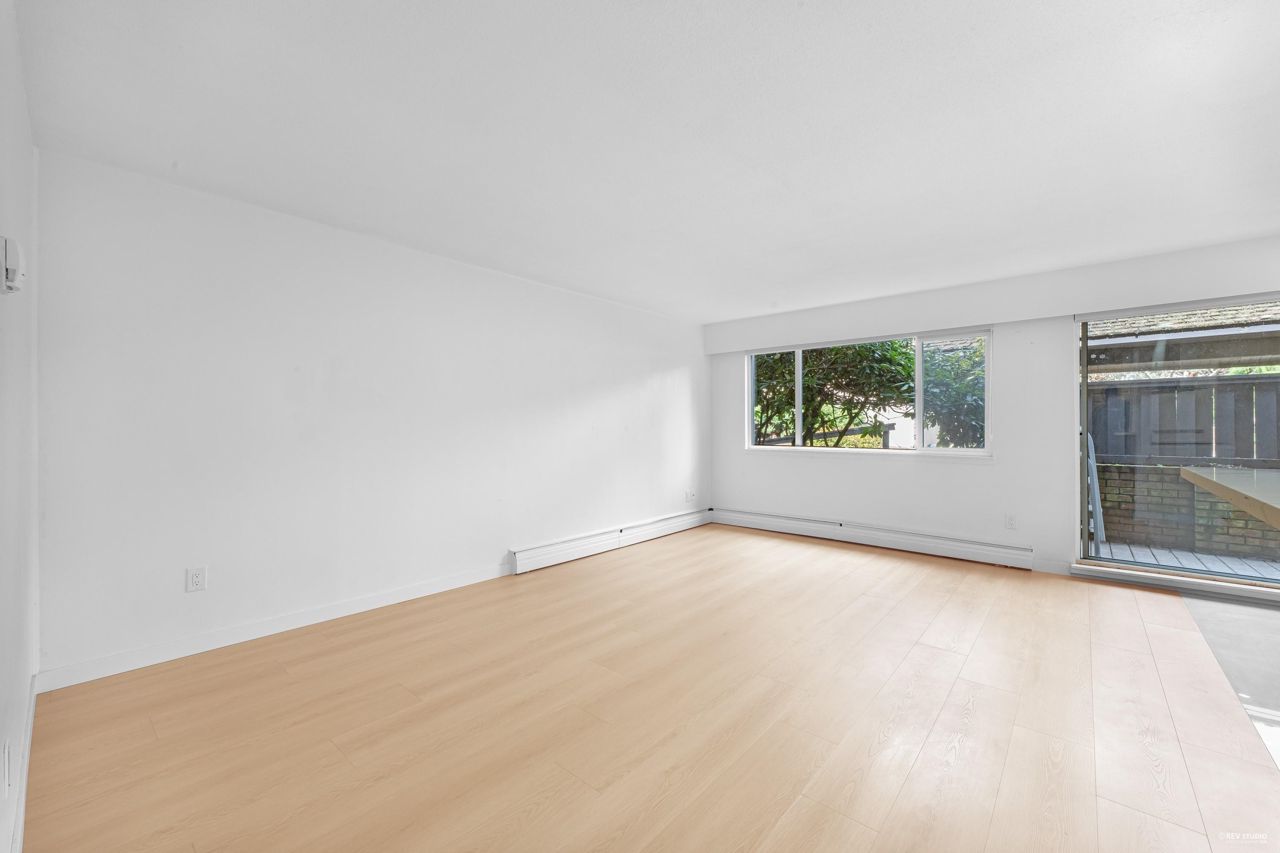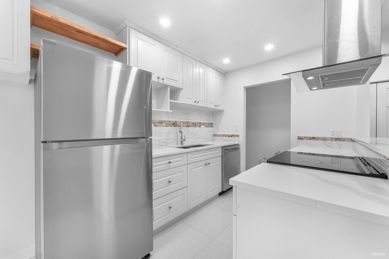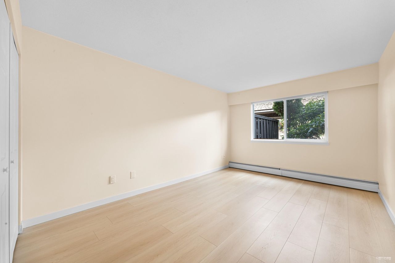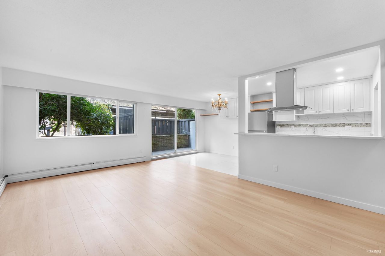 Welcome to the exclusive Cedarbrooke Village! This meticulously renovated ground level townhouse-style condo exudes elegance and comfort. Situated in a tranquil corner, the unit boasts a contemporary open concept floor plan, showcasing a chef's kitchen with updated stainless steel appliances, quartz countertops, and refined hardwood floors complemented by sleek cabinetry. Enjoy the spacious patio with garden space, enhanced by new fencing! Updated double pane windows offer both aesthetic appeal and practicality. One parking and storage locker included. Pet & family-friendly complex with outdoor swimming pool and clubhouse. HEAT included in strata fee! Steps from Larson Elementary, Westview Shopping Centre, Carson Secondary & Delbrook Community Centre.