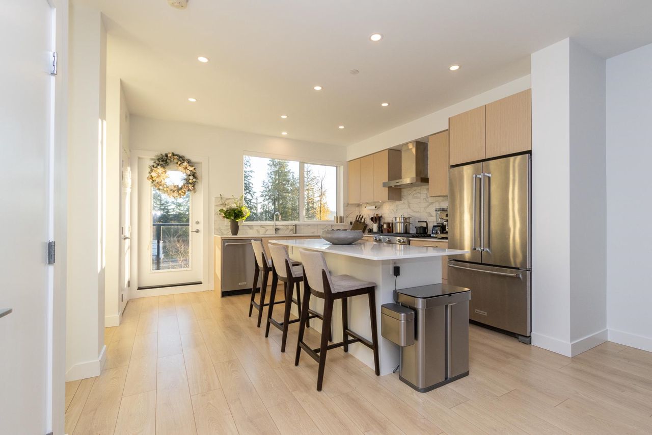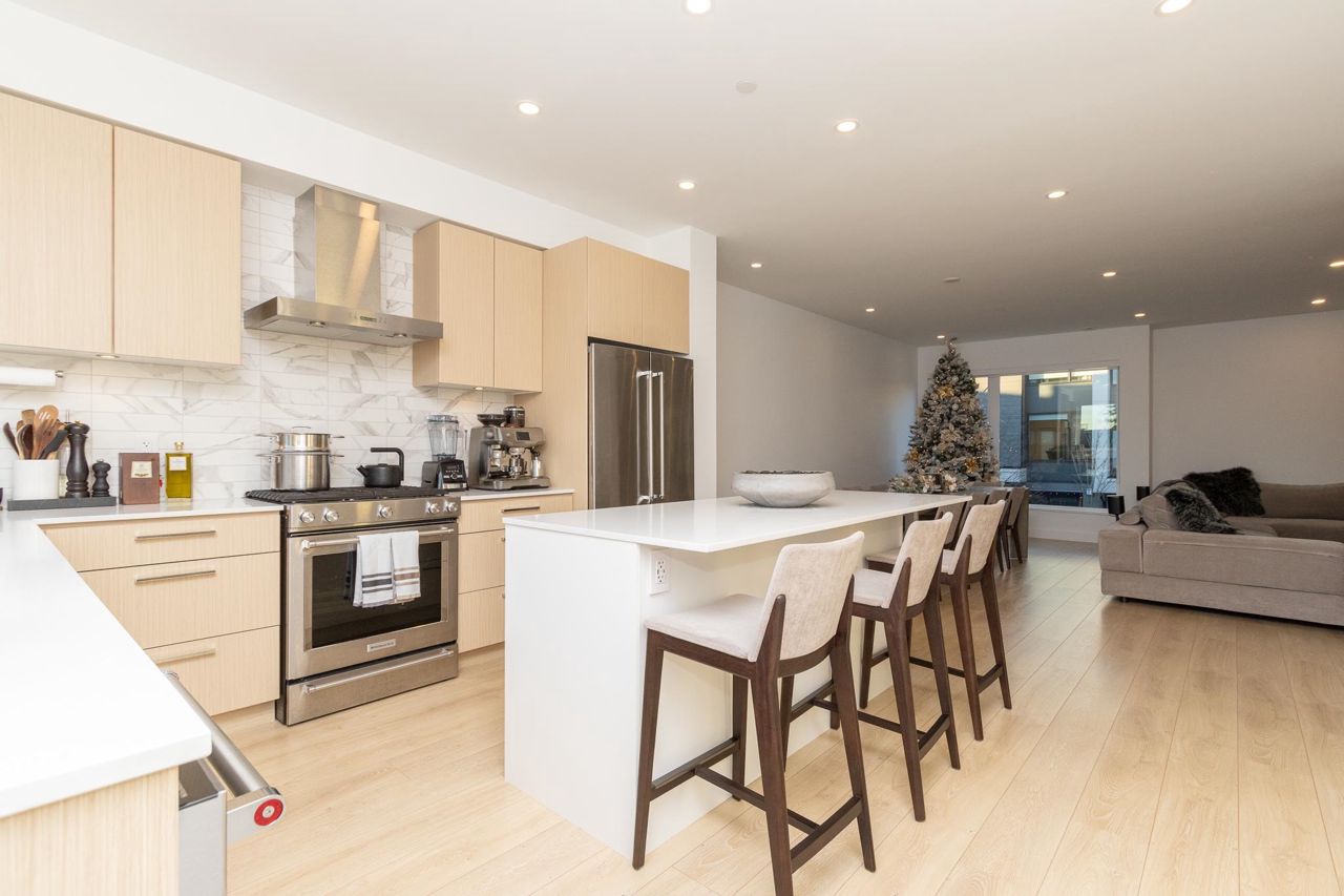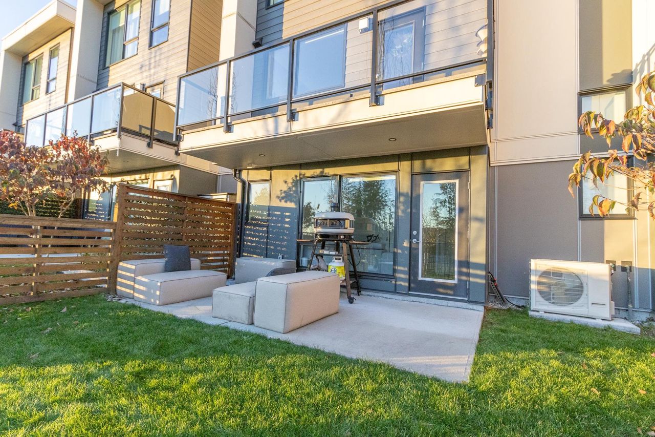 SEYMOUR VILLAGE ON THE PARK! This is the first unit on the street to come up for sale. Bring your kids & your mother-in-law - lots of room for the whole family! Expansive & bright 3 level, 5 bedroom townhome backing onto greenspace with a private patio and grass to enjoy the sunsets & watch the kids play at the park. Open concept living space w/an amazing kitchen where everything is new! Large pantry, gas range + a huge island, leading to the deck for bbqing and entertaining. 4 bedrooms up with the primary boasting a huge ensuite & walk-in closet. Downstairs is the 5th bedroom/recreation room with it's own bathroom. Lots of parking with a huge garage complete with built in storage + extra parking on the driveway. you can't beat the community & it is a short walk to the shops & the beach.