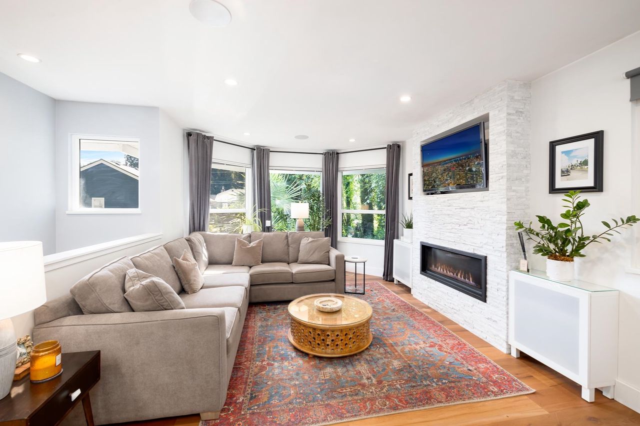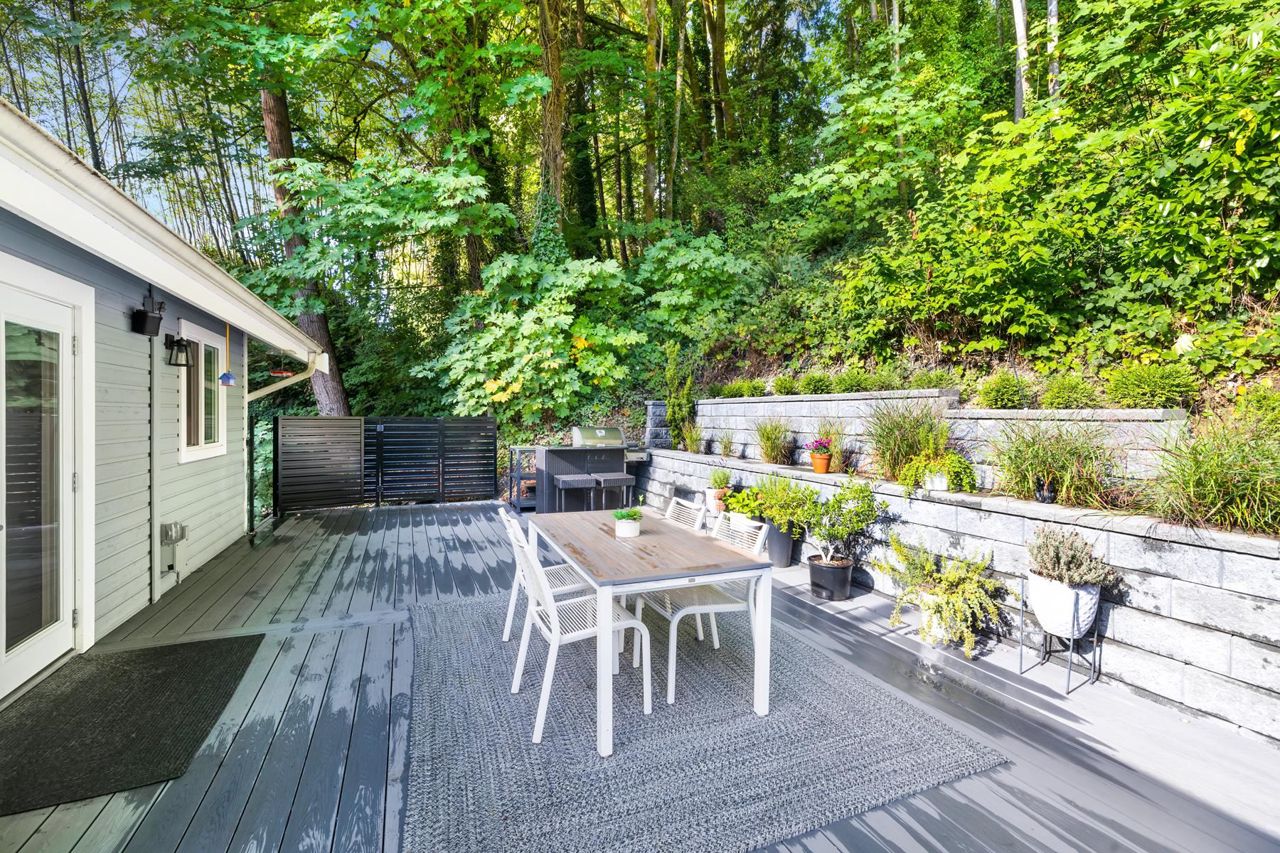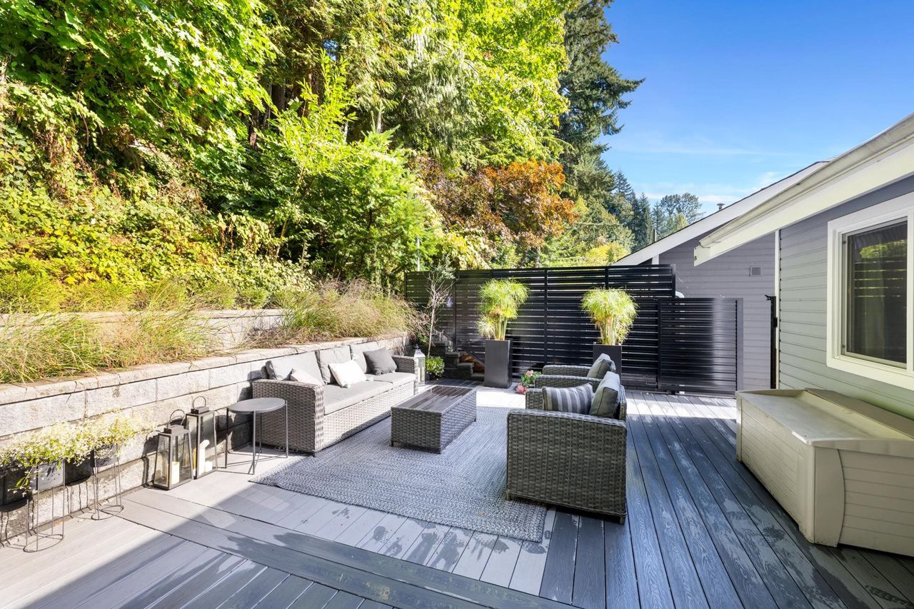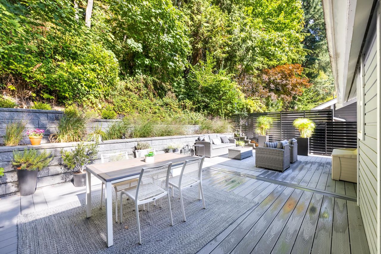 This unique 2500 sqft, 5 bedroom home on an oversized greenbelt lot is perfect for families seeking a private & quiet location. Nestled on a coveted cul-de-sac, this renovated property boasts a functional floor plan with an open concept living & dining room. The spacious kitchen leads to a large entertainment deck, allowing for seamless indoor & outdoor living. On the upper level, you'll find 3 bedrooms, including a primary bedroom with a beautiful en-suite & walk-in closet. The lower level offers even more space for the family or alternatively if you need a mortgage helper, it offers a bright above ground 2 bedroom suite. With easy access to the best North Shore trails, shopping, & top-rated schools, this home is a must-see for families looking for a convenient & peaceful lifestyle.