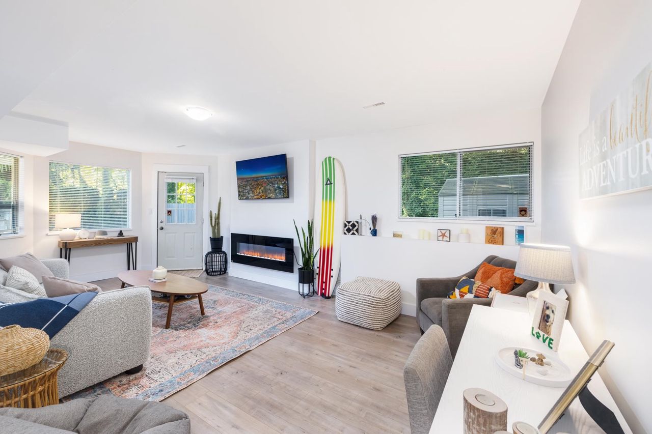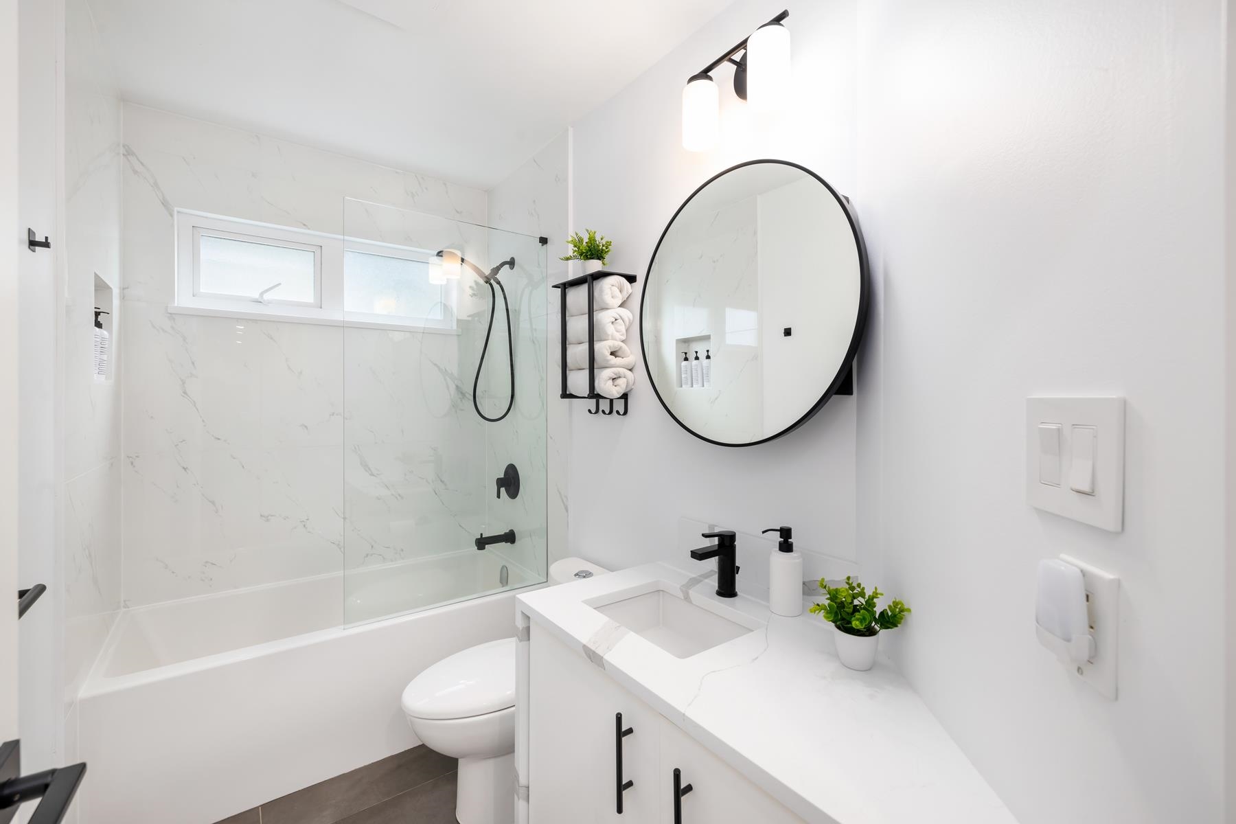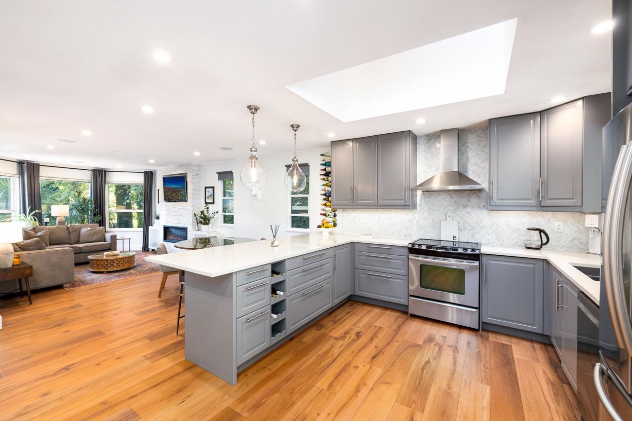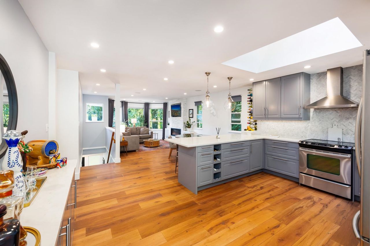 This unique 2500 sqft, 5 bedroom home on an oversized greenbelt lot is perfect for families seeking a private & quiet location. Nestled on a coveted cul-de-sac, this renovated property boasts a functional floor plan with an open concept living & dining room. The spacious kitchen leads to a large entertainment deck, allowing for seamless indoor & outdoor living. On the upper level, you'll find 3 bedrooms, including a primary bedroom with a beautiful en-suite & walk-in closet. The lower level offers even more space for the family or alternatively if you need a mortgage helper, it offers a bright above ground 2 bedroom suite. With easy access to the best North Shore trails, shopping, & top-rated schools, this home is a must-see for families looking for a convenient & peaceful lifestyle.