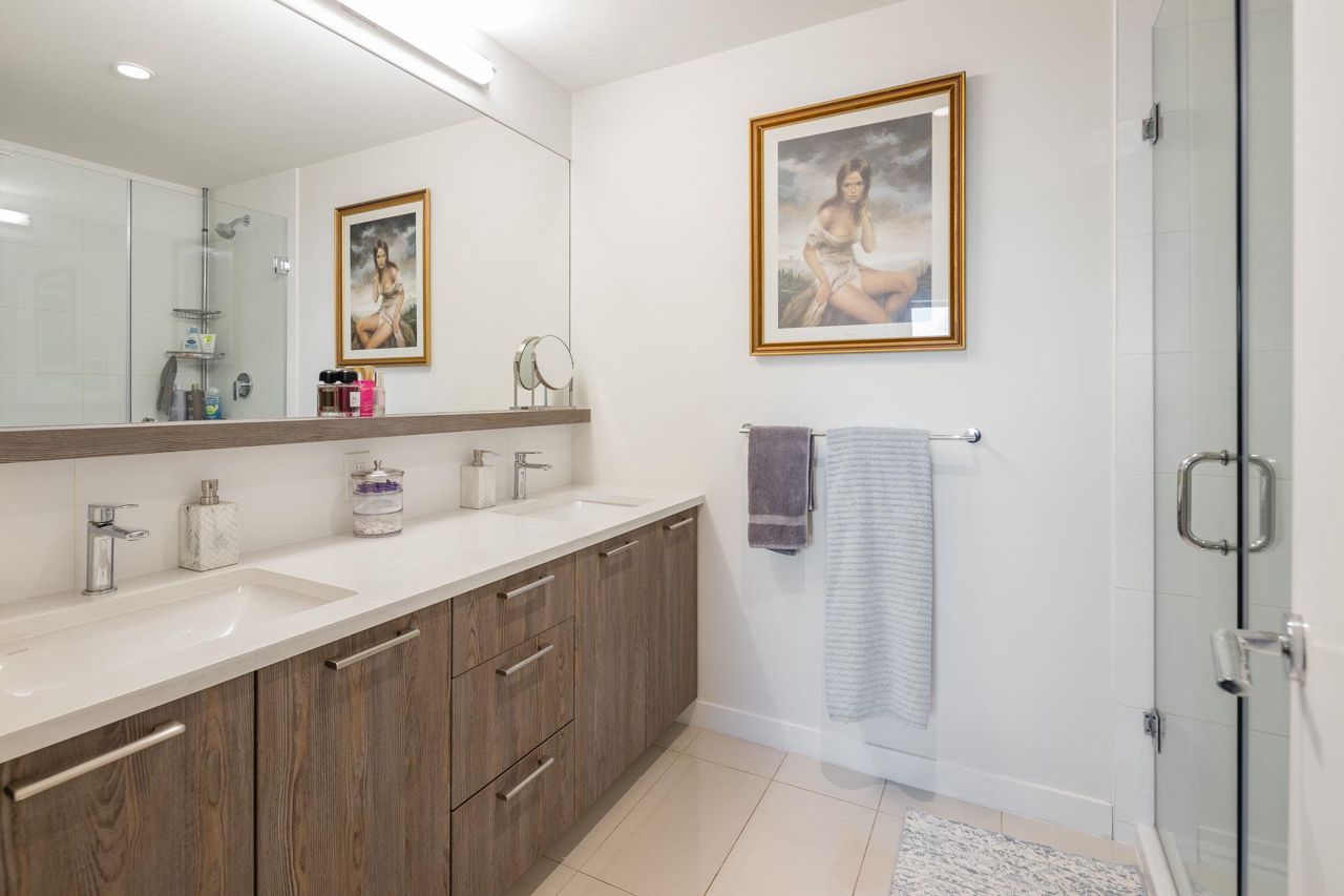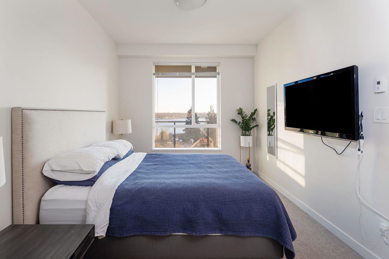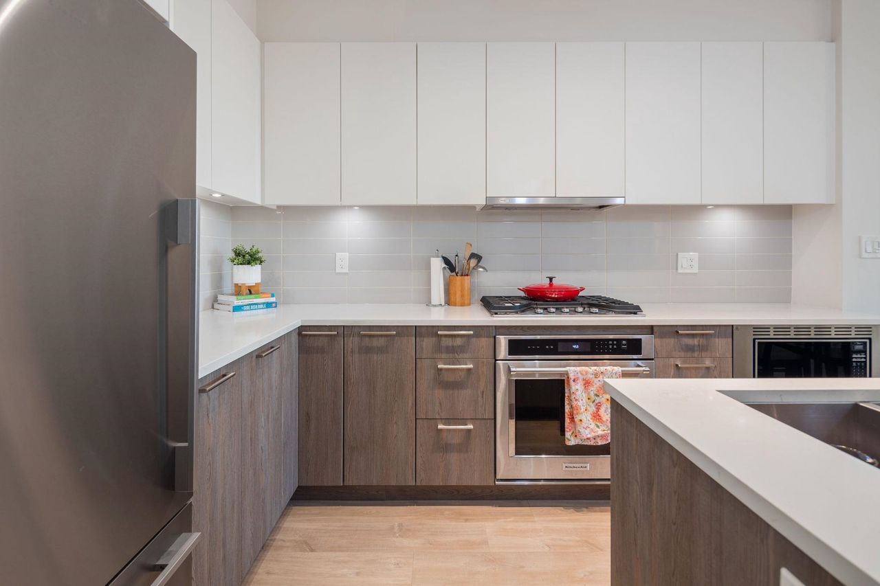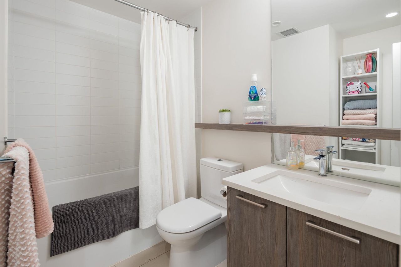 Welcome to Kindred, built by Fairborne & located in the new Moodyville neighbourhood, with 5 & 10 year warranty still in place. This 2 bedroom / 2 bathroom unit is on the South Side of the building for maximum natural light. In addition the patio is covered for year round use, & the kitchen has a gas cooktop with seating at the island, complimented by an oversized sink with a well laid out den space. The large master ensuite boasts a double sink, & large stand up shower. Amenity spaces include a party room & outdoor BBQ area. Pet friendly building, with rentals allowed over 30 days. Close to Lonsdale Quay & right on a transit loop, right next to Moodyville Park & the Spirit Trail with a short stroll to the Brewery District, come view this home before it's gone.