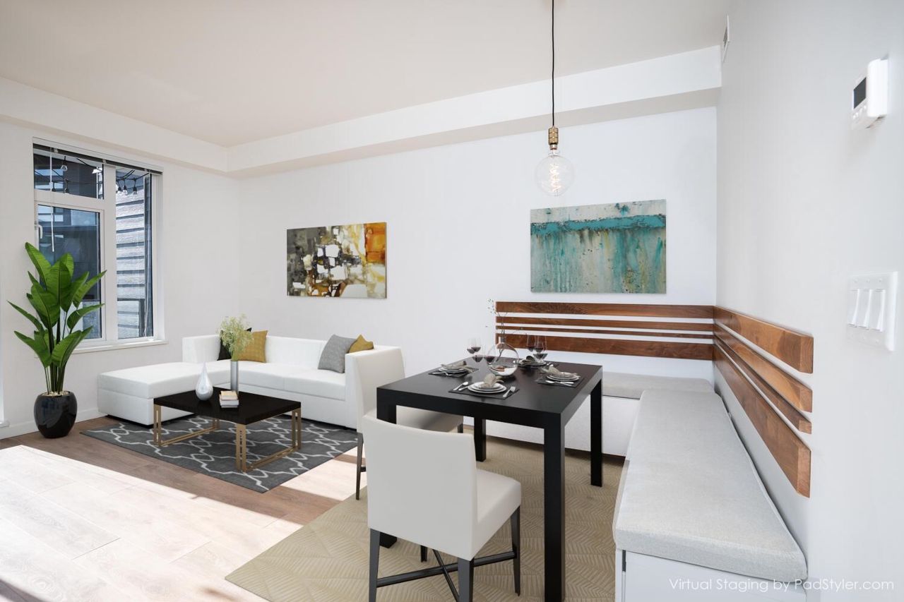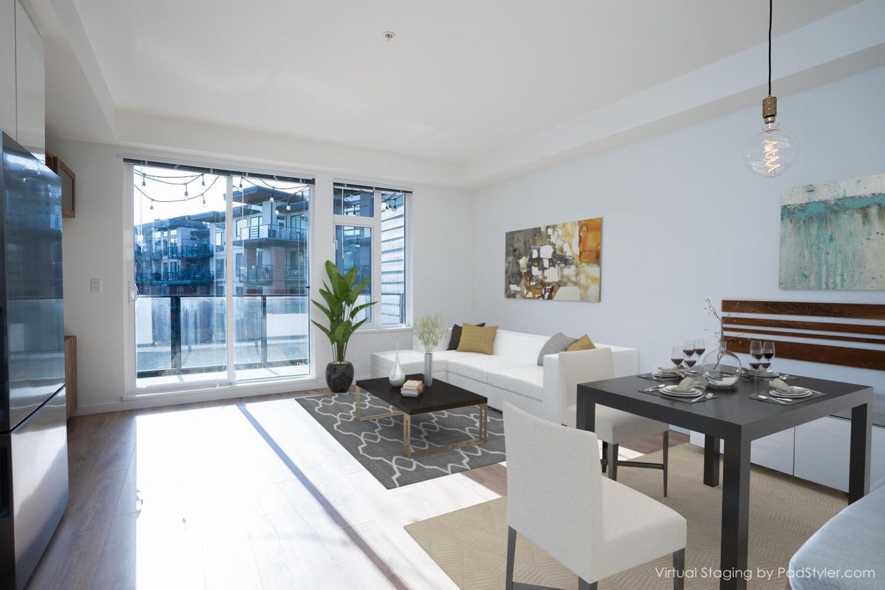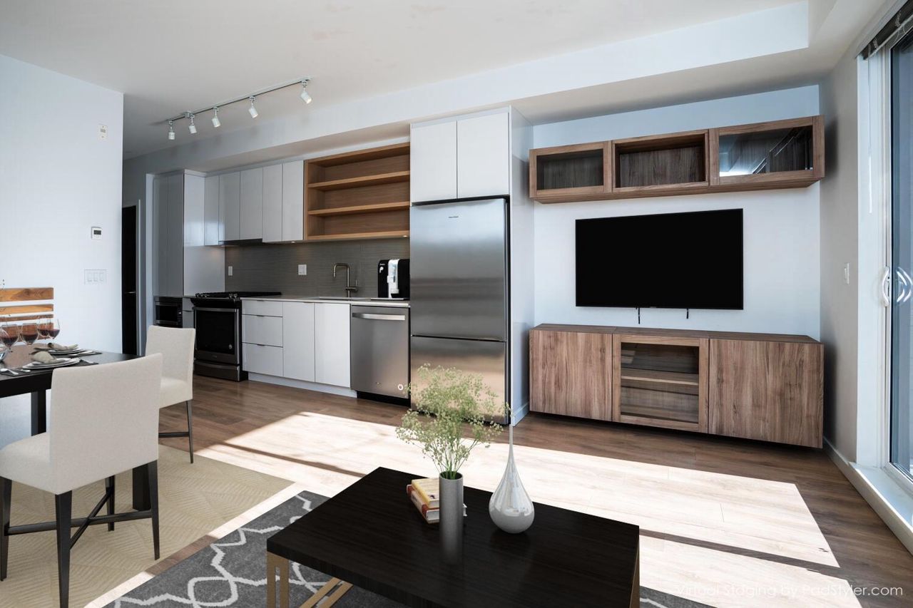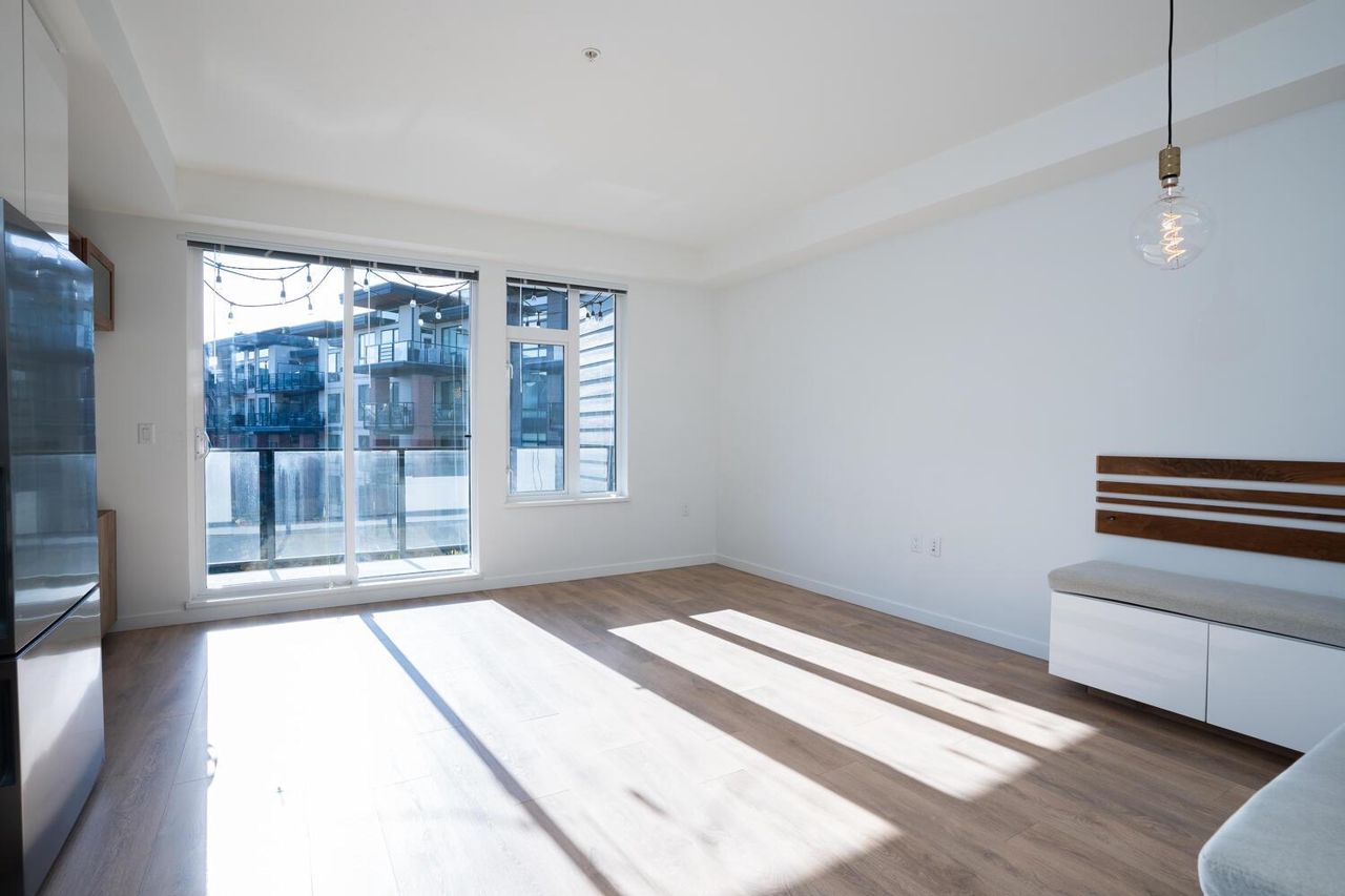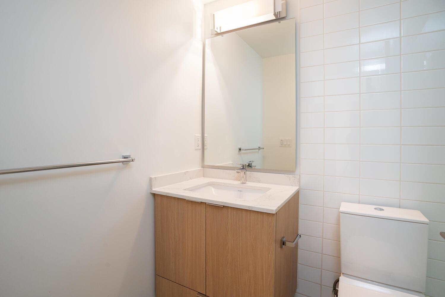 Welcome to the highly desirable Marine + Fell building by Anthem Properties. This 1 bdrm home is located on the quiet, sunny South side of the building facing the courtyard. Featuring radiant in floor heating, quartz counter tops, stainless steel appliances and a gas range for the chef. Huge bright sundeck to enjoy the afternoon sun and 9 ft ceilings make this space seem extra spacious. 2 Pets and rentals allowed, building also has EV charges and a bike room. come see your new home today!