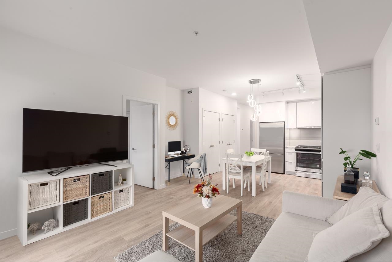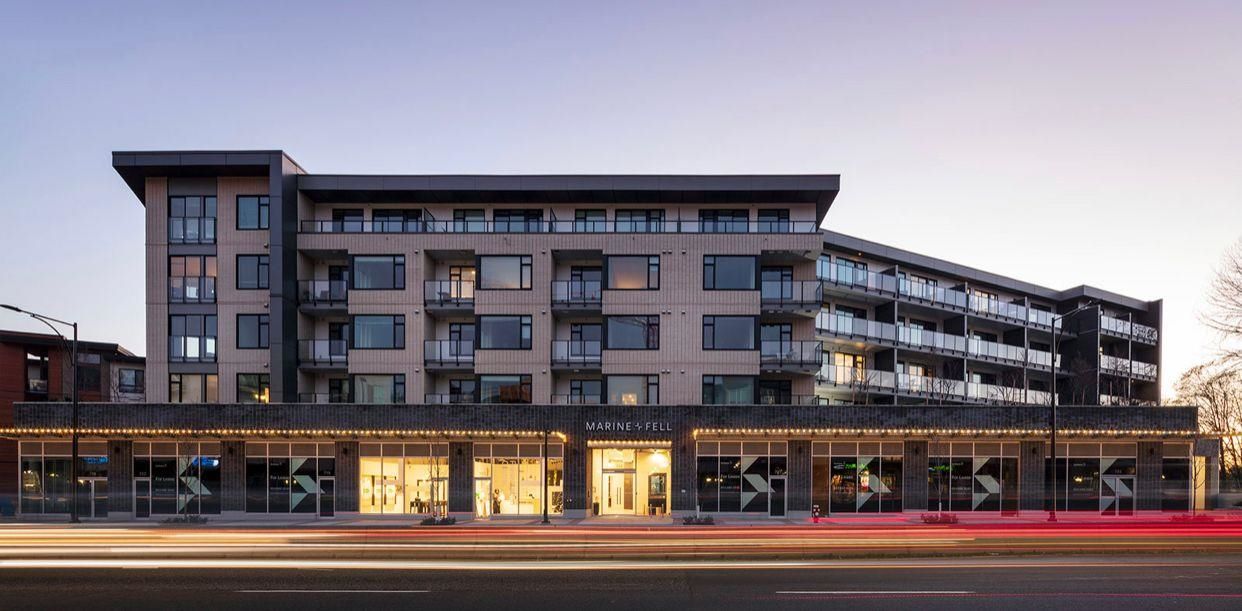 Enjoy upscale living with a scenic mountain backdrop at Marine + Fell by Anthem. This bright 2-bedroom + den unit is great value for newer construction on the North Shore. Features include sleek stainless steel appliances, a gas cooking range, German fixtures by Grohe and radiant in-floor heating. The 9-foot ceilings, modern flat-panel cabinetry, and quartz countertops add modernity to the space. The building offers a range of amenities, including an entertainment lounge, kitchenette, outdoor patio, a dedicated bike room and EV chargers. Situated along the Marine Drive corridor, it's a brief stroll to various shopping outlets, eateries, cafes, parks, trails, and the RapidBus. 1 parking spot and 1 storage locker. + pets/rentals welcome. Book your private showing today!
