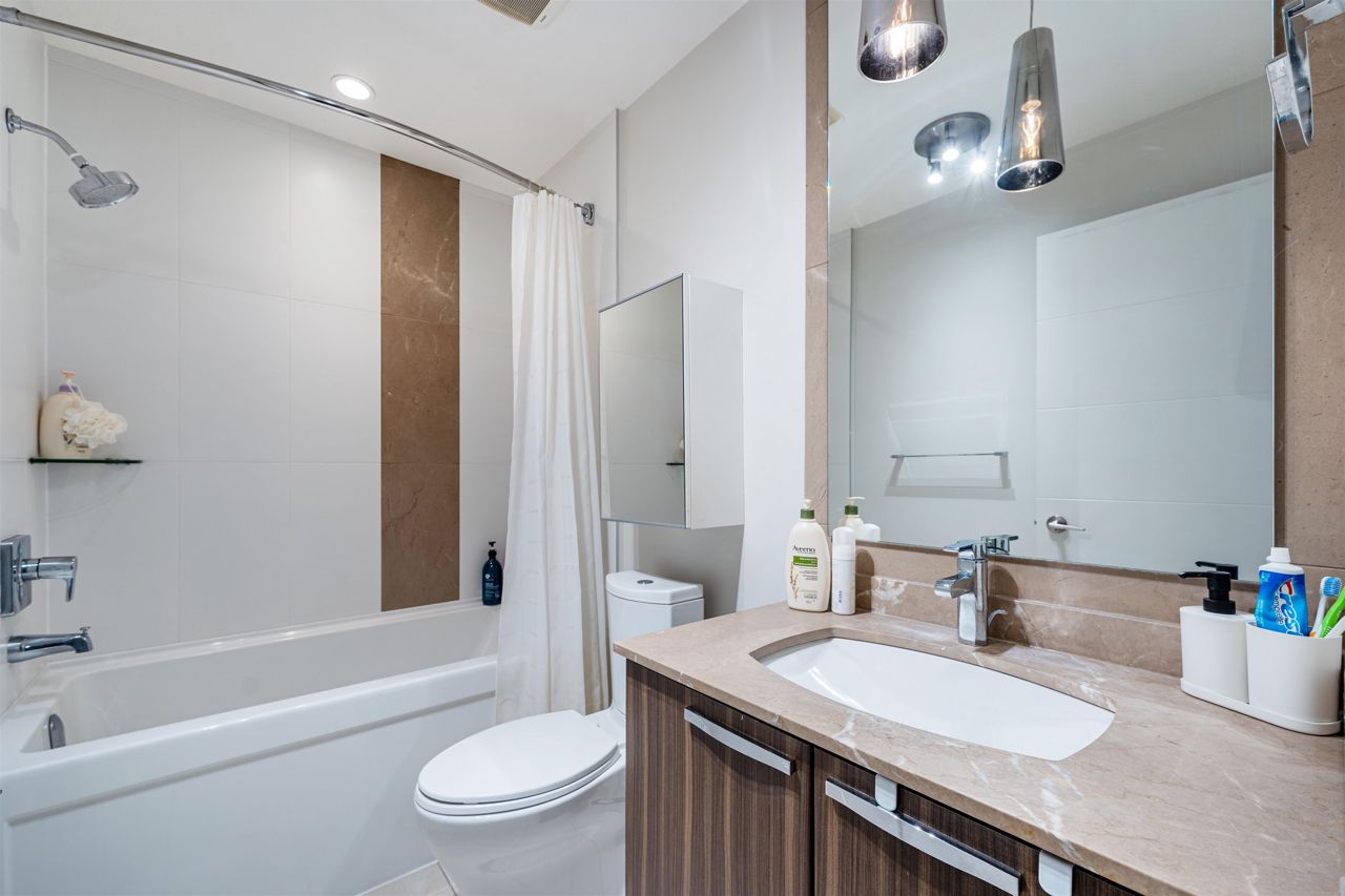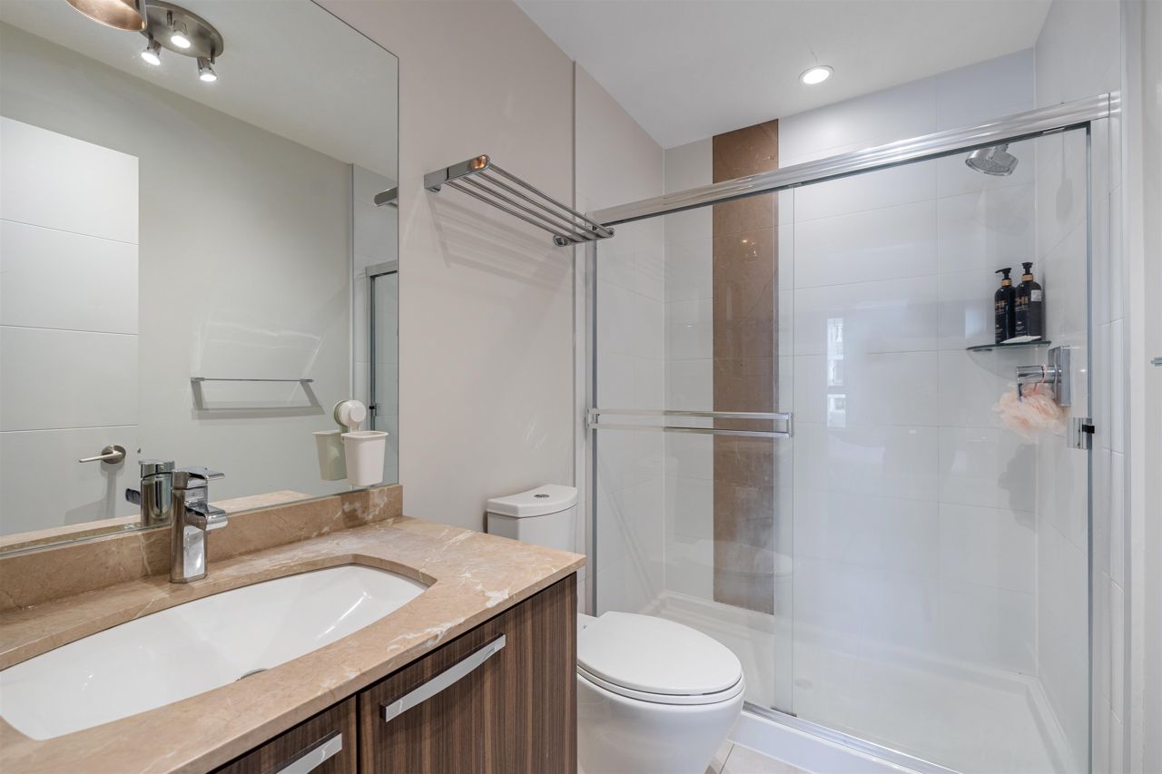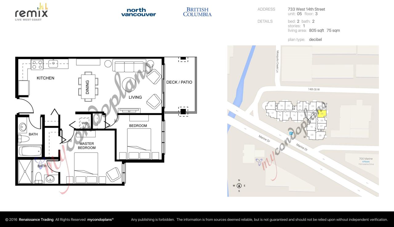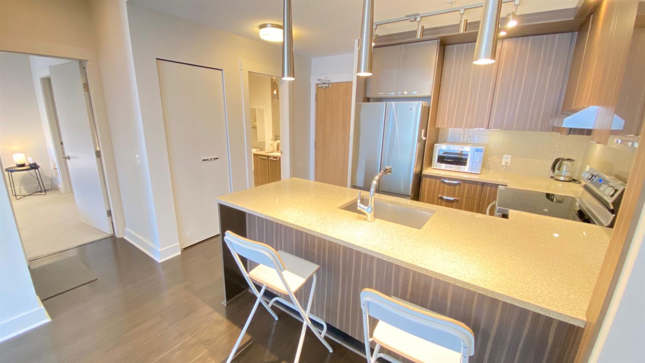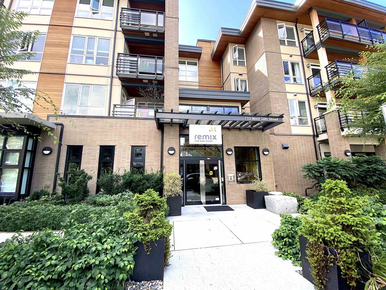 Remix - a boutique building by Adera. Sunny 2 bed 2 bath 805 sqft on the quiet side of the building facing East. Built in 2014 with 2-5-10 warranty still in effect. Open kitchen with upgraded appliances - high end Samsung range & oven, LG french door fridge, BOSCH ultra quiet dishwasher. 9 Foot Ceilings, laminate flooring, built-in cabinets In floor radiant heating is included in the strata fee & controlled by NEST wireless smart thermostat. Big patio to fit your BBQ. Spacious and well equipped exercise room on the main floor. Bus stops right at the block. Steps away from Capilano Mall, Walmart, banks, & restaurants. Quick access to Hwy #1. 1 parking and 1 locker. 2 dogs or 2 cats are allowed. No short term rentals.
