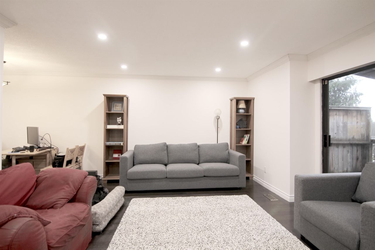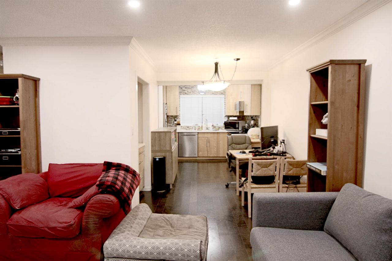 Practical and spacious 5-bdrm townhouse, 3 bdrm upstairs+2 legal bdrm in bsmt, suitable for guest room, office, gym, or playroom, popular family-friendly "Lynnmour Village”. Updated flooring and paint, renovated kitchen w/ stainless appliances, & formal eating area off kitchen. Wood-burning fireplace in huge living room area fronting onto a 21 x 10 covered sundeck w/ West-facing private exposure perfect for entertaining. 1 full bath above plus 1 powder on the main. Full laundry and lots of storage in bsmt. 1 parking included, plus 1 permit available for 2nd car. quiet neighbourhood, close to HYWY 1, bus stop, Superstore, Capilano University and trails.