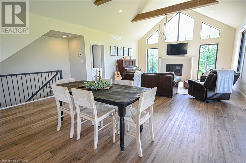 Are you looking for a executive home on 53 acres with 5 acres of tillable acreage, bush, pond, and a creek winding its way through and absolute privacy? This is certainly it. Located with southren exposure, this stunning home built by Everest Estate Homes is nestled far back from the road with a winding driveway and overlooking your own forests and pond. Beyond the incredible setting, the home boasts high ceilings with timber work, oversized garage, modern farm house colors and finishes, main floor primary bedroom with large ensuite, and lots of windows and large patio door to show case the incredible views all around the main living area. Upstairs is two more bedrooms, bathroom and playroom. With the walk out basement which is ready to drywall with a large rec room, bedroom, and bathroom, there is lots of sq.ft to expand. This truly is once in a lifetime home and farm to own and have your own quiet getaway. (id:22211)