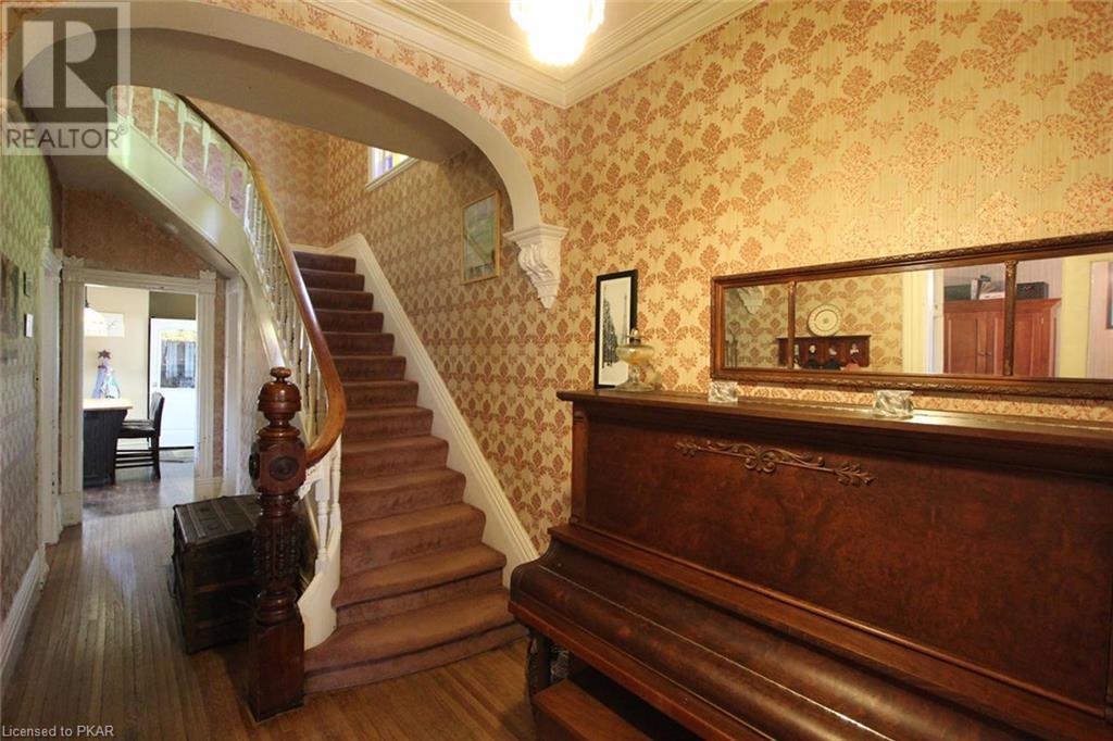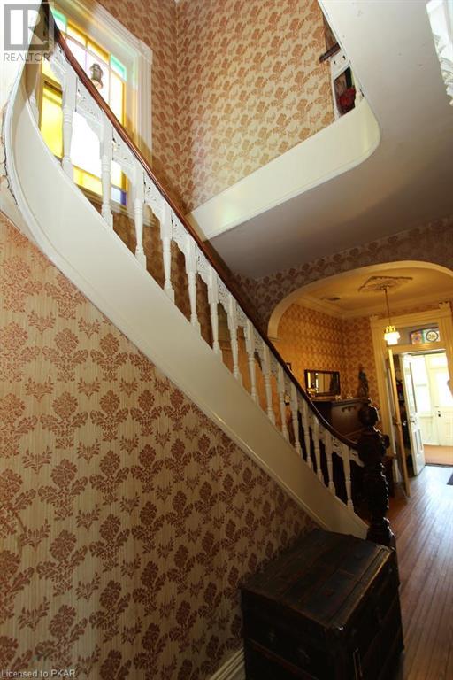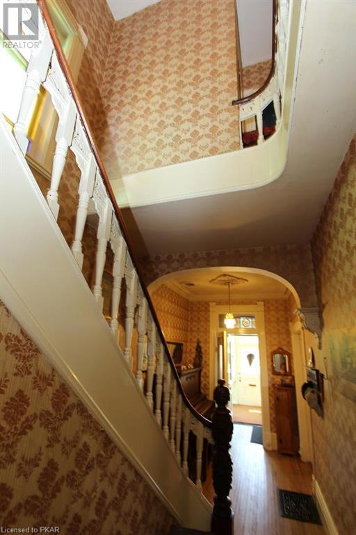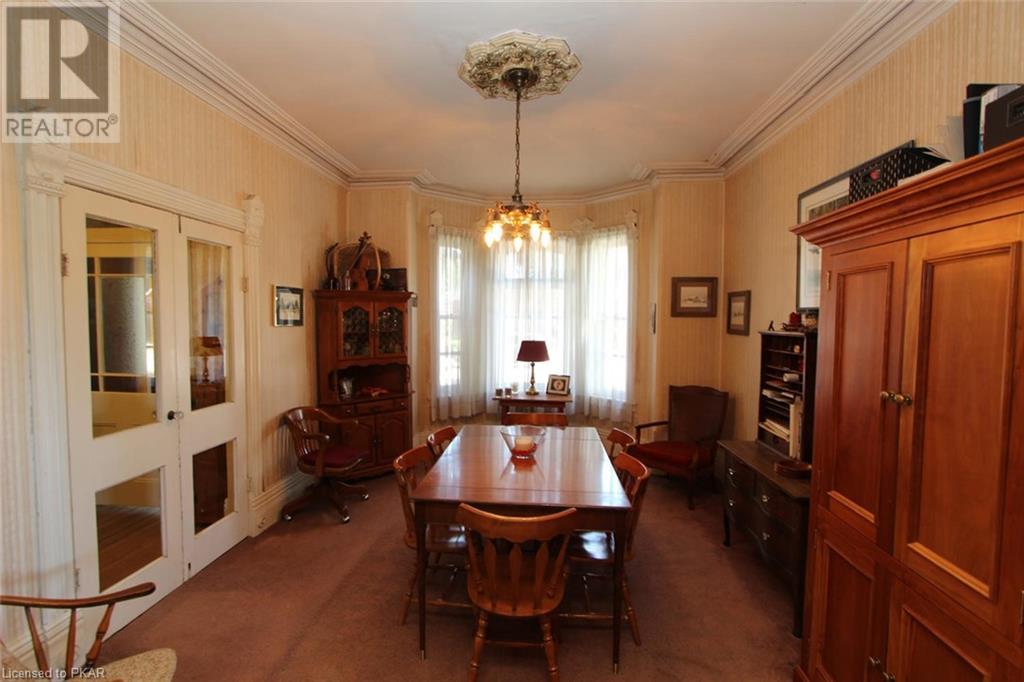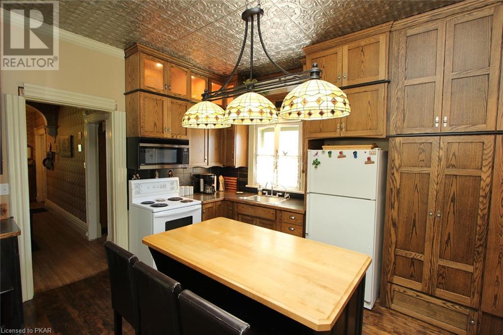 Grand Victorian family home in desirable area in the village of Norwood. Walk to all amenities, - everything typical of small-town life. Good access leading to Cobourg or Peterborough. Situated on a beautiful lot with majestic shade trees, and a paved driveway that supports at least 2 vehicles plus garage/work-shop. Home built around 1884 in the Gothic tradition still has most original features such as: high ceilings, antique light fixtures & mouldings, wide trim, wood floors, stained glass windows and more. Main level features newer laundry and a 2 piece bath off nicely renovated kitchen, a large living-room with unique original fireplace mantle, formal dining room, and a sun-porch entry-way. Second floor features 3 good sized bedrooms and a large 4 piece bath with claw-foot tub. Some interior re-decorating and maintenance work to be done but lots of potential here! 3rd level attic space for future loft development, master bedroom, hobbies, home office, etc. - Bring your imagination! (id:22211)