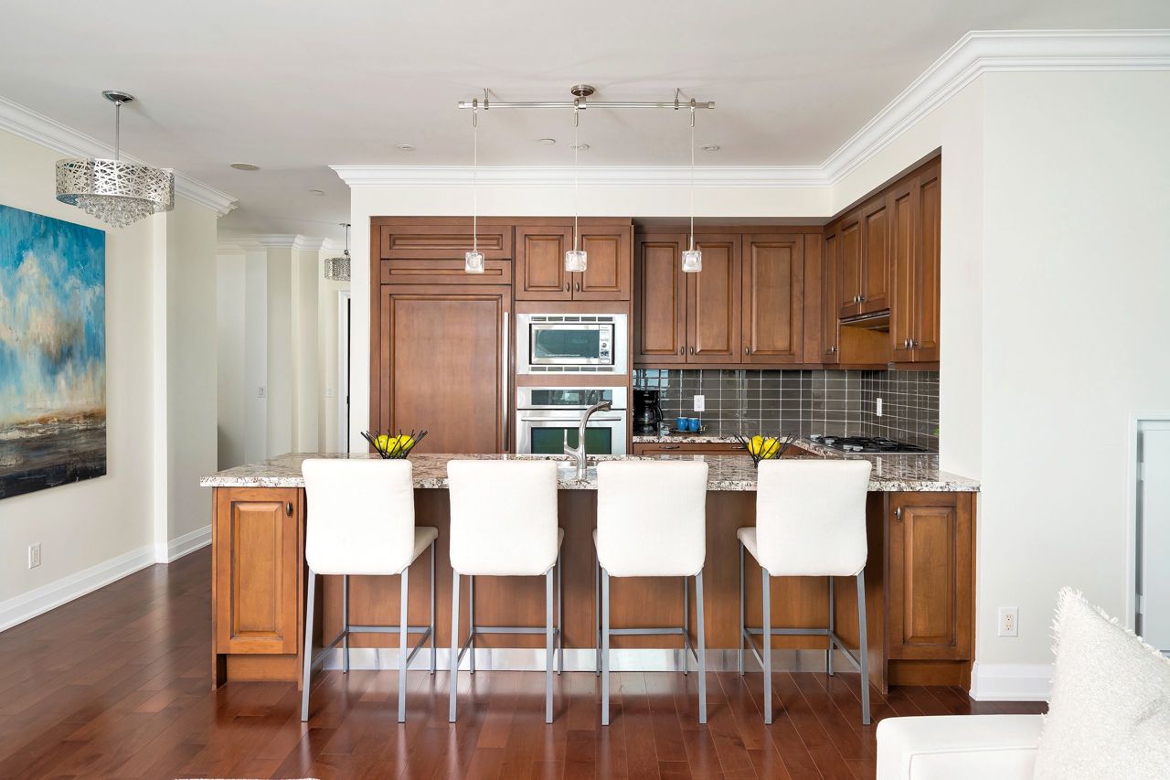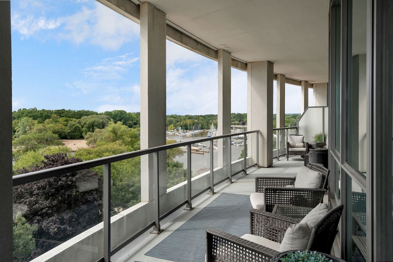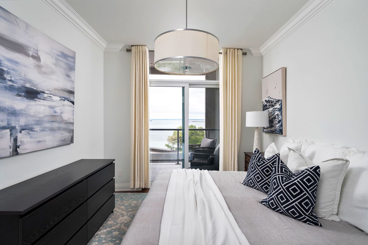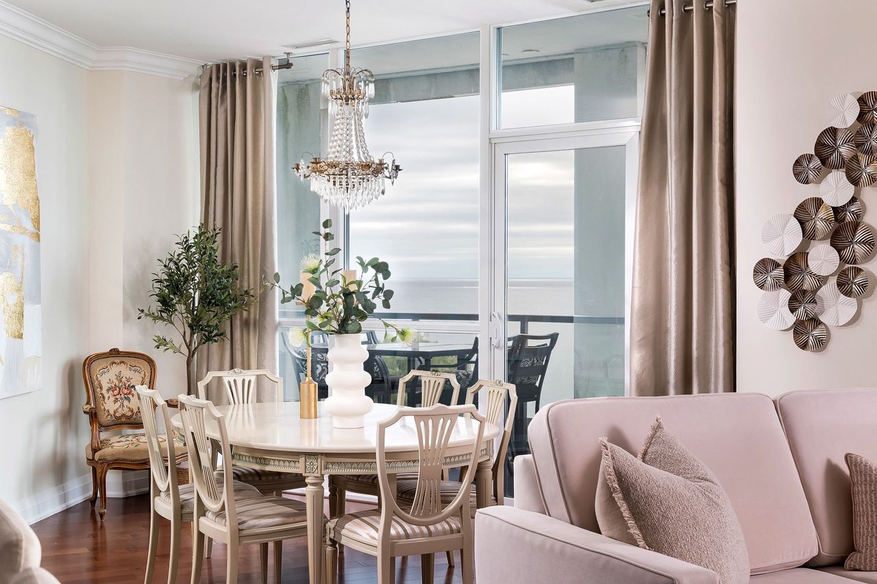 An exceptionally rare layout, “The Faering” unit is a unique pie shaped, extra wide, suite offering almost 1,400 sq ft of living space with full panoramic views of Lake Ontario. Enjoy morning sunrises and evening sunsets - all from your 60 foot long, 440 sq ft balcony. You enter the suite into a proper formal foyer, rarely found in condominiums. The oversized kitchen features built-in appliance, granite countertops, pot drawers and bar seating for 4 and rare walk-in pantry with 2nd fridge. The living/dining room, with stunning gas fireplace, are flooded with natural light, and have breathtaking lake views through the floor to ceiling widows dressed in custom drapery. The spacious primary suite features a walk-in closet as well as a spa-like ensuite with double vanity, soaker tub and glass shower. Enjoy the walkability of living on the water’s edge in the heart of Bronte Village at this resort inspired condominium.The Shores features some of the best amenities of any condo in Oakville including 24-hour concierge, resort-like rooftop inground pool with hot tub, fitness studio with incredible lake views and temperature-controlled wine storage etc.