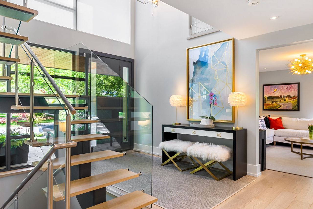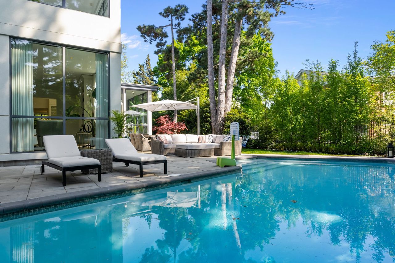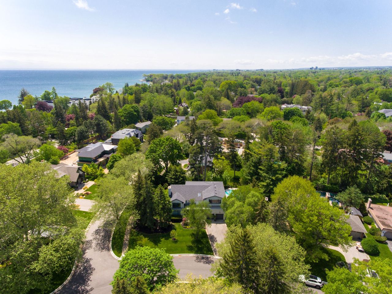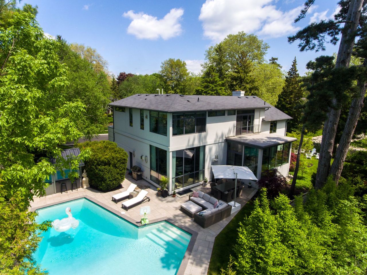 Stunning contemporary masterpiece in highly sought-after SE Oakville. Completely re-constructed from ground up in 2016, followed by extensive renovation in 2019, resulting in state-of-the-art residence that epitomizes modern luxury. Captivating 2-story foyer framed by steel & wood floating staircase w/ custom glass railing. Spacious O/C design, an abundance of natural light by way of floor-to-ceiling windows. Newly redesigned custom kitchen crafted by Gravelle cabinetry, top-line appls & premium finishes offer a perfect sense of style & functionality. Living room w/ private home ofc provides a cozy retreat, while dining area is ideal for hosting elegant gatherings. 2nd Level features convenient laundry room, 4 gracious bdrms including spa-like primary suite w/ spacious w/i closet, Juliet balcony, & 5pc ensuite w/ heated floors, soaker tub, glass shower & dual vanities. Fully Finished lower level includes rec rm, 5th bdrm, full bath, gym, games rm & cold rm.Meticulously landscaped grnds feature ingrnd saltwater pool & private sanctuary to relax & entertain. Mature trees envelop corner lot to provide complete privacy. Prime location -prestigious schools, upscale amenities & easy access to hwys.