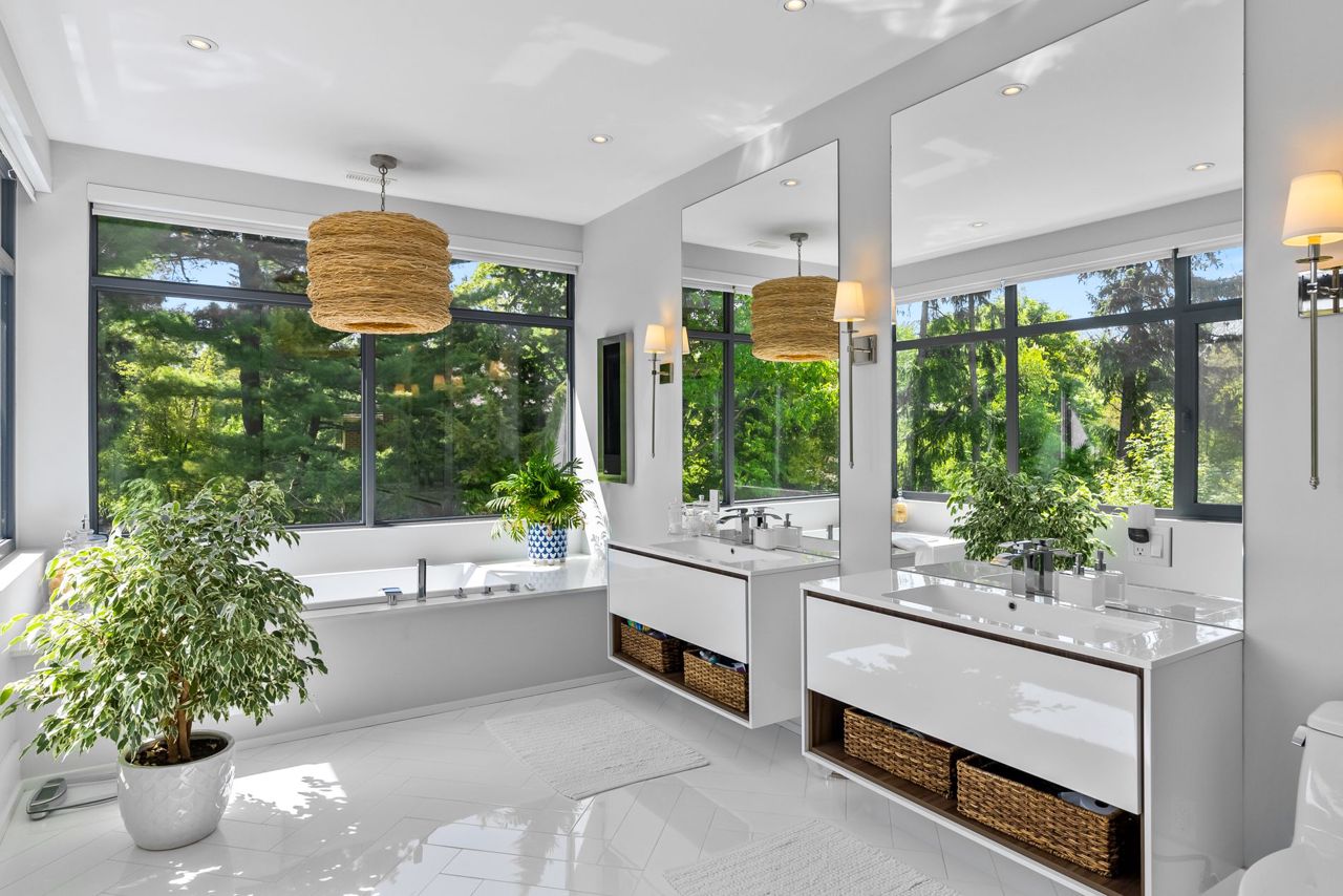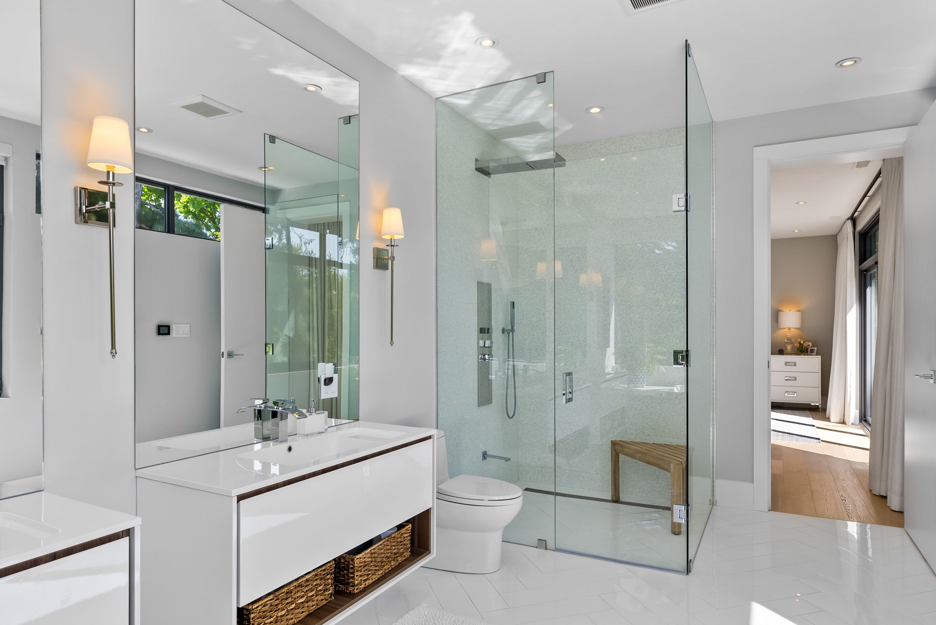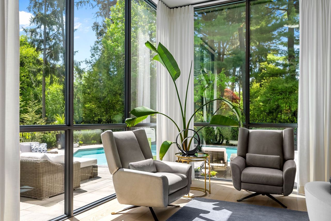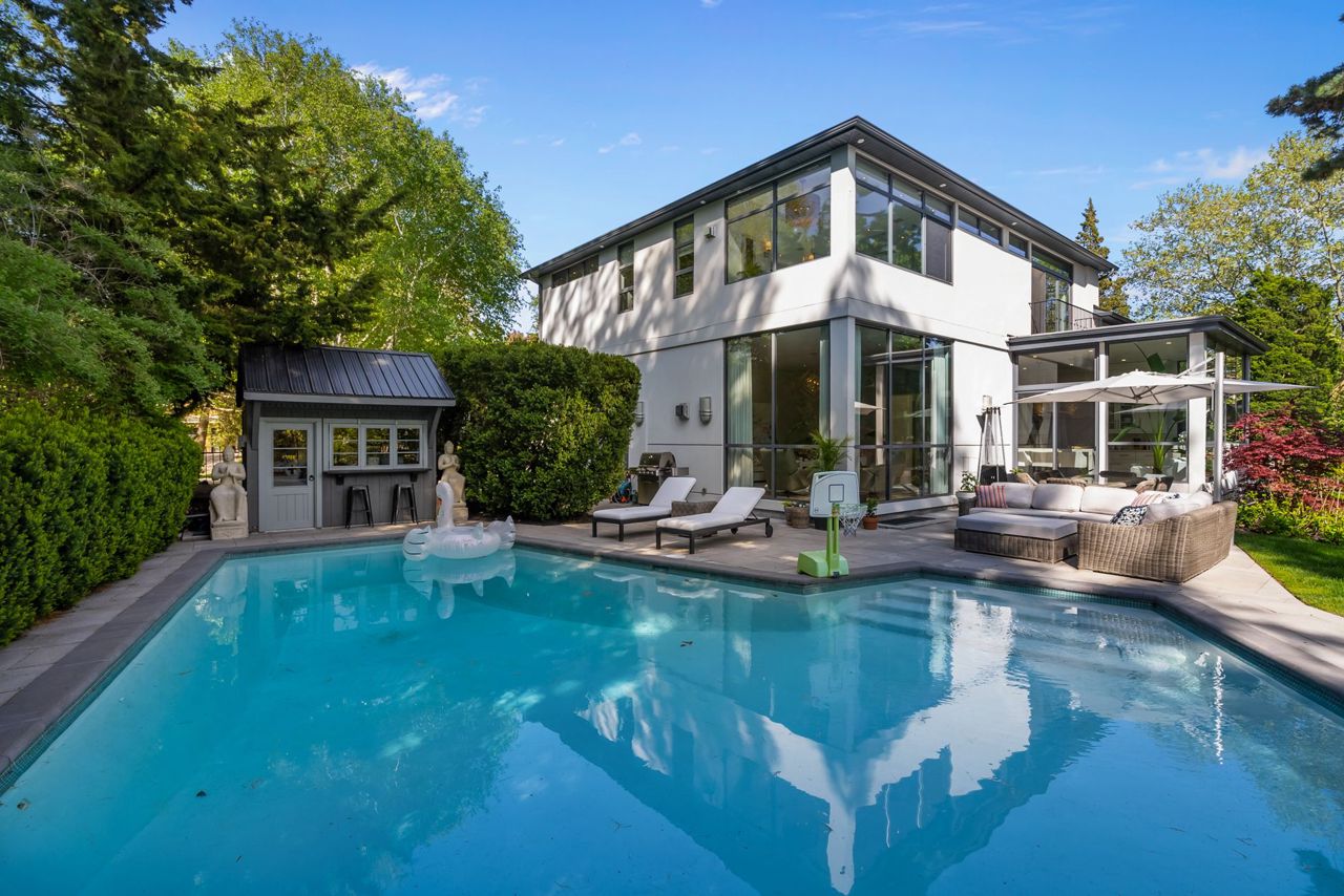 Stunning contemporary masterpiece in highly sought-after SE Oakville. Completely re-constructed from ground up in 2016, followed by extensive renovation in 2019, resulting in state-of-the-art residence that epitomizes modern luxury. Captivating 2-story foyer framed by steel & wood floating staircase w/ custom glass railing. Spacious O/C design, an abundance of natural light by way of floor-to-ceiling windows. Newly redesigned custom kitchen crafted by Gravelle cabinetry, top-line appls & premium finishes offer a perfect sense of style & functionality. Living room w/ private home ofc provides a cozy retreat, while dining area is ideal for hosting elegant gatherings. 2nd Level features convenient laundry room, 4 gracious bdrms including spa-like primary suite w/ spacious w/i closet, Juliet balcony, & 5pc ensuite w/ heated floors, soaker tub, glass shower & dual vanities. Fully Finished lower level includes rec rm, 5th bdrm, full bath, gym, games rm & cold rm.Meticulously landscaped grnds feature ingrnd saltwater pool & private sanctuary to relax & entertain. Mature trees envelop corner lot to provide complete privacy. Prime location -prestigious schools, upscale amenities & easy access to hwys.