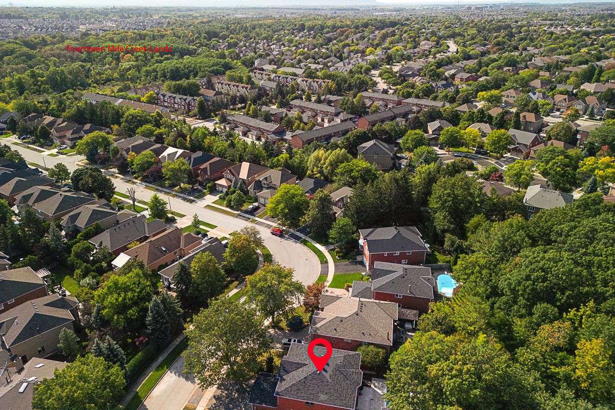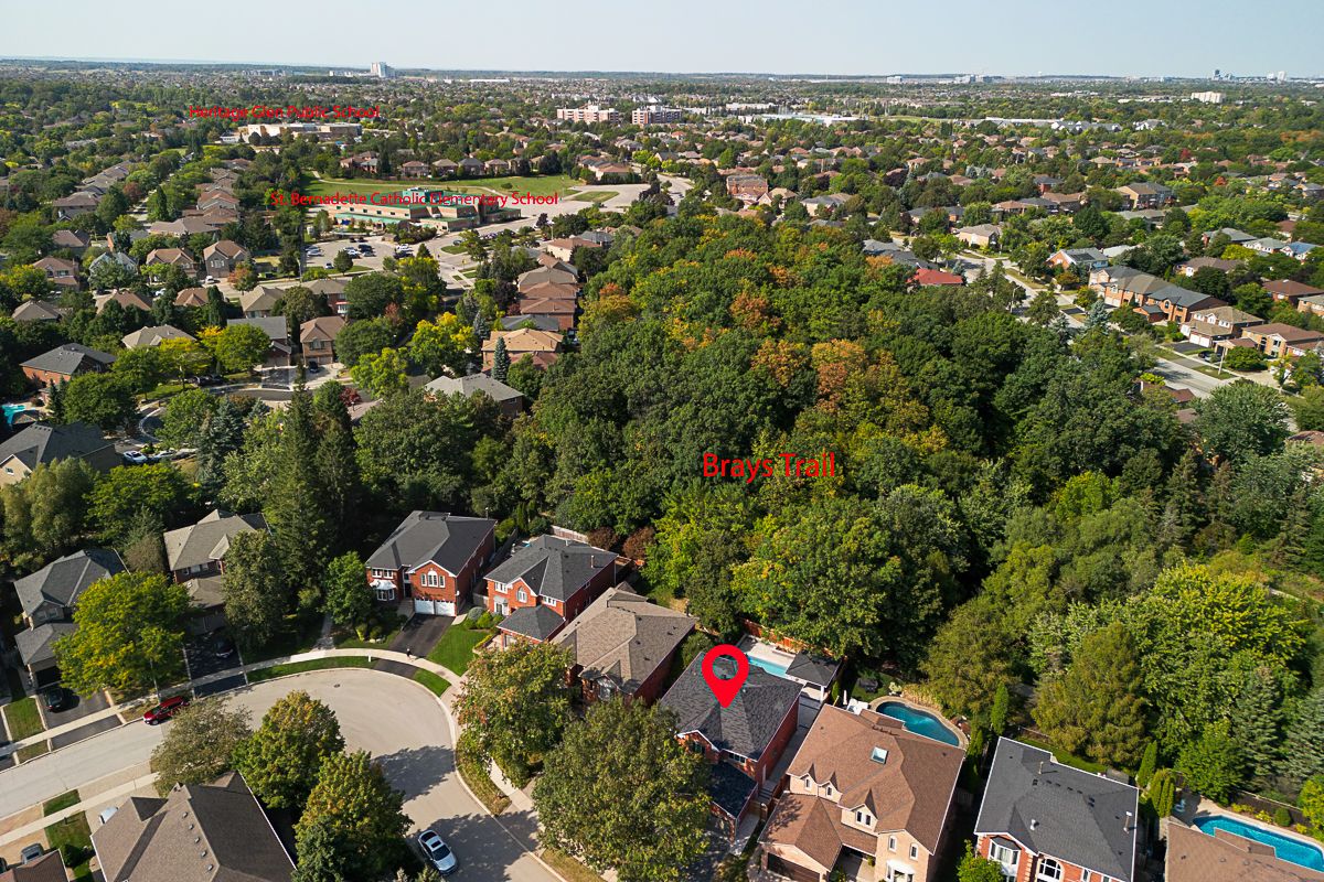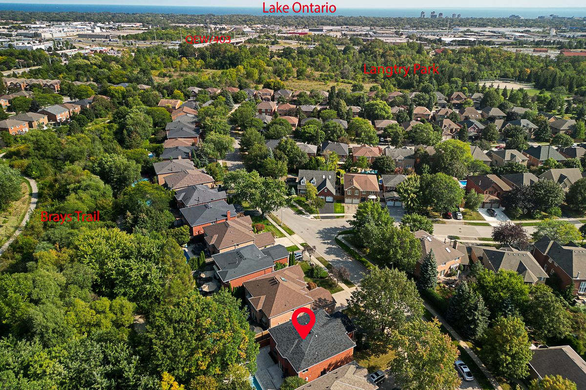 RAVINE! Exceptionally renovated with an investment of more than $750,000, this stunning Glen Abbey home is a true masterpiece, situated along Brays Trail for unrivaled privacy. Boasting a remarkable back yard oasis, meticulously designed by Cedar Springs Landscape Group, its the perfect space for family enjoyment and entertaining. The outdoor haven includes a sprawling natural stone patio, a 14’ x 25’ inground vinyl saltwater pool with natural stone coping, a masonry precast stone water feature and retaining wall, a 13’7 x 16’ pavilion, LED landscape lighting, privacy cedars, perimeter pressure-treated fencing with cedar sections and gates, beautiful gardens, and an irrigation system. Inside, the gourmet kitchen is a chef’s delight, featuring custom soft-close white cabinetry, quartz countertops, a designer backsplash, coal black Blanco sink, pot filler, professional-grade Sub-Zero and Wolf appliances, a tall pull-out pantry, and a spacious breakfast area with a walk-out to the patio.Crafted by Redstone Contracting, this showpiece boasts 7 ½” engineered hardwood floors throughout main & upper levels, custom cabinetry, quartz counters, hardwood staircase with iron pickets. A perfect blend of style, luxury, and function!