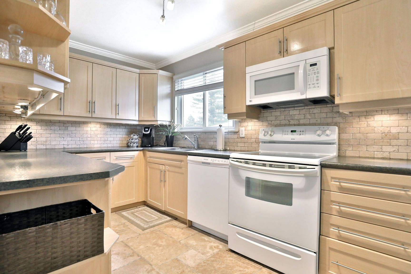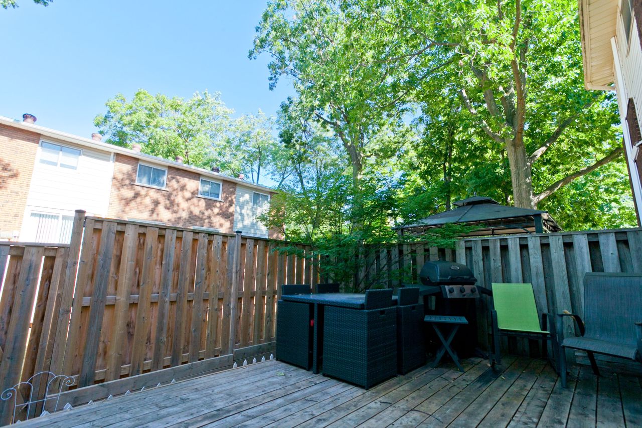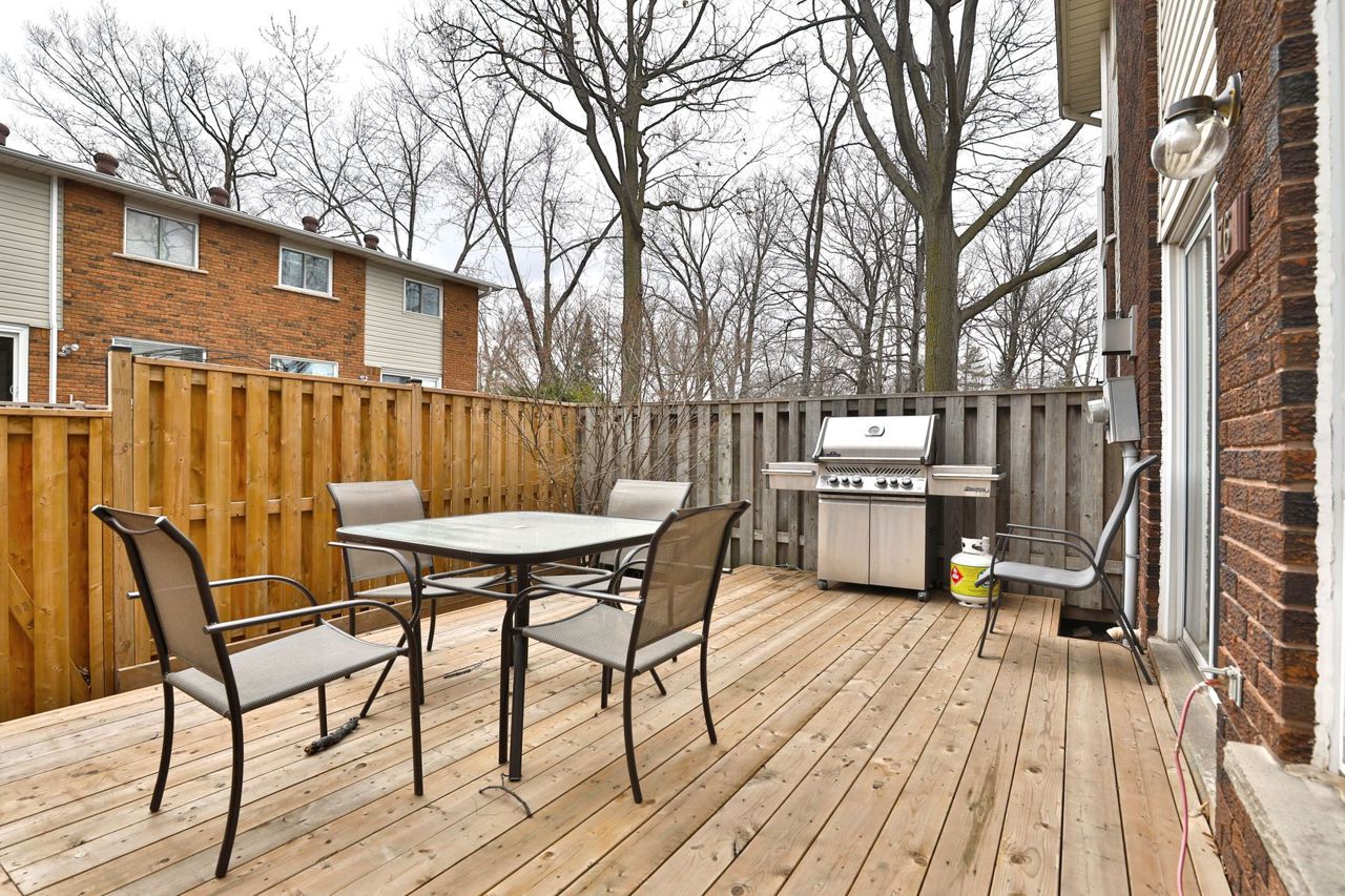 This spacious and charming home features a large living room with soaring ceilings, creating a grand atmosphere. The updated eat-in kitchen features travertine floors and backsplash, while the dining area overlooks the living space, making it easy to stay connected with family and guests. Upstairs, three bedrooms provide flexibility for a growing family, home office, or guest space, with a spacious primary retreat featuring a double closet. Not all units in the complex have fireplaces, but this home features a gas fireplace that the owners have used throughout the winter as the primary heat source for the whole home, resulting in significantly lower hydro costs compared to using electric baseboard heaters. In the warmer months, stay cool with the use of the included A/C options: two portable window vented units, and two window-mounted units. Beyond the four walls, you'll love the Oakville lifestyle: ranked as one of Canada's best places to live, it combines lakeside charm with big-city convenience, offering everything from community centres and boutique cafés to trails and green spaces that encourage an active lifestyle. Imagine cozy winter evenings by the fireplace, summer weekends entertaining on the deck, and weekday mornings made easier with nearby transit and highway connections. Photos taken prior to the current tenant. Current tenant vacating Oct 31, 2025. Tenant to pay: hydro, gas, and hot water tank rental (approx $29.82). Very reasonable utility costs. These are the approximate, average monthly utility costs from the last year, from the current tenant: gas - $84.43, hydro - $75.58.
