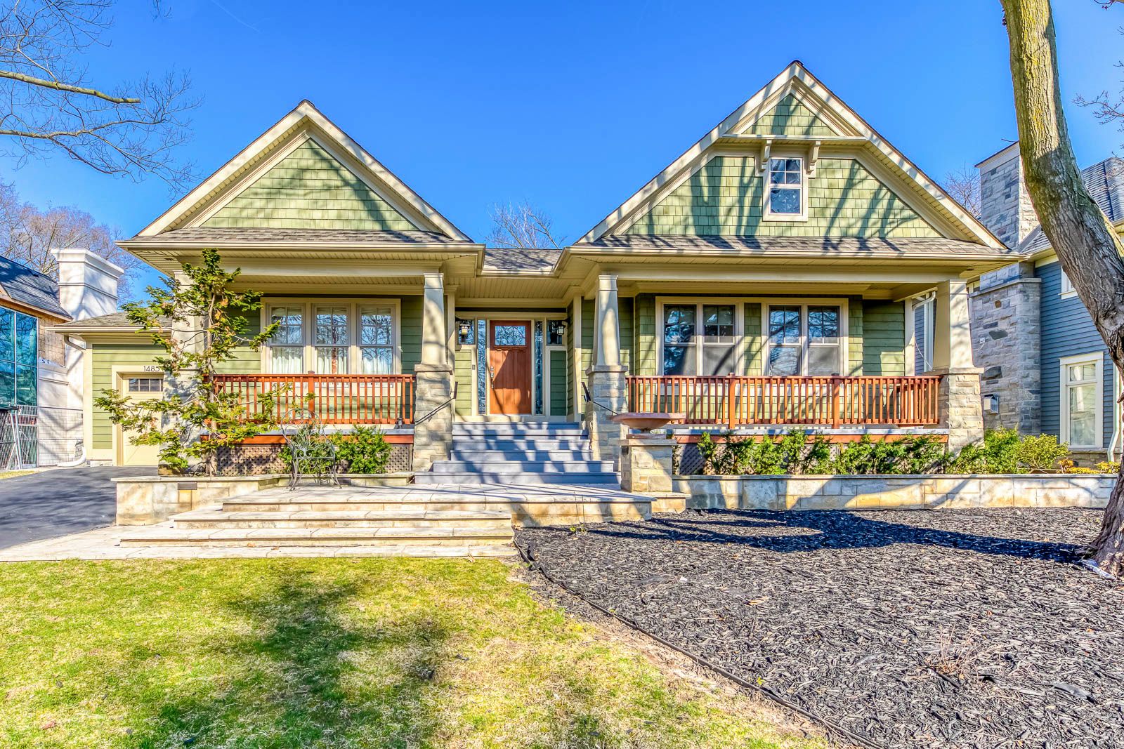 Gorgeously Property In The Highly Sought-After Neighborhood Of South East Oakville!! This Is A Rare Find Arts & Crafts Style Bungalow With Over 4,000 Sq. Ft. Of Total Living Space. An Inviting Front Porch Welcomes You To This 3+2 Bedroom Executive Family Home. The Serene Rear Garden Features Towering Trees And Beautifully Manicured Lawn And Gardens. The Open Concept Main Floor Layout Is Perfect For Entertaining Boasting A Gourmet Kitchen And An Exceptional Stone Fireplace With A Handcrafted Walnut Mantel As A Focal Point. A Walkout From The Dining Room Leads To A Spacious Covered Deck With Automated Drop Down Screens That Provide Bug Free Evenings. 3 Full Baths, 2 Separate Laundry Areas, Exercise Space, Recreation Room And Wet Bar. Prime Location, Steps To OT Hs And Maple Grove Ps And A Short Drive To Oakville Go Station And Major Highways. Lots Of Storage Space. Attention To Detail And Quality Craftsmanship Are Apparent Throughout This Impressive Home.Furnace and CAC (2023).
