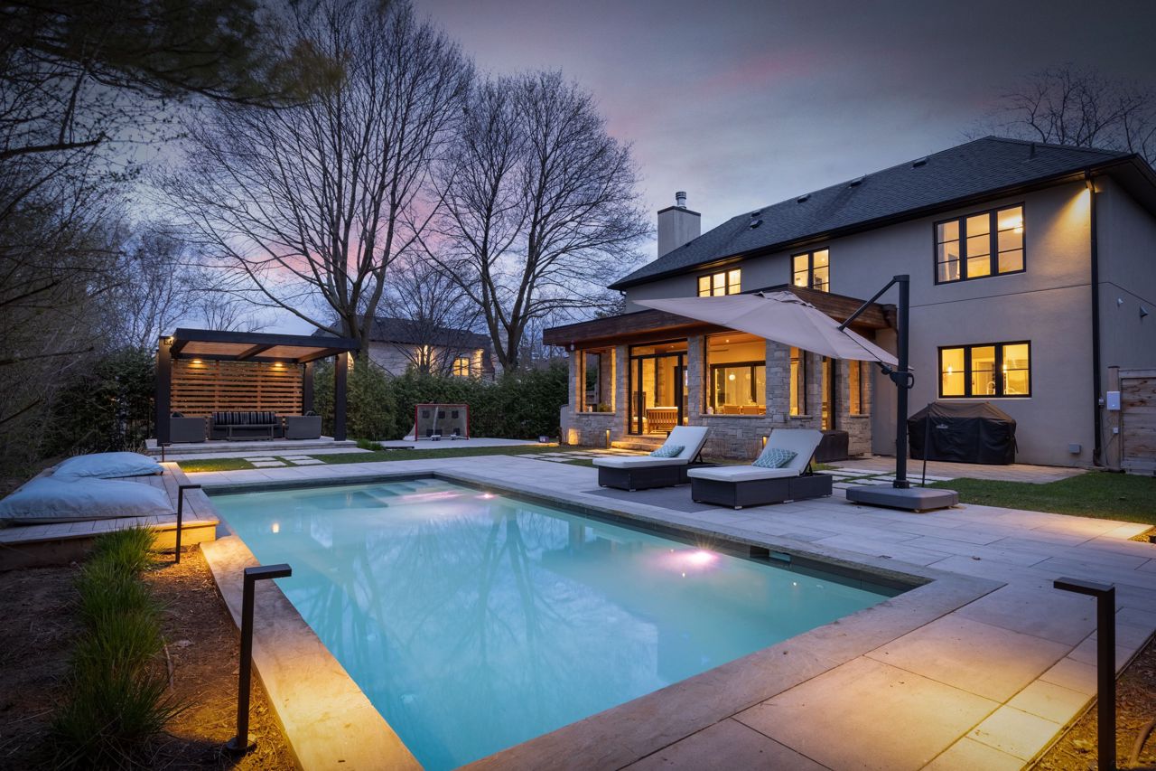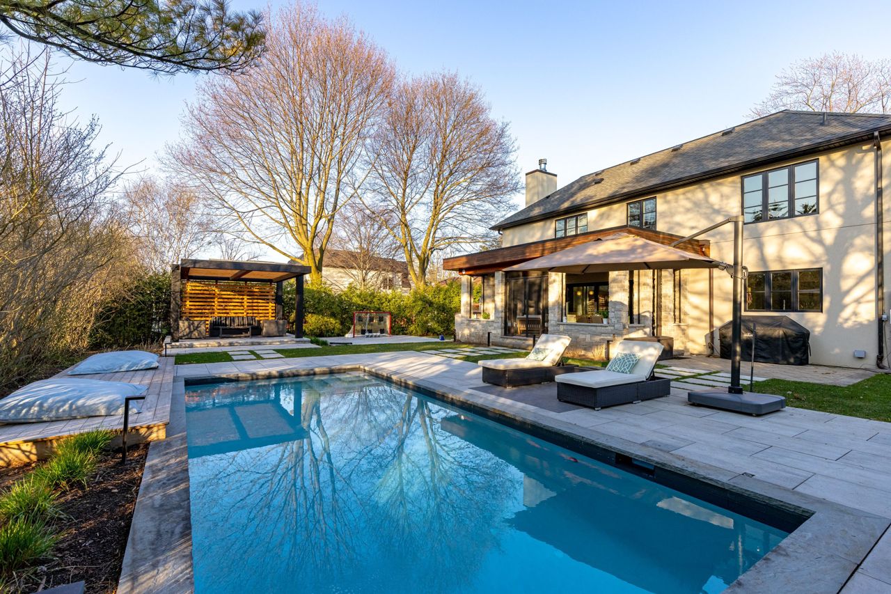 SPECTACULAR, with superior built-in automation is the best way to describe this cutting edge, custom family home. The great curb appeal is accentuated by natural wood detailing complete with copper eaves & downspouts. The grand, bright & airy 2 storey foyer has magnificent stone flooring & a design forward chandelier on a lift. There is luxury built in cabinetry throughout this home with a gorgeous Top Notch kitchen, high end appliances & stone counters. The wall of windows in the superb family room is created by a set of exclusive stackable sliding doors opening to a covered porch with remote screens & an outdoor open flame gas fireplace. The fully finished lower level is accessible by 2 staircases, one leading to the private suite complete with a full bath, laundry hook up & has rough-in plumbing for a kitchen. Further the private basement suite connects to the family room, gym & 2nd powder room. The spacious 2nd floor has 4 bedrooms, 2 sitting areas, 3 baths & a laundry room.The back-yard oasis simply put is a dream retreat with a brand new Gibsan concrete pool, a stunning pergola & so much more.