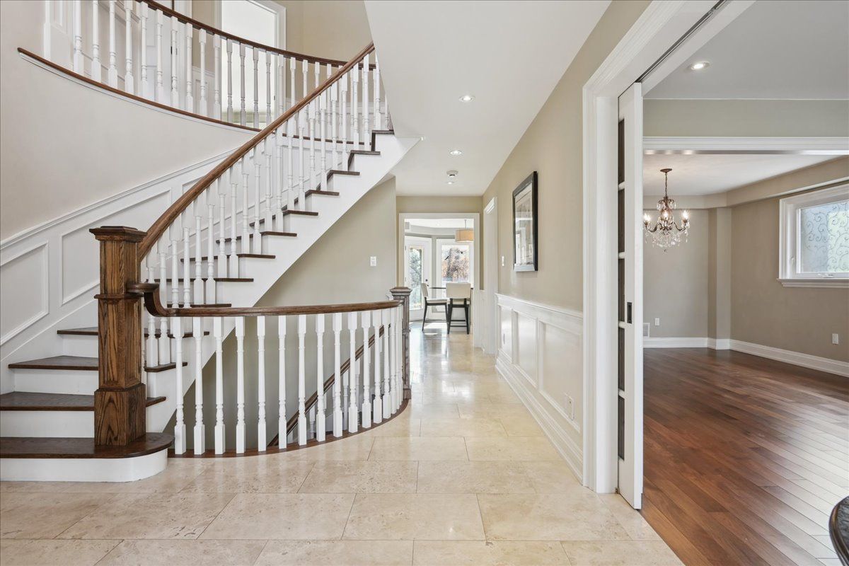 entrance to main floor laundry, upgraded staircases, several pocket doors to optimize space,