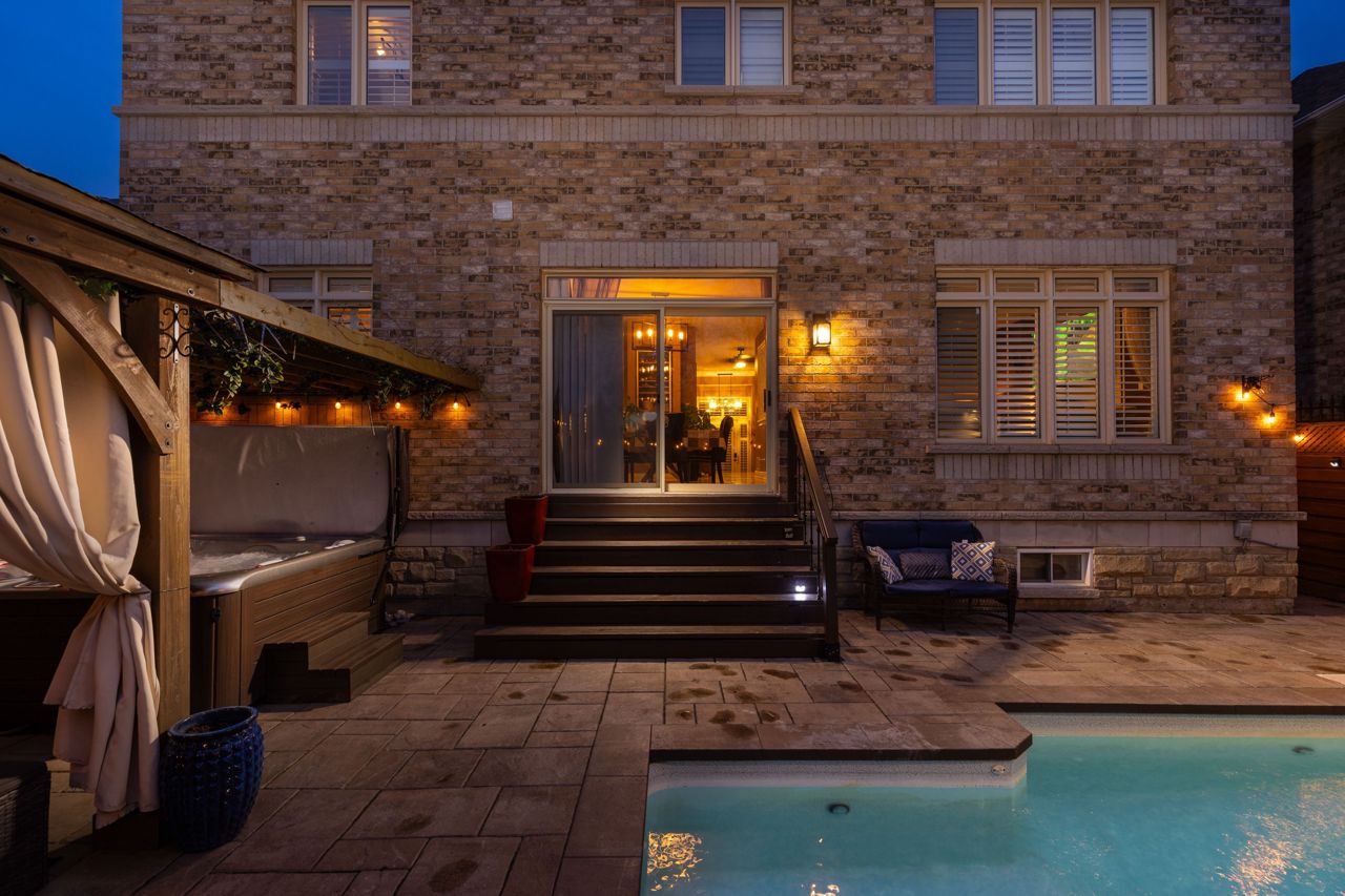 West Oak Trails Upscale Living in Oakvilles Premier Family Neighbourhood! With over 300k in upgrades!!! Stunning dream backyard with pool! Situated in a prestigious enclave between Bloomfield Park & McCraney Creek, this luxurious Kaneff-built former model home in West Oak Trails offers luxury well designed living space and newly finished basement, blending timeless elegance with modern functionality. Updated from top to bottom, & inside out, the home features an exterior facelift with new garage doors, lighting, & a new asphalt driveway, while the double garage shines with a new epoxy-coated floor & cedar plank finishes. A dream backyard oasis! The newly created resort-style backyard is an entertainers dream, showcasing a heated inground saltwater pool, hot tub, custom gazebo, pool house with electricity, stone hardscaping, & vibrant perennial gardens. The main level impresses with rich hardwood floors, 9-ft ceilings, stone accent walls, a refinished family room fireplace, a formal living/dining room with a servery & a walkout to a private balcony, a gourmet kitchen with stone countertops, 4 new stainless steel appliances, wine cooler, new under-cabinet lighting, & a walkout to the backyard oasis. Completing the main floor is a lavishly renovated powder room, & a private office ideal for working from home. The upper level features a primary suite with a new custom gas fireplace, massive walk-in closet with custom organizers, & a spa-like 5-piece ensuite, plus 3 additional bedrooms & an updated 4-piece main bath. The newly finished lower level offers a spacious recreation room, stone clad wet bar & kitchenette with quartz counters, a fifth bedroom, a stylish 3-piece bathroom, & inside entry to the garage. Ideally located near excellent schools, nature trails, shopping centres, major highways, & the GO Train, & the Oakville Hospital is a 3-minute drive. This show-stopping home represents the best of luxury real estate in West Oak Trails, Oakville.