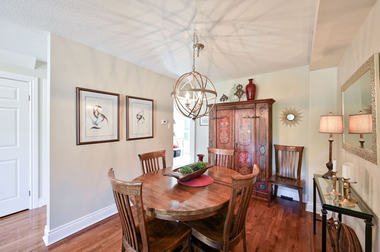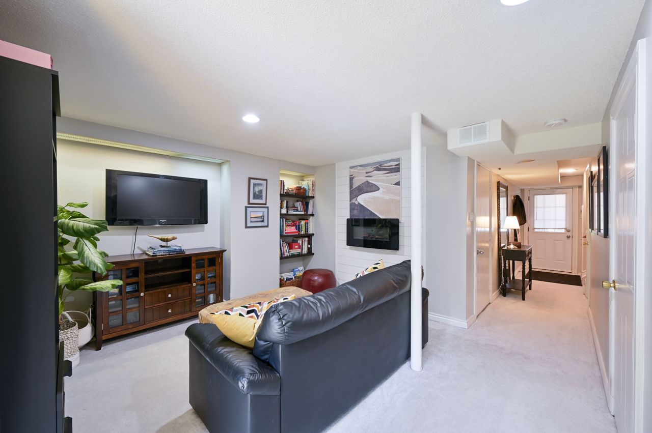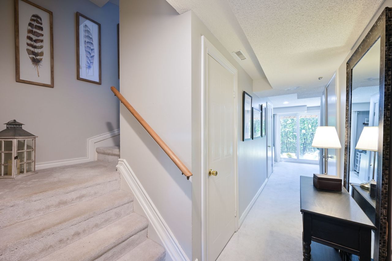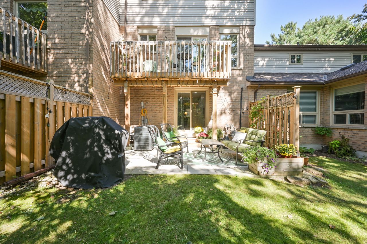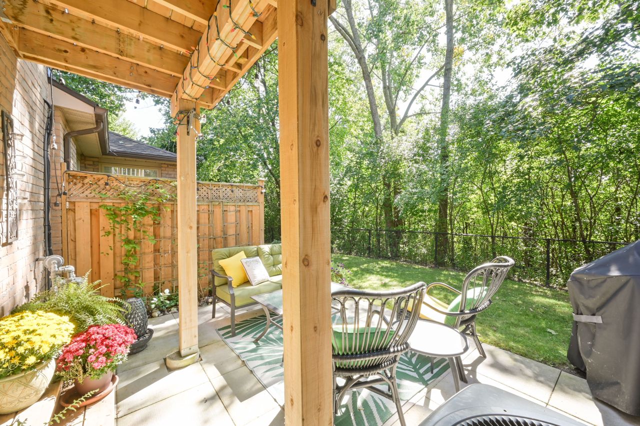 Prime River Oaks 3 bed, 3 bath town backing onto lush ravine. This home has all the “I want’s”. Light filled updated kitchen with granite countertops and glass subway tile backsplash. Walks-out onto a beautiful extended terrace overlooking ravine. Perfect place to enjoy morning coffee. Hardwood floors throughout the main level and stylish light fixtures. The primary bedroom has new (2019) 3 piece ensuite bathroom and convenient dressing area. Other two good sized bedrooms overlooking ravine. The cozy lower level family room has electric fireplace, office niche and walks out to super pretty newer patio and green space. This home is perfect for downsizers or young families. The complex is well maintained and kid friendly with low traffic in and out. Close to top ranked schools, trails, shopping and easy access to highways.