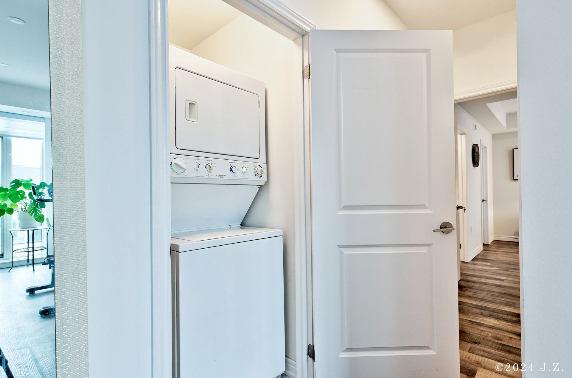 Fully furnished Spacious 2 Bedroom + 2 Washroom In Oakville. 2 Parking Spots. ALL utilities included + High speed Internet! Living Space Over 1000Sq. Ft. With A Large Terrace. 9 Ft. Ceilings, Open Concept Unit Kitchen With Stainless Steel Appliances. Ample Storage. Two Full Washrooms With Bathtub & Stall Shower. Master Bedroom With Walk-In Closet, Large Window & Ensuite Washroom. Close To All Amenities Like Hospitals, Schools, Highways.Stainless Steel Fridge, Stove, B/I Microwave Oven, Stacked Front Load Washer And Dryer. 2 Parking Spots included ( 1 Garage + 1 outdoor spot ). All utilities included + High Speed internet. Fully furnished.