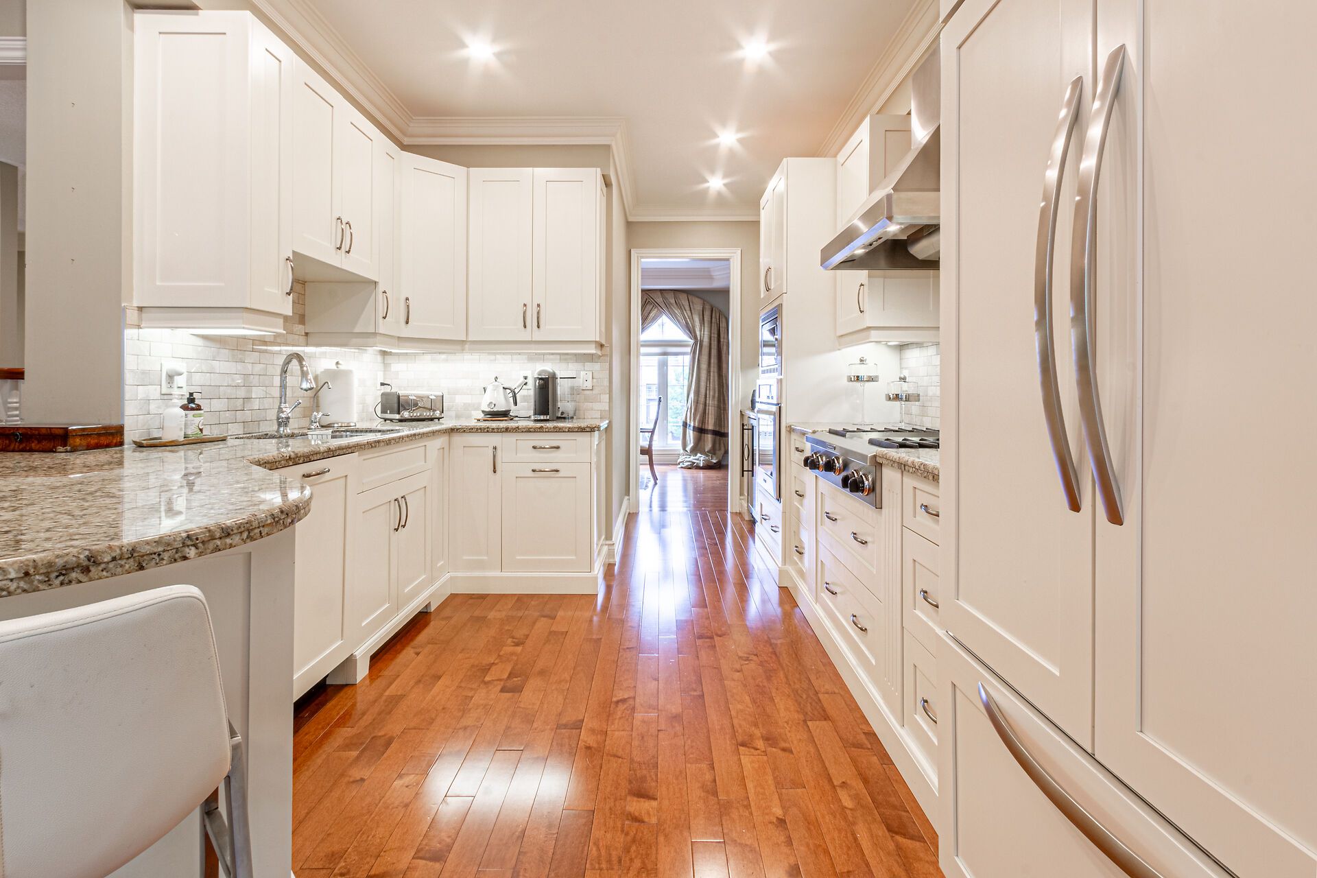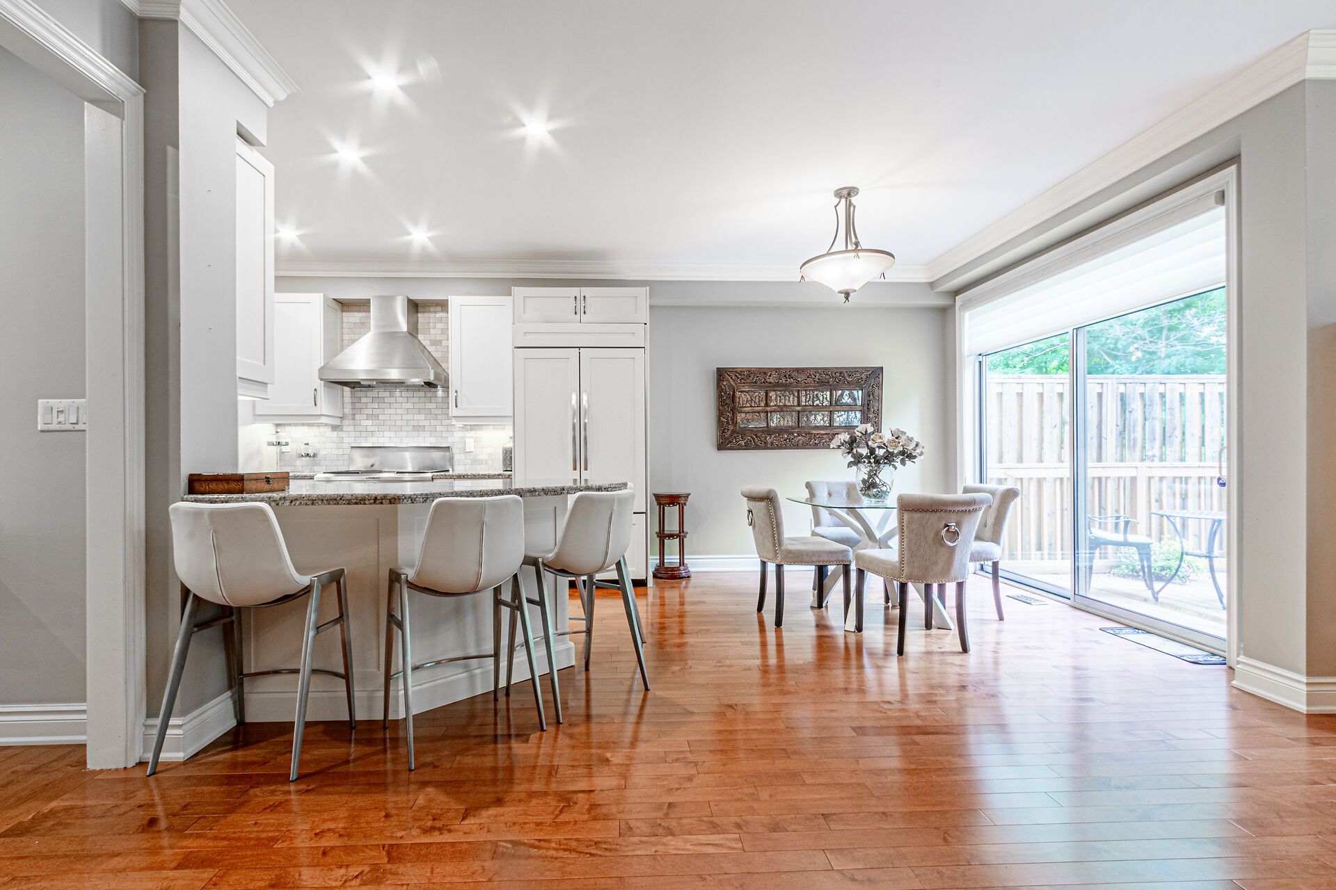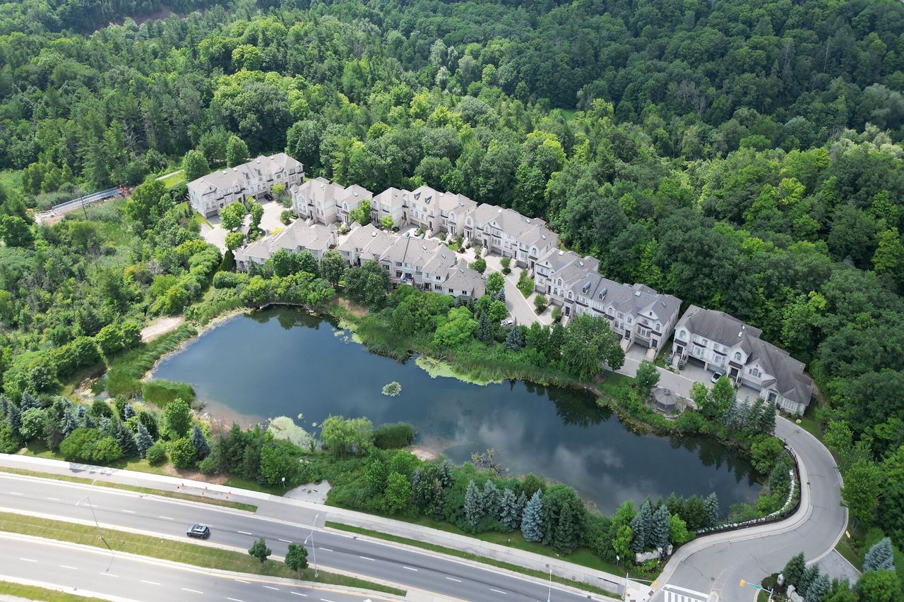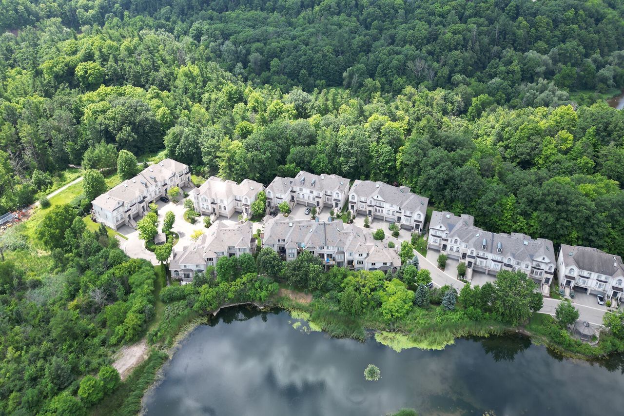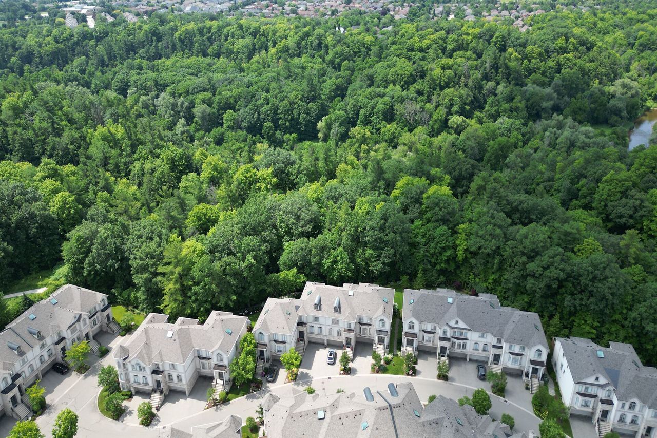 Welcome to Winding Creek Cove an exclusive enclave of luxury executive townhomes crafted by Ballantry. Nestled against the tranquil backdrop of 16 Mile Creek, this serene community invites you to experience the perfect blend of elegance & natural beauty. With over 3,000 square feet spread across three levels, this townhome offers room to breathe. The double car garage ensures convenience, while the gleaming hardwood maple flooring and 9-foot ceilings create an inviting ambiance. The formal dining room sets the stage for memorable gatherings. The gourmet kitchen, complete with granite counters and built-in appliances, beckons culinary adventures. And when the weather calls, step out onto your rear deck and soak in the lush surroundings. The main floor living room seamlessly connects to the kitchen, featuring a captivating maple feature wall and a cozy gas fireplace. Ascend the skylight-lit stairs to the second floor, where gleaming maple hardwood floors lead you to three spacious bedrooms. The master retreat boasts not one but two walk-in closets and a stunning 5-piece ensuite with a spa-like glass shower. The laundry room, oversized linen closet, and a well-appointed 4-piece bath complete the second floor. Meanwhile, the ground floor level provides direct access to the double car garage, a spacious family room, office and even a walkout to the lower patio. Imagine sipping your morning coffee in the professionally landscaped rear yard, with 16 Mile Creek as your backdrop. Location, Location, Location: Nature lovers will revel in the nearby walking trails and private pond. Yet, this oasis is also remarkably connected. Shopping, transit options, Oakville Hospital, and excellent schools are all within easy reach. If carefree luxury living is your aspiration, look no further. Winding Creek Cove awaits, a harmonious blend of sophistication and natural wonder.