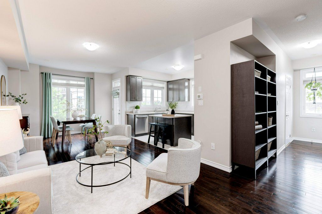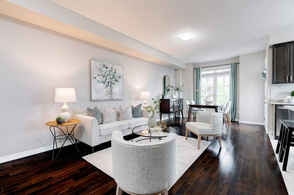 Welcome to this sun-filled end-unit FREEHOLD townhouse, offering comfort, style, and incredible value in a prime location! Its a great time to get into the market, and this beautiful home ticks a lot of boxes. Thoughtfully designed with two spacious bedrooms EACH WITH ITS OWN PRIVATE ENSUITE, plus a bright main floor den/office/small bedroom. The heart of the home -kitchen, dining, and living all open and connected for easy flow. Youll enjoy a walkout to a balcony which could be handy for pets, or a convenient spot to BBQ, enjoy morning coffee or winding down at the end of the day taking in the summer sunsets. Off the open concept main living area there is the laundry room conveniently tucked away and a powder room for guests. The generous primary suite includes a large walk-in closet with a window and a full ensuite bath! Your guests have the added privacy of their own full ensuite bath too in the 2nd bedroom. Practical upgrades include: roof (2018), central air (2022), washer/dryer (2020), . Plus, 9 windows have UV-filtering film professionally installed for added comfort and protection. Hardwood floors and painted throughout in neutral tones, this home is move in ready! Easy commuter access to the QEW, 407 and minutes by car or walk to the world class Oakville Trafalgar Memorial Hospital! Single car garage with inside entry. Gracious front porch and entry. Reasonable road fee of $106.64 takes care of the private road and common areas.