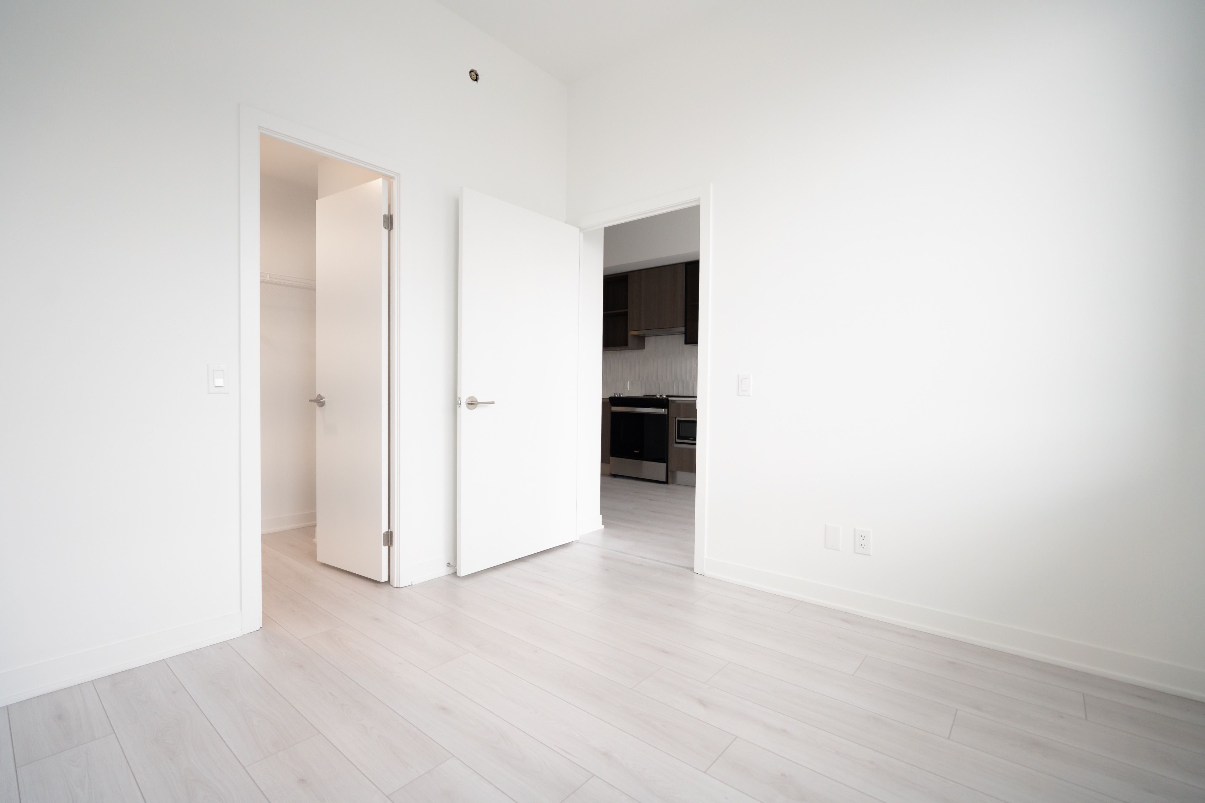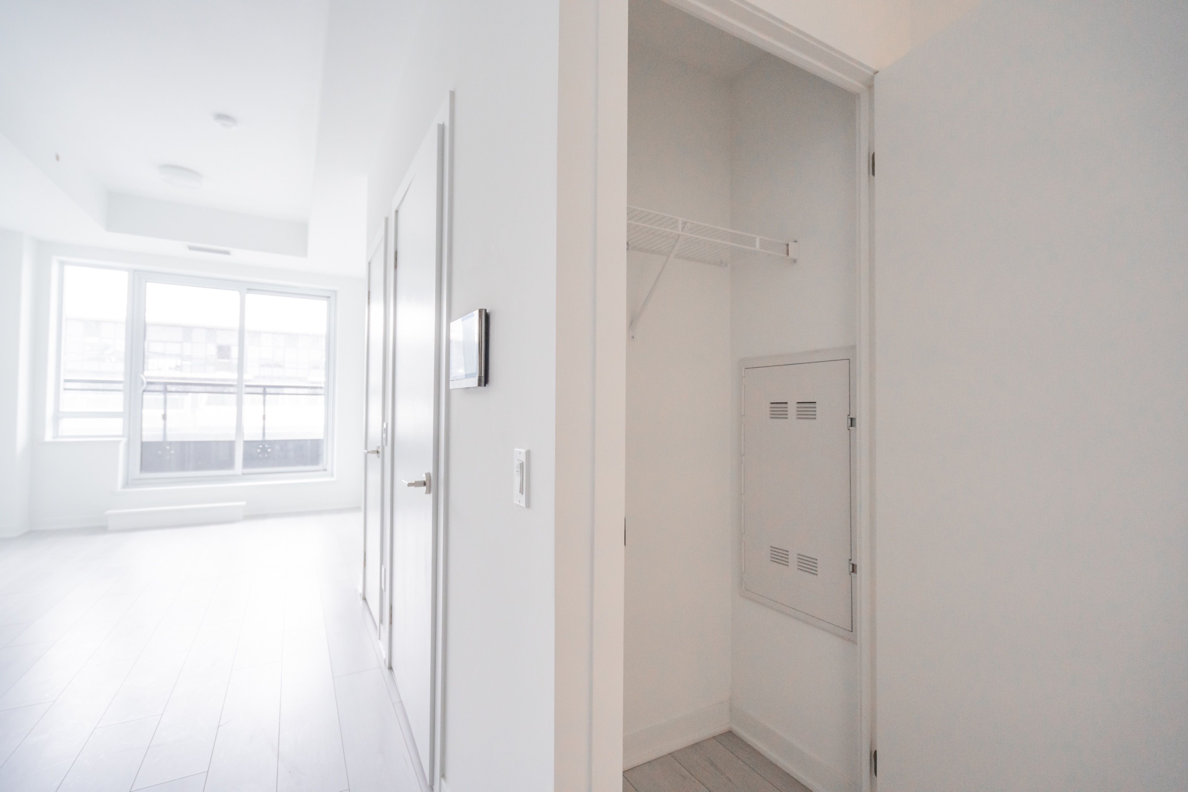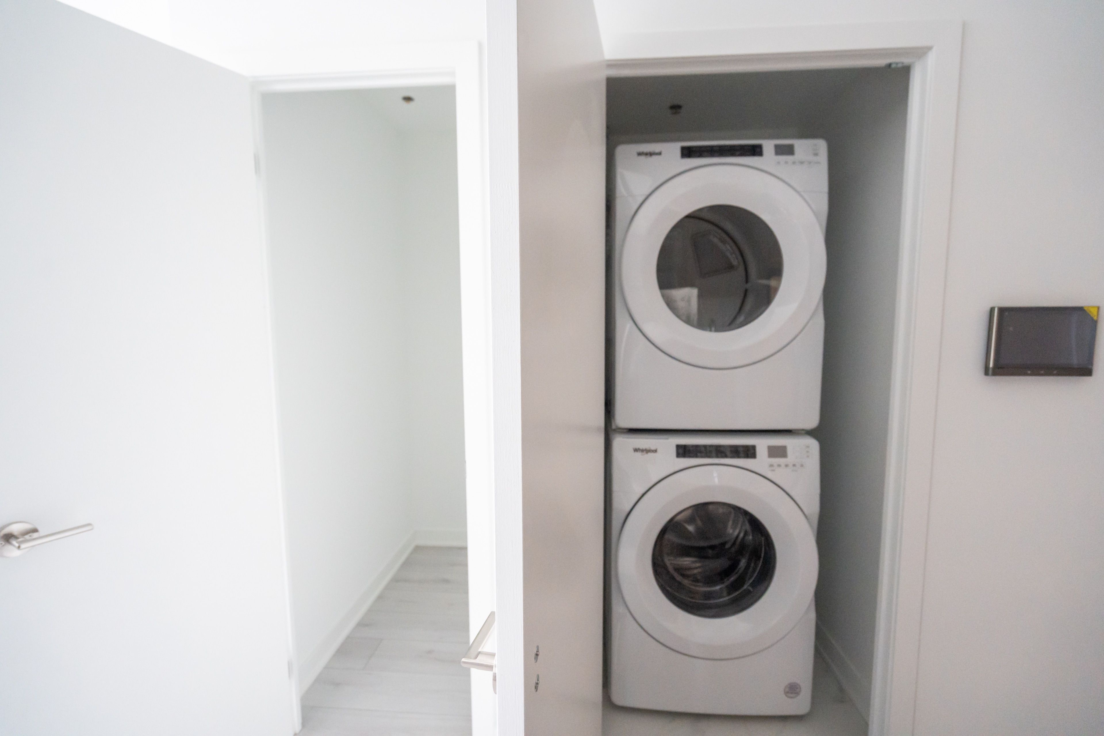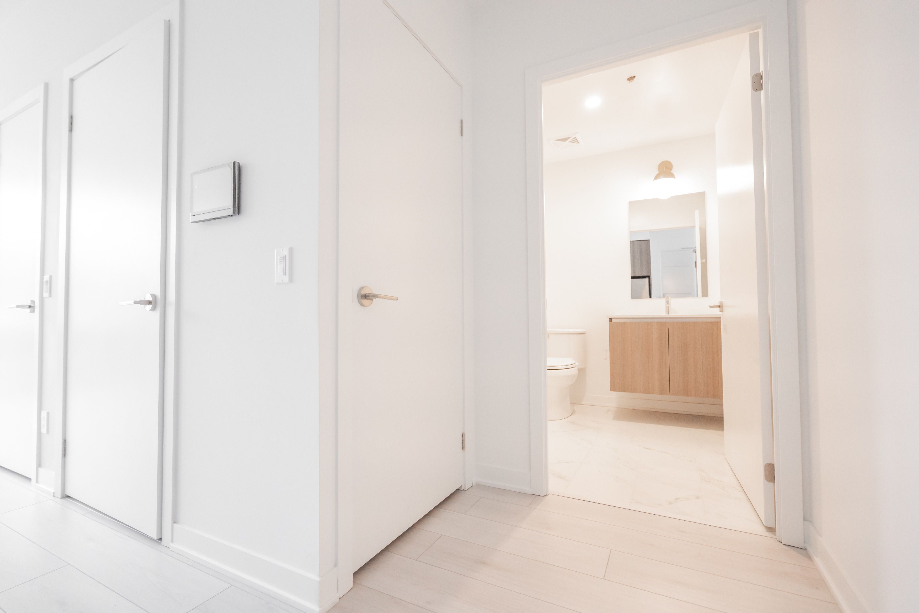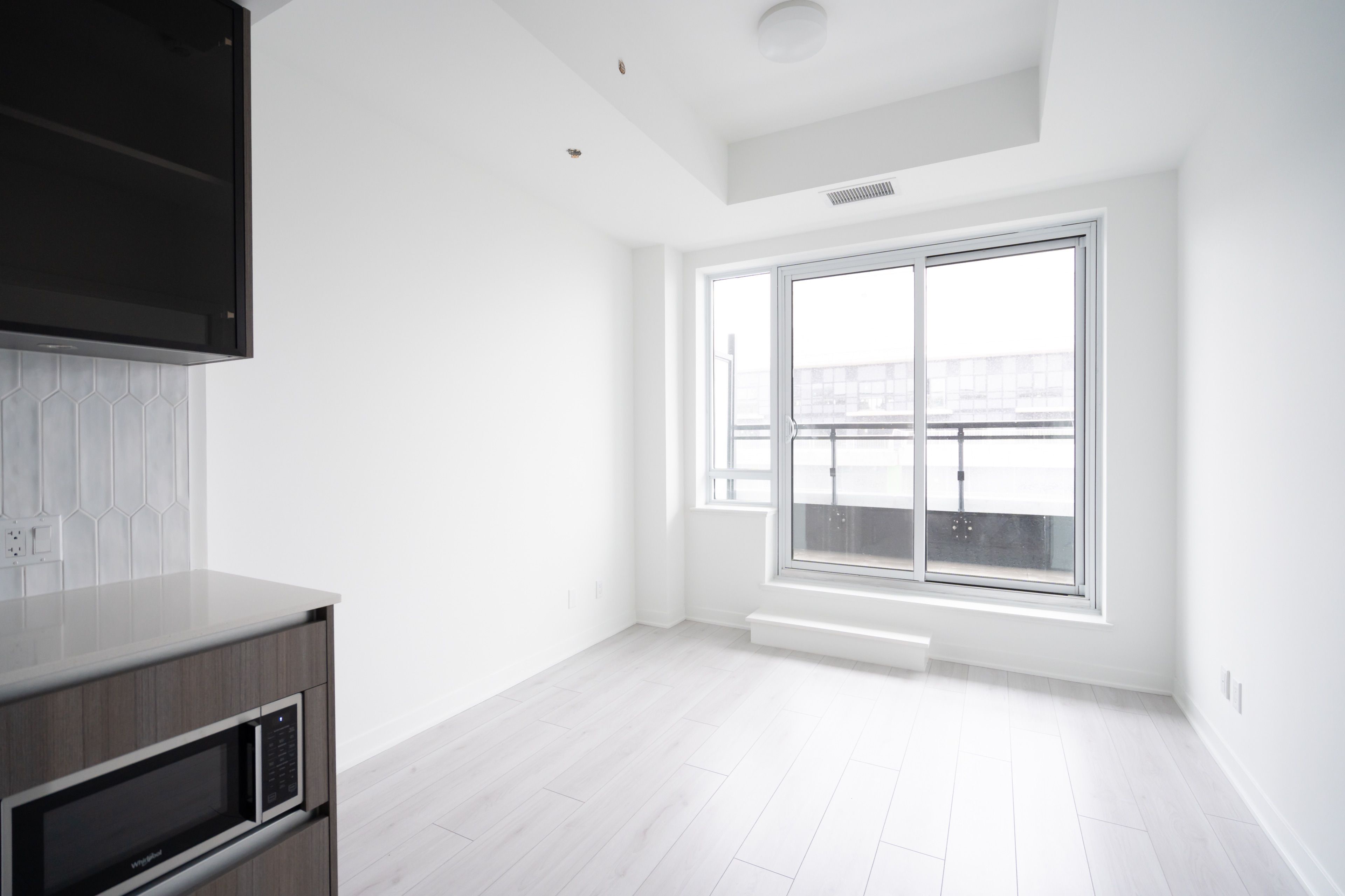Welcome to Distrikt Trailside! This exclusive lower penthouse unit offers the pinnacle of luxury living in a contemporary 1-bedroom, 1-bath layout. With 10-foot smooth ceilings across a 600 sqft interior and a 114 sqft balcony equipped with a gas line, every detail is designed to maximize natural light and open-concept flow. Enjoy a gourmet kitchen with ample storage. The kitchen boasts laminate cabinetry, soft-close drawers and cabinets, porcelain backsplash tile, a single basin undermount stainless steel sink with a single lever faucet, and a convenient pulldown spray. Equipped with an AI Smart Community System, the unit ensures enhanced security with digital door locks and an in-suite touchscreen wall pad. As a lower penthouse, this unit provides elevated views and an added sense of exclusivity. Residents have access to a host of spectacular amenities, including 24-hour concierge services, on-site property management, a parcel storage system and mail room, and a pet washing station. Health and wellness are prioritized with a double-height fitness studio featuring state-of-the-art weights and cardio equipment, along with dedicated indoor and outdoor spaces for yoga and Pilates. Additionally, the 6th-floor amenity area offers an extensive space complete with a chef kitchen, private dining room, cozy lounge with a fireplace, and a games room for relaxation and entertainment. Experience the ultimate in luxury and exclusivity in this meticulously designed penthouse unit at Distrikt Trailside!