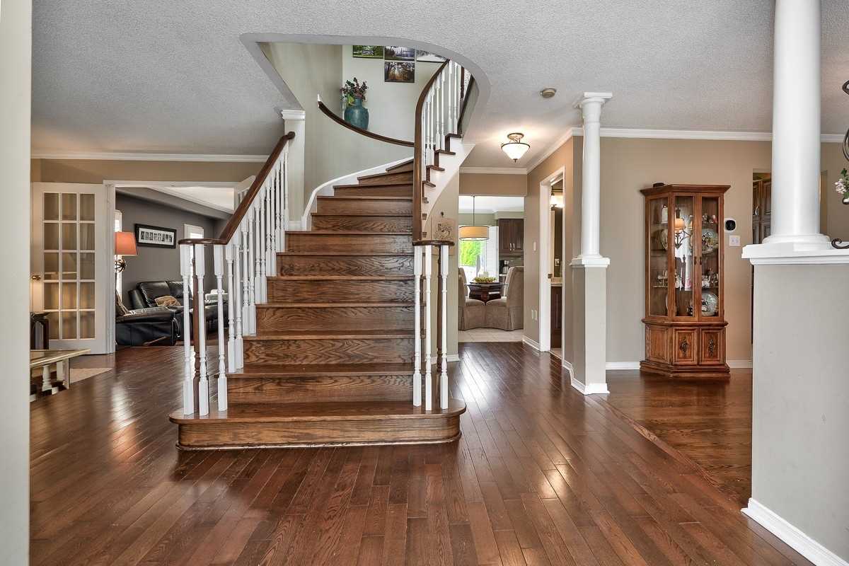Fabulous Executive Carriage Style 4+1 Bedroom Home In River Oaks! Features Big Granite Island Kitchen With Two Sided Fireplace To Family Room , Hardwoods T/O. Checkout The Entertainer's Lower Level With 3Pc, Wet Bar And 5th Bedroom. Loads Of Upgrades Here! Invisible Double Garage Design Attached At Rear Of Home. Great Floor Plan, No Wasted Space. Butlers Pantry And Ceramic Tile Flooring. Professional Landscaping With In Ground Sprinkler System Front And Back! Fridge, Stove, B/I Dishwasher, B/I Microwave, Washer & Dryer, All Electrical Light Fixtures, All Window Coverings, Garage Door Opener & Remote. Exclusions: All Tv's & Mounts And Fireplace Mantle.