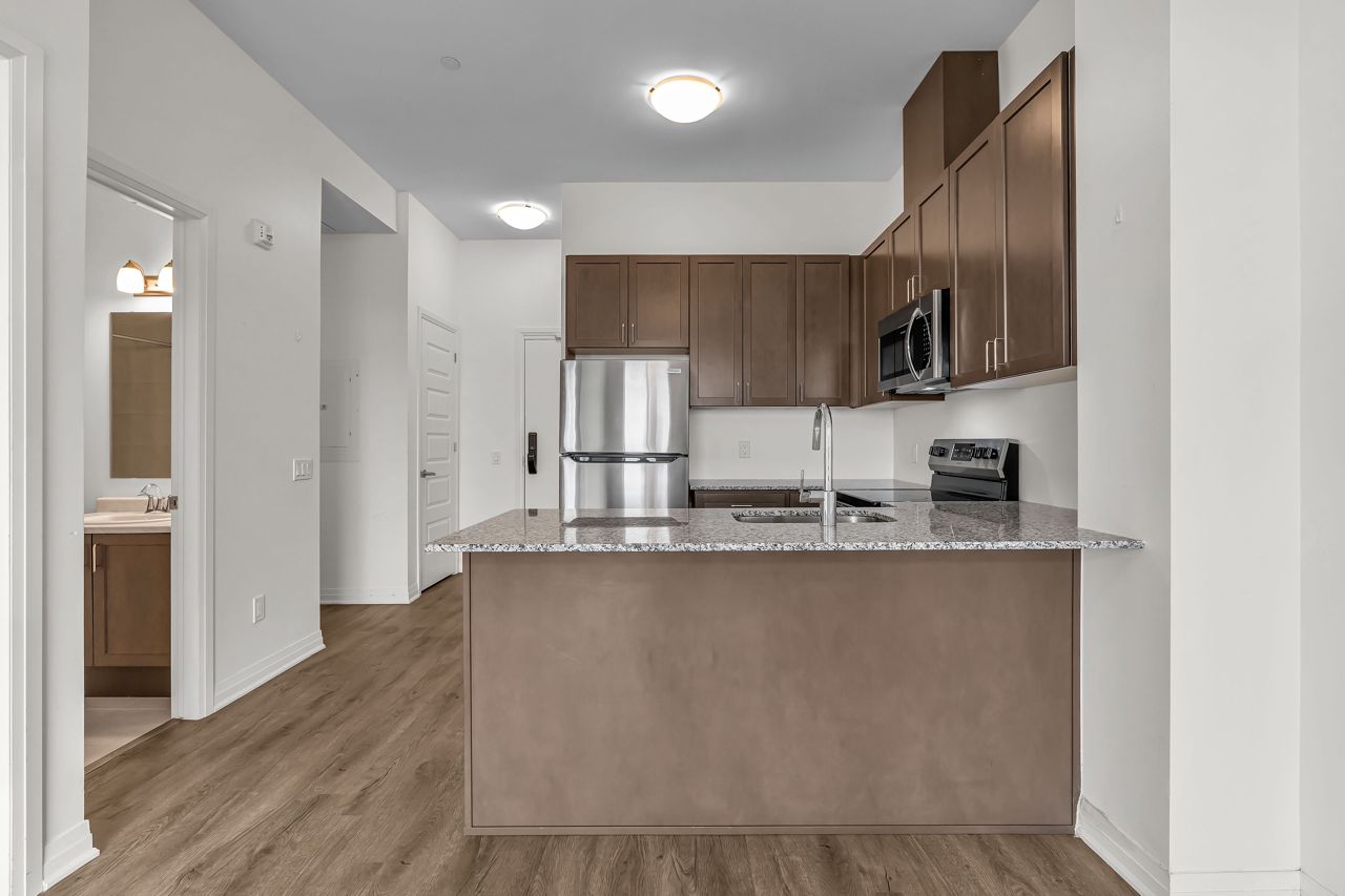 您一直在等待的顶层公寓 617!由屡获殊荣的 Mattamy 家居打造,这个阳光普照的公寓享有俯瞰 公园 的壮丽景色,并能欣赏到令人惊叹的西北方日落景观。高耸的 10 英尺天花板和从地板到天花板的窗户,使这个明亮通透的 1 卧室 + 书房布局(655 平方英尺)成为该建筑中最实用的布局之一。享受 智能家居 技术功能。升级后的开放式厨房拥有石英台面、不锈钢家电、充足的橱柜以及可通往温馨起居空间的早餐吧台。步出您的私人 48 平方英尺阳台,尽情享受宁静的 公园 景观。宽敞的书房非常适合作为家庭办公室或客房区域,公寓还包括时尚的 4 件式浴室和便利的套内洗衣设施。包含一个地下停车位和一个储物柜,位于与公寓相同的楼层。充足的地面访客停车位。大楼提供安全的入口、两部电梯、设备齐全的健身中心、派对室和一个令人印象深刻的屋顶露台。交通便利,靠近 403/407/QEW 高速公路、医院、餐厅、购物中心等。这个顶层公寓不容错过!
