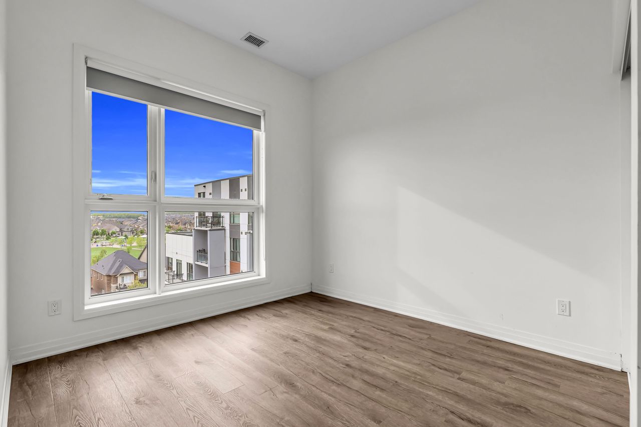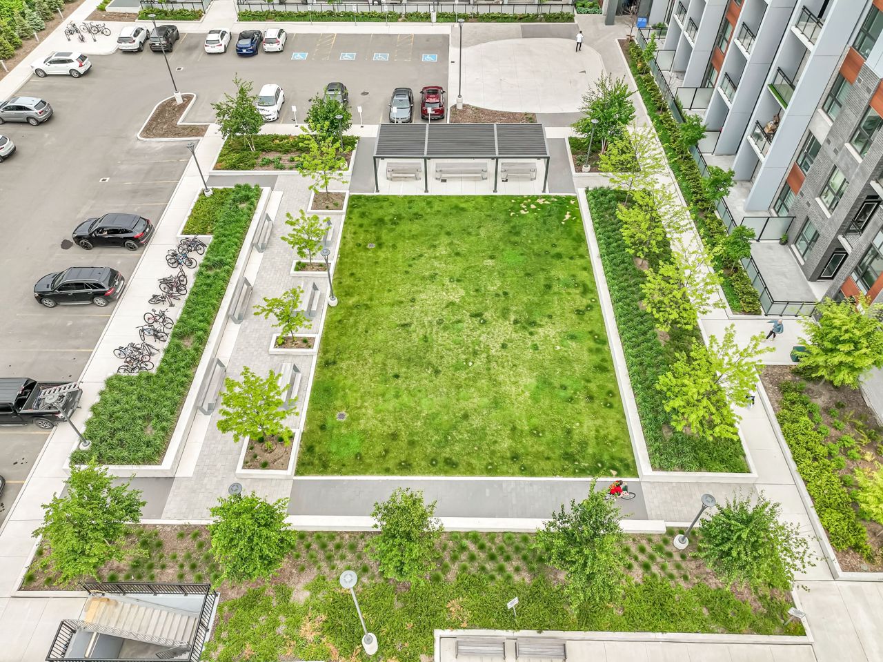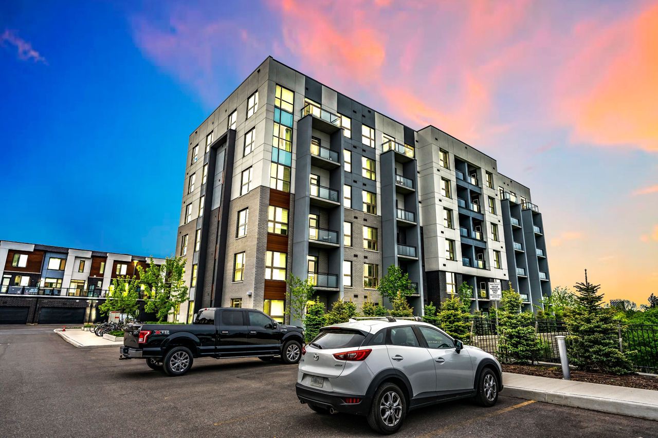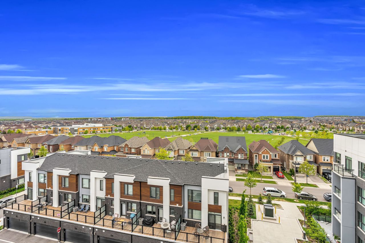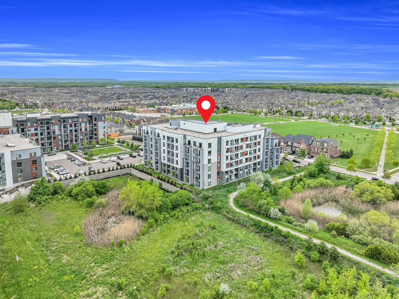 The VIEW you have been waiting for at PENTHOUSE Suite 617! Built by award-winning Mattamy Homes, this sun-drenched suite offers beautiful views overlooking the PARK, with stunning NORTHWEST FACING SUNSET vistas. With soaring 10-FOOT ceilings and FLOOR-TO-CEILING windows, this bright and airy 1 bedroom + den layout (655 SF) is one of the most functional in the building. Enjoy SMART HOME TECHNOLOGY features. The upgraded open-concept kitchen features QUARTZ countertops, STAINLESS STEEL appliances, ample cabinetry, and a breakfast bar that flows into the inviting living space. Step out onto your private 48 SF balcony to enjoy the peaceful PARK Views. The spacious DEN is perfect for a home office or guest area, and the suite includes a stylish 4-piece bath and convenient in-suite laundry. Includes ONE underground parking spot and a locker which is located on the SAME LEVEL AS THE UNIT. AMPLE surface visitor parking. The building offers a secure entrance, two elevators, a fully equipped fitness centre, party room, and an impressive rooftop terrace. Conveniently located near Hwy 403/407/QEW, hospital, restaurants, shopping and more. This penthouse is not to be missed!
