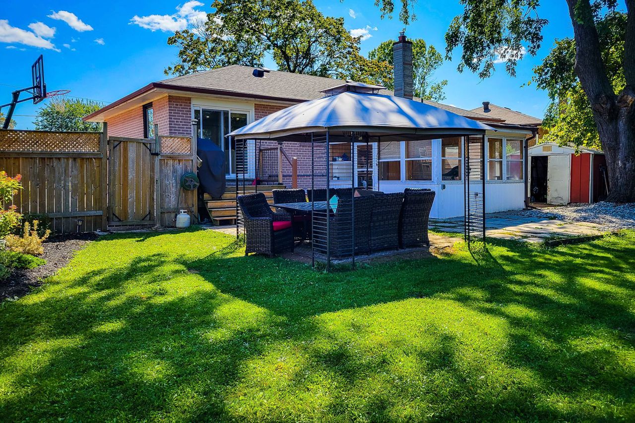 Solid all brick, carpet free bungalow for sale in great family friendly area. Nice open concept main floor with spacious living room, separate dining area & walk-out to back. Eat- In kitchen features ample cupboard space, tiled backsplash , stainless steel appliances, quartz countertop & island with breakfast bar. Updated 4 pc main bathroom. Finished basement with separate entrance, 4pc bath and 2 bedrooms ( one with a walk in closet). Separate sunroom at the back. Deep Backyard with 2 sheds , gazebos and no backing neighbours. Close proximity to schools, parks, transit & all major amenities. Come and check out this great lot in an even better location!