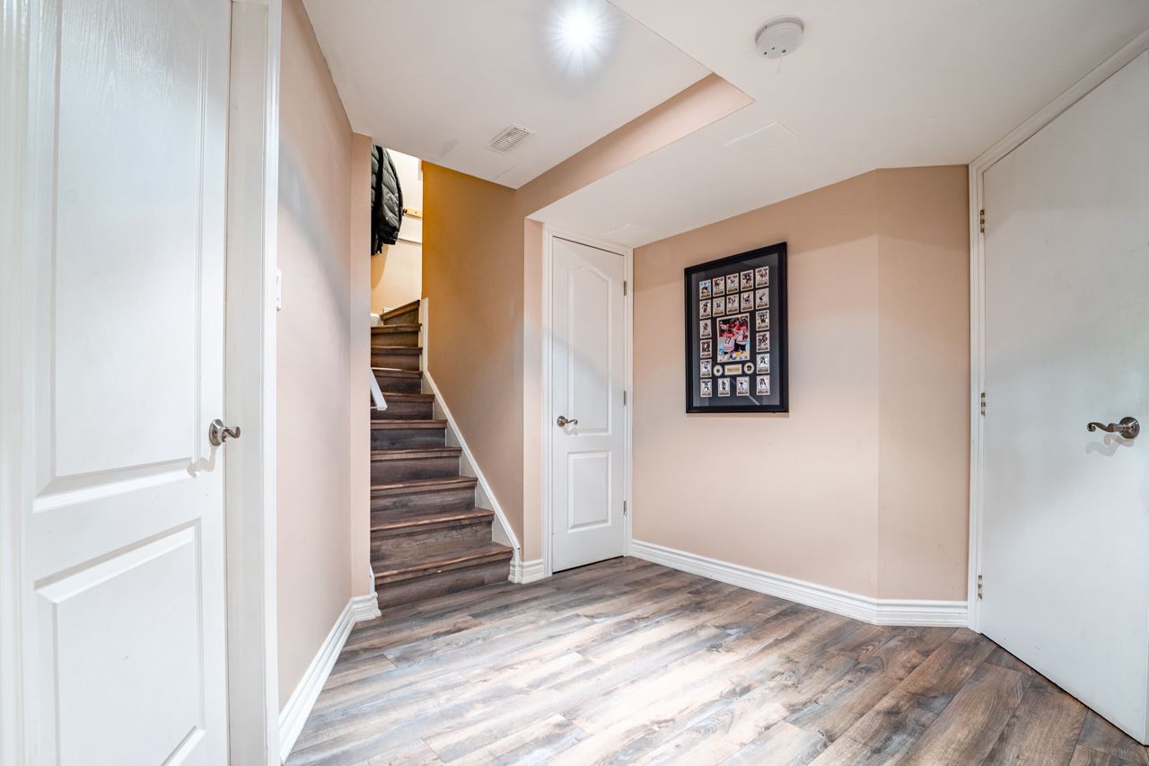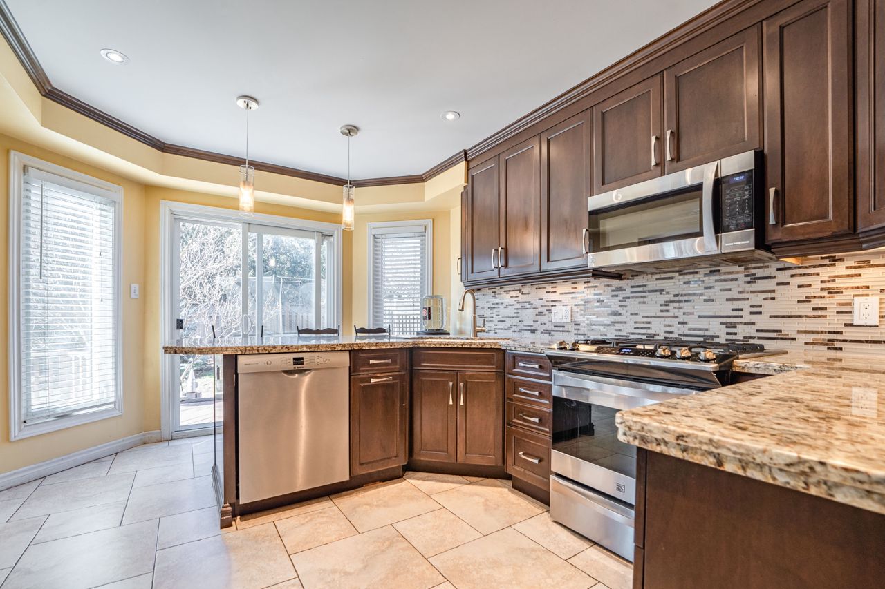 Your family's dream awaits on quiet Fernlea Cres!! Enjoy top schools, a rec center, parks, splash pad, sports fields & trails within walking distance. The Cross Town Trail beckons for scenic adventures, connecting all the way to 16-Mile Creek. Inside, the bright, modern kitchen boasts granite counters, stainless steel appliances & a walk-out to your spacious deck perfect for summer gatherings. Entertain in the connected living/dining area, then cozy up in the 2nd-floor family room with gas fireplace for movie nights. Upstairs, find a primary suite with ensuite bath & walk-in closet, plus 2 generous bedrooms. The finished basement offers extra living space & Murphy bed for guests. Updates include: triple-pane windows, furnace/ac, roof, upgraded insulation, & luxurious solid core door with multi point latch. Short drive to the GO Train, shops, restaurants, Goodlife gym & more.Murphy bed in basement, fridge and freezer in garage, work bench in garage, trampoline, bell satellite dish.