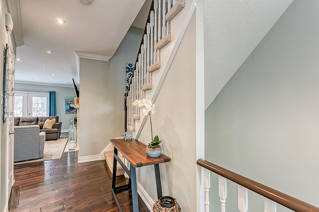 Masterful Design! Absolute luxury! Reno'd Upscale T/Hme W/Luxurious Living Space + Huge Prvt Terr & Rare Att Dbl Grg In Schooner's Reach. Steps To Lake, Harbour, Shops & Restaurants/Pubs. Hrdwd Flrs, 3.5 Lavish Bthrms, Pot Lights, Shutters. Reno'd Kit W/Mrbl Cntrs/Island W/Brkfst Bar& Ss Appls. Huge Entertainer's Lvg/Dng Rm W/Fpl & W/O To Massive Terr. Fam Rm/2 Bdrms/Reno'd 4Pc Bth & Lndry Rm On 2nd Flr. Prim Suite W/Walkout & 4Pc Ens Bthrm W/Soaker Tub & Glass Shwr On 3rd Flr. Lwr Lvl Den. Prefer No Pets & No Smokers. Credit Check & References Req'd.