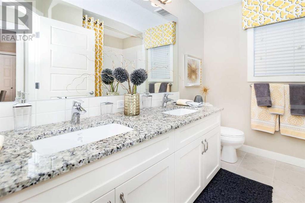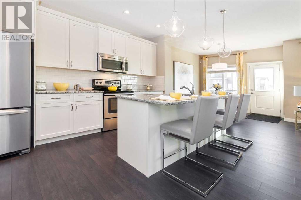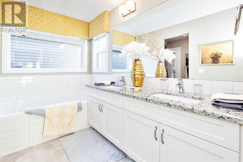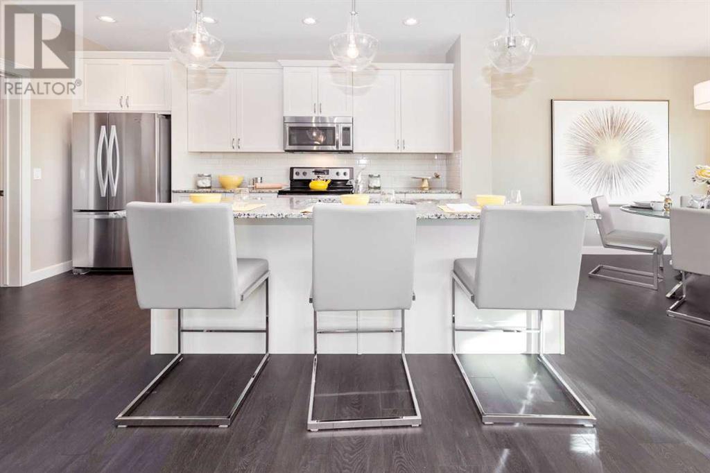 Introducing The Denali 4 by Sterling Homes! This stunning property offers a luxurious living experience. Step inside and be greeted by 9' knockdown ceilings on the main floor, creating a spacious and airy atmosphere. The executive kitchen is a chef's dream, complete with built-in stainless steel appliances. The vaulted ceiling in the bonus room adds a touch of grandeur. Quartz countertops throughout the kitchen provide a sleek and modern aesthetic. A main floor flex room offers versatile space for your needs. The paintgrade railings with iron spindles add an elegant touch. Retreat to the master suite, which features a 5-piece ensuite with dual sinks and a shower with tiled walls and a sliding barn door. Enjoy an abundance of natural light with extra windows throughout the home, including the basement. Cozy up to the gas fireplace with a tiled surround in the living area. The property backs onto green space, offering privacy and a serene setting. *Photos are representative* (id:22211)