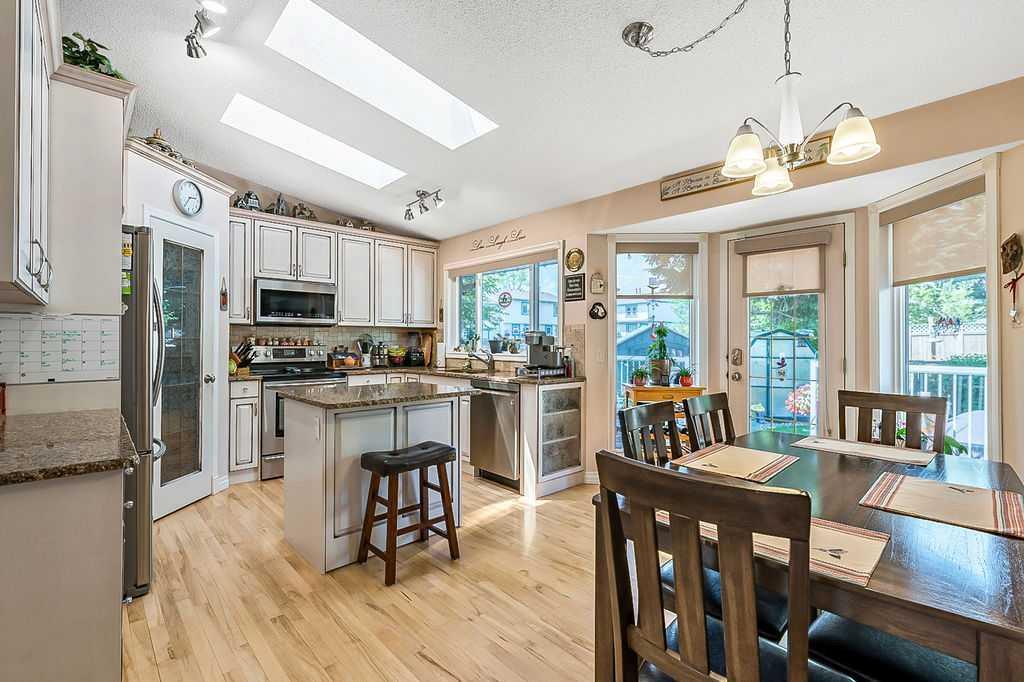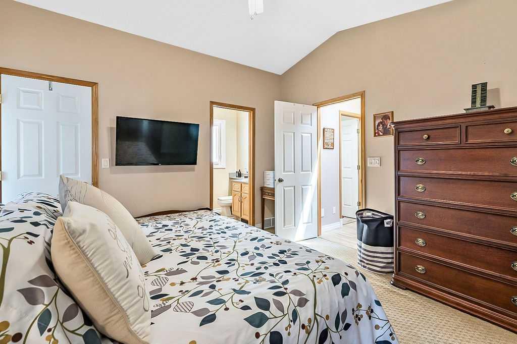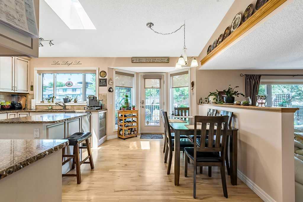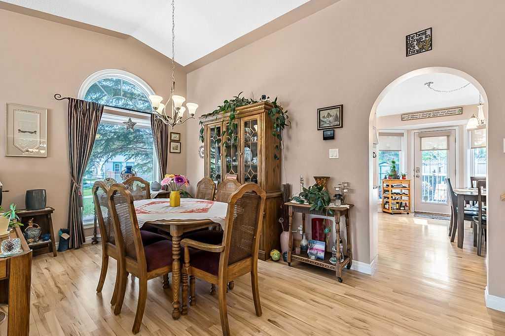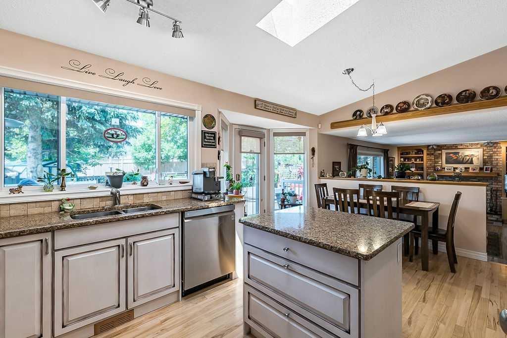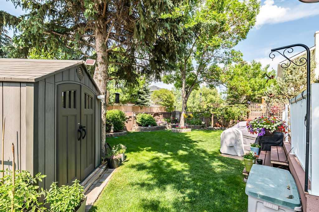 This home is located in the sought after area of Crystalridge in Okotoks with access to Crystal Shores Lake and Beach House for year round activities of swimming, skating, fishing as well as other outdoor activities such as tobogganing, parks and playgrounds. The pathway next to the house makes for a short jaunt to Dr. Morris Gibson school and other neighbourhood schools, the Okotoks Rec Plex and Curling Rink, golfing is a short distance away at Crystalridge Golf Course. All amenities (shopping, restaurants, Costco and big box stores) are easily accessible and it is a short commute to Calgary. This well maintained home has 2618 sq ft of living space plus a large storage area. Wood burning fireplace with a gas log lighter in the family room, main floor laundry, vaulted ceilings, skylights, upgraded kitchen (2014), new furnace (2021), central air, maple hardwood throughout the main floor, attached double garage with man door to side yard, front deck and 2-tiered back deck for entertaining and family BBQ’s in the private yard. The yard is fully fenced (new in 2020), raised garden beds, greenhouse and garden shed, underground sprinklers & a Caldera Spa Hot Tub (2020). Bring the family for a viewing! (id:22211)