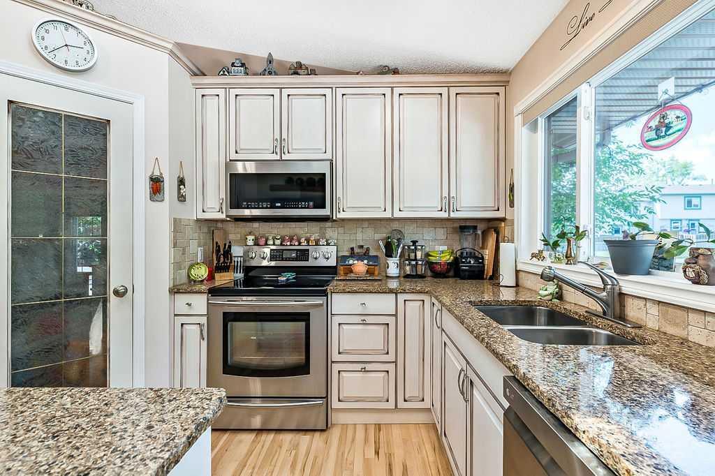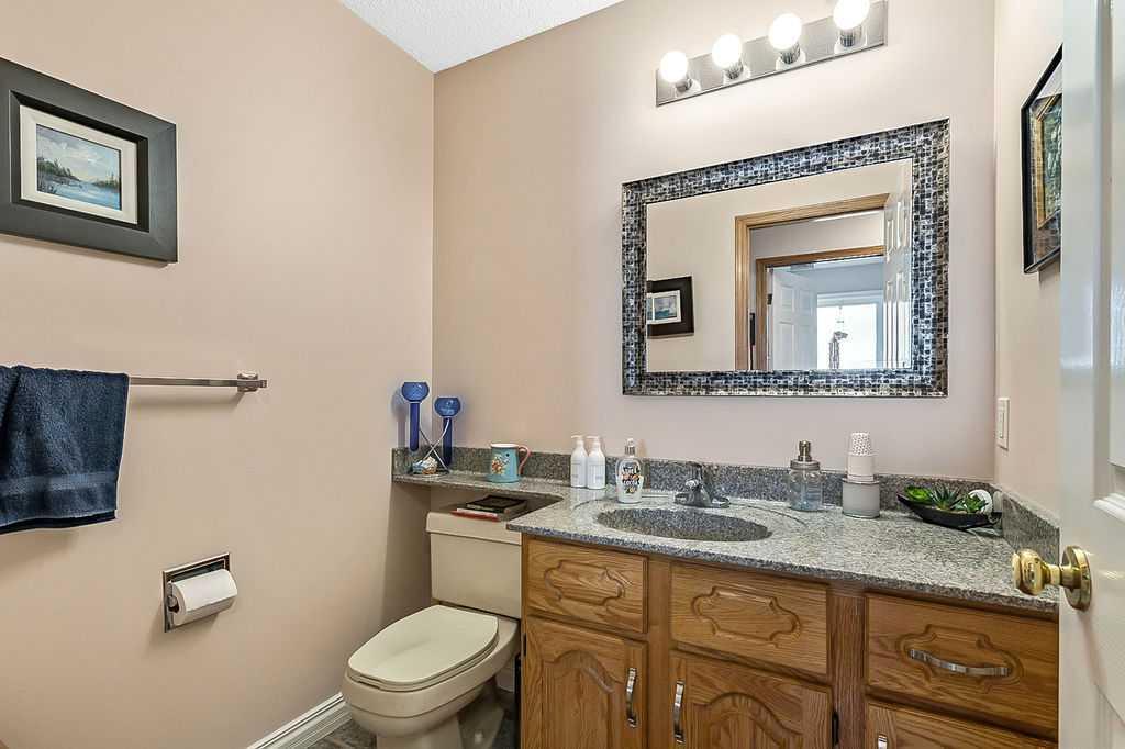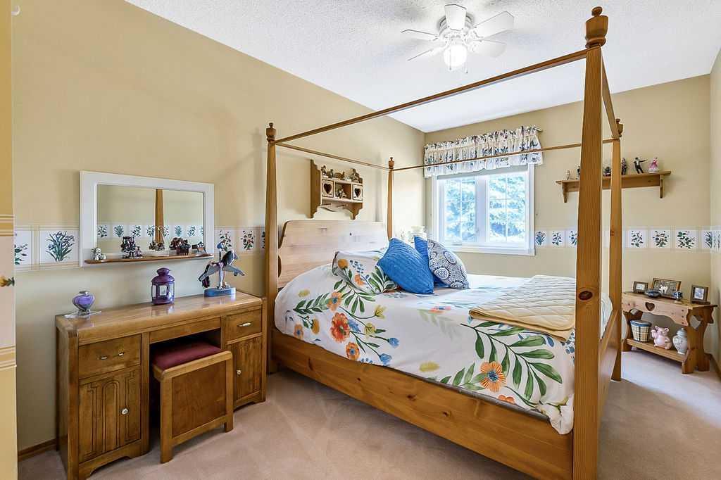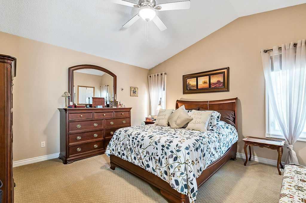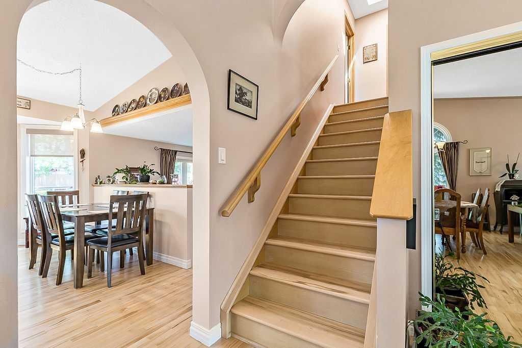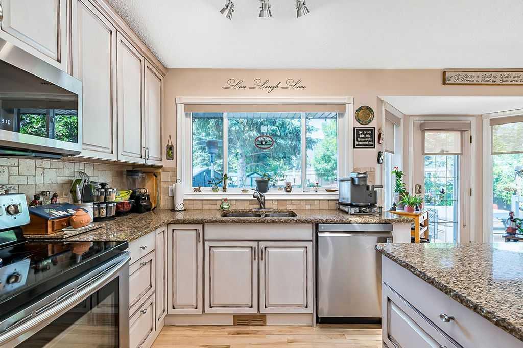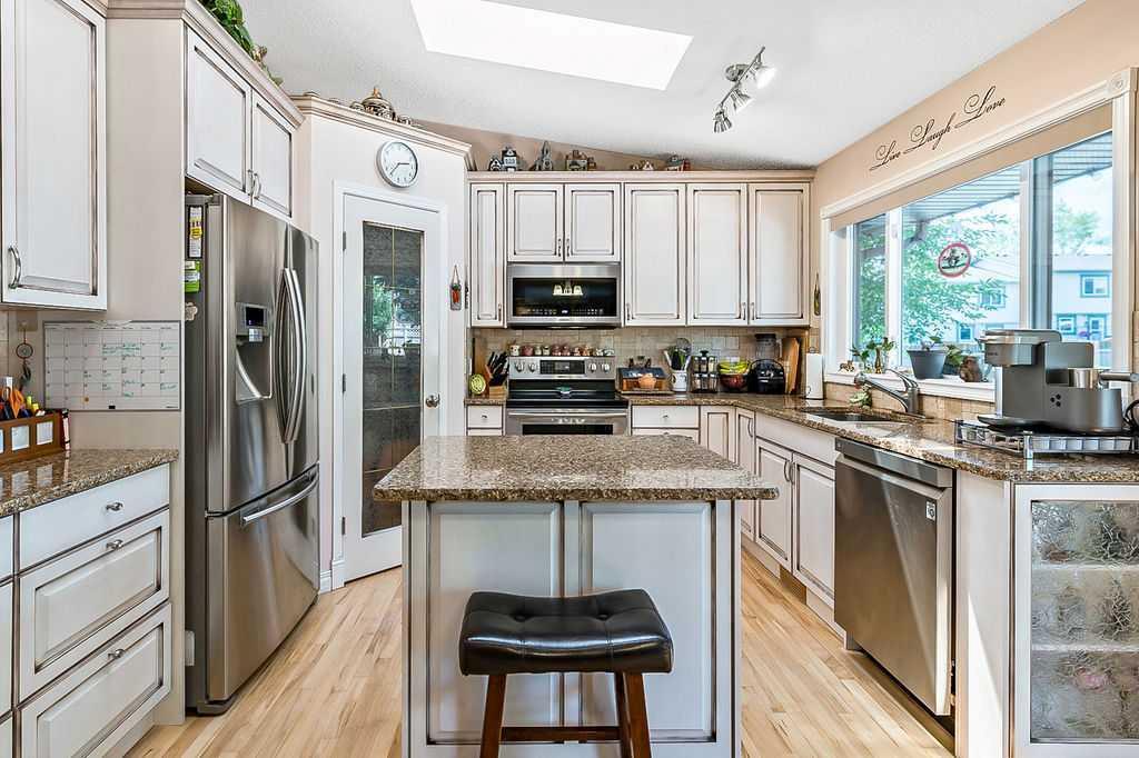 This home is located in the sought after area of Crystalridge in Okotoks with access to Crystal Shores Lake and Beach House for year round activities of swimming, skating, fishing as well as other outdoor activities such as tobogganing, parks and playgrounds. The pathway next to the house makes for a short jaunt to Dr. Morris Gibson school and other neighbourhood schools, the Okotoks Rec Plex and Curling Rink, golfing is a short distance away at Crystalridge Golf Course. All amenities (shopping, restaurants, Costco and big box stores) are easily accessible and it is a short commute to Calgary. This well maintained home has 2618 sq ft of living space plus a large storage area. Wood burning fireplace with a gas log lighter in the family room, main floor laundry, vaulted ceilings, skylights, upgraded kitchen (2014), new furnace (2021), central air, maple hardwood throughout the main floor, attached double garage with man door to side yard, front deck and 2-tiered back deck for entertaining and family BBQ’s in the private yard. The yard is fully fenced (new in 2020), raised garden beds, greenhouse and garden shed, underground sprinklers & a Caldera Spa Hot Tub (2020). Bring the family for a viewing! (id:22211)