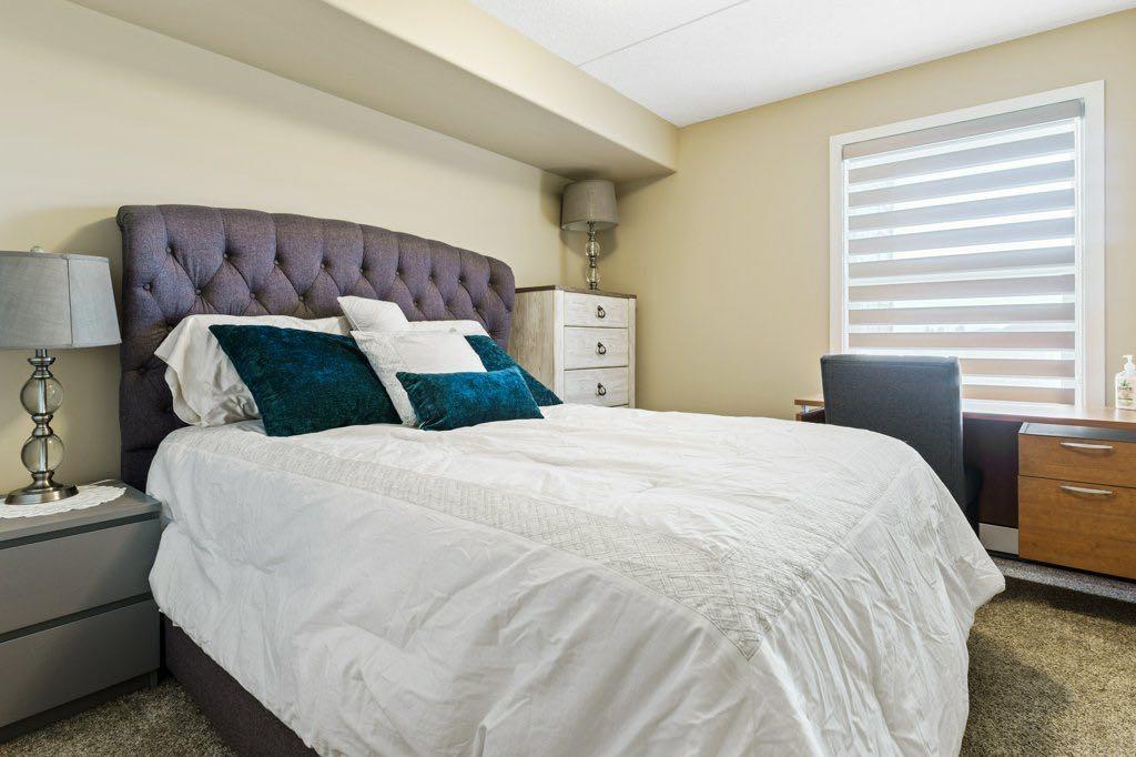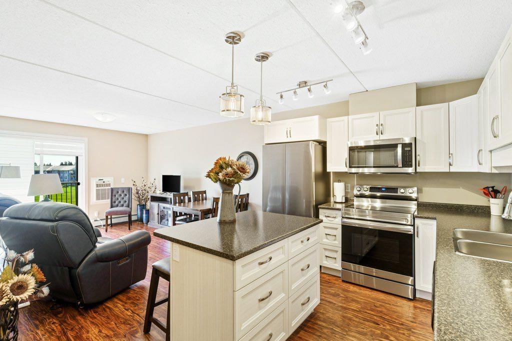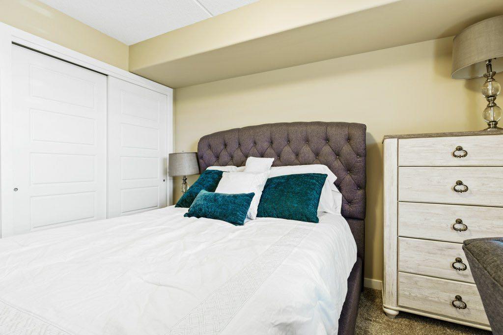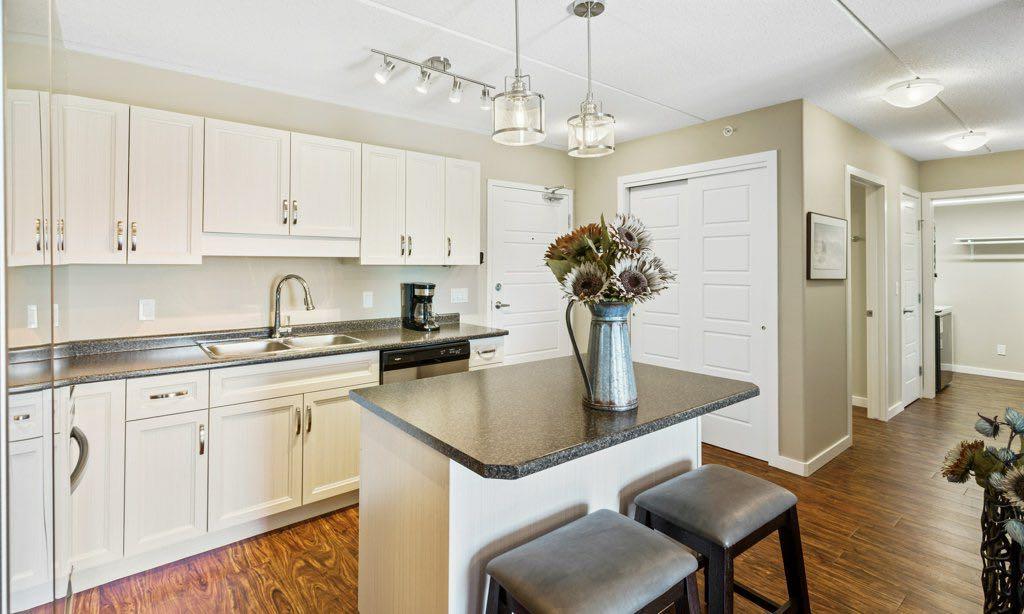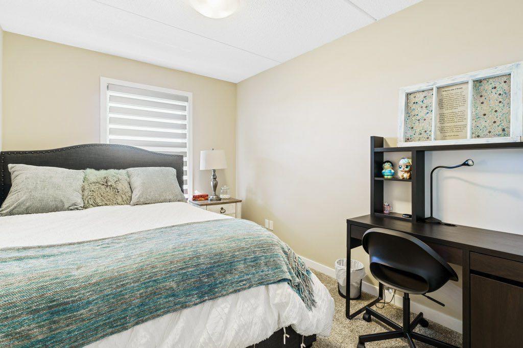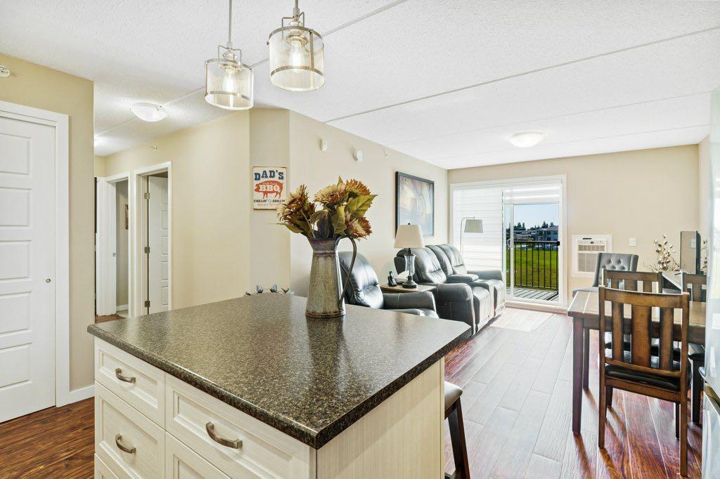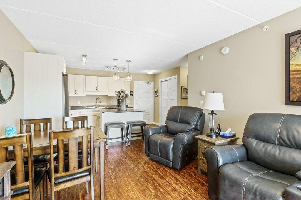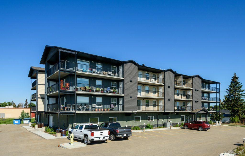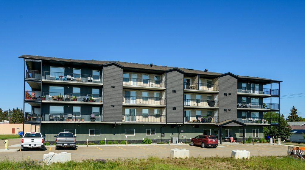 WELCOME HOME!!! Come home to your like new, Spanwest built 55+ condo. Conveniently located in Olds, on the former high school football field, boasting great views of the morning sun - ideal for your morning coffee. With 2 bedrooms, 1 bath, it is perfect for first time, or downsizing buyers! Building features parking and common area on the main level, with 3 additional floors containing 22 units. This condo comes with 1 inside parking spot. Standard features include triple pane windows, LED lightning, dual wall system and 8" hollowcore concrete floors. Must see home!!! (id:22211)