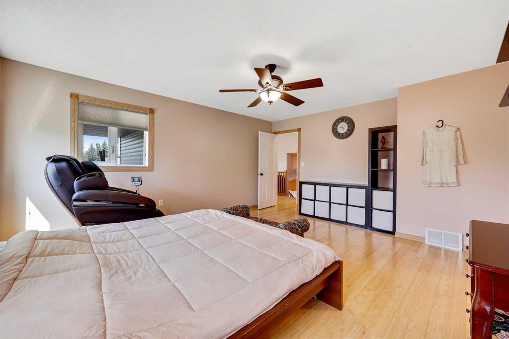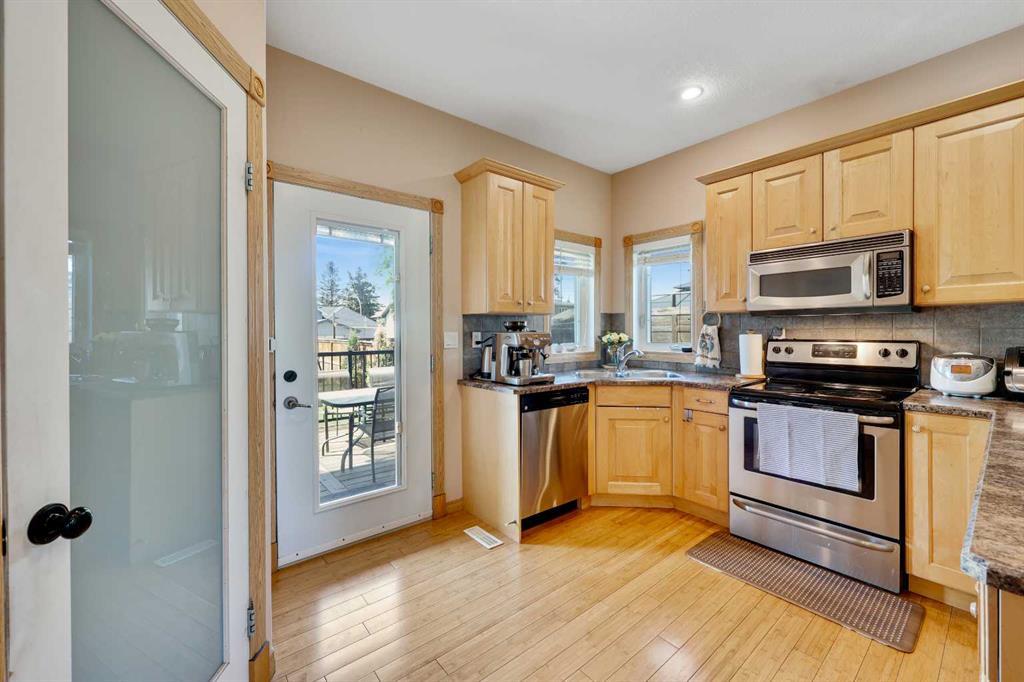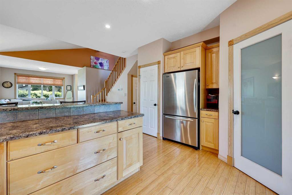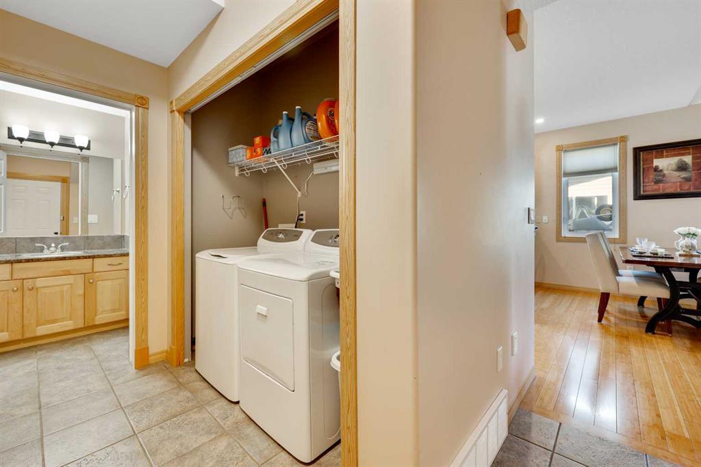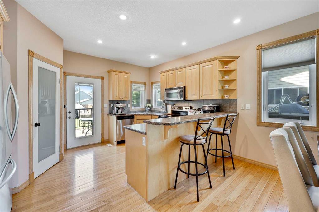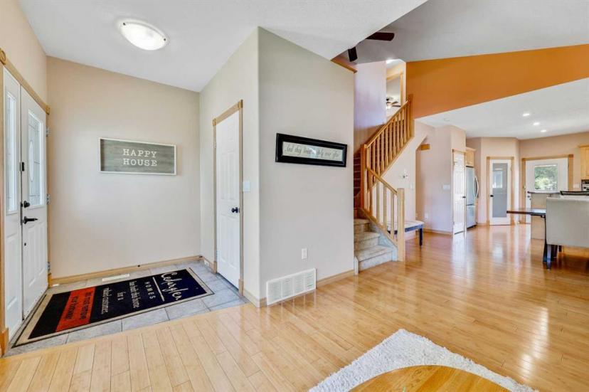 Her dream home & His dream garage! Well maintained beautiful 2 Storey home, located close to Craig's corner play park and the pool. This home features very open floor plan with kitchen, dining room and living room all open to each other and is impressively built for comfort, functionality and efficiency. Kitchen features custom maple cabinets and stainless steel appliances. Bamboo flooring throughout main and upper level. Toe kick sweep vents at every entrance. Laundry chute from second storey family room/loft. Triple glazed, argon-filled, Solar Ban windows. The list goes on. Upstairs features bright open bonus room with private upper deck, 3 good sized bedrooms including a large master w/ walk-in closet and terrific en-suite. Fully developed basement is equipped with in-floor heating system and features large family room and a 4PC bathroom. Boiler system and forced air for efficient and quick heat, geo-thermal cooling system for hot summer days. South-facing balconies off Master and loft. The spectacular oversized heated tandem triple attached garage is perfect for a workshop, car enthusiast and more. The garage features open floor in third bay, adjacent work space, front and back drive through and heat. The garage has access to the back yard, that is fully fenced, landscaped and big enough to park your RV. Short walk to Craig's Corner play park, Olds College & pool facilities. Click the Virtual Tours for more detail! (id:22211)