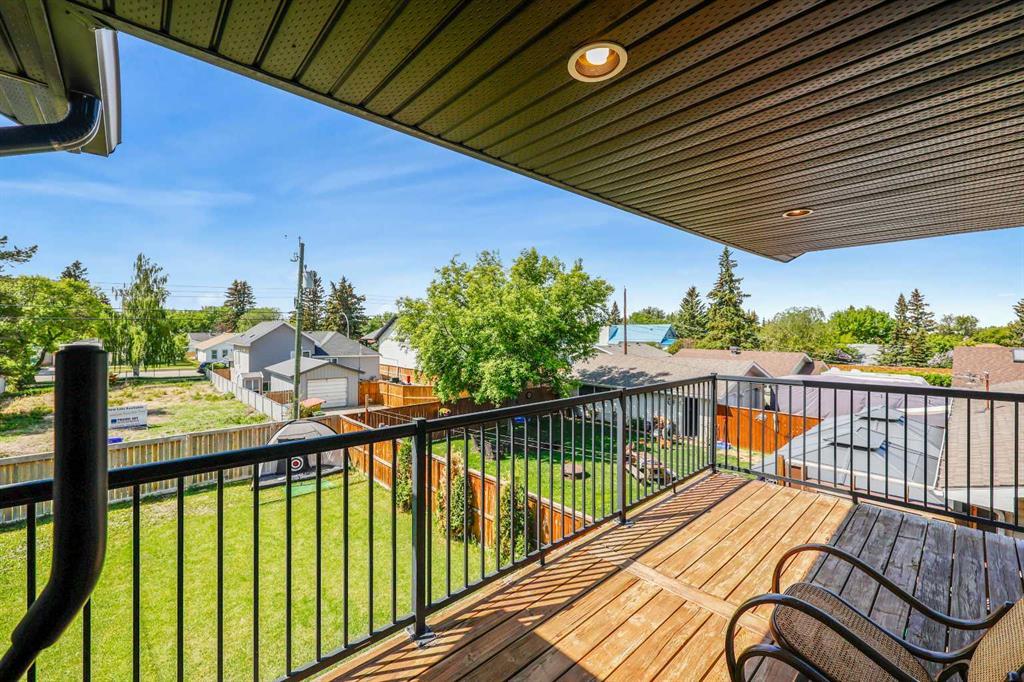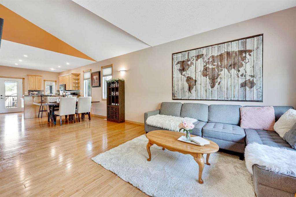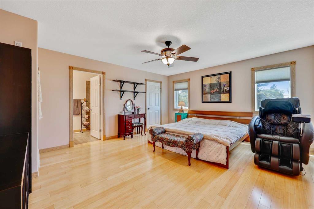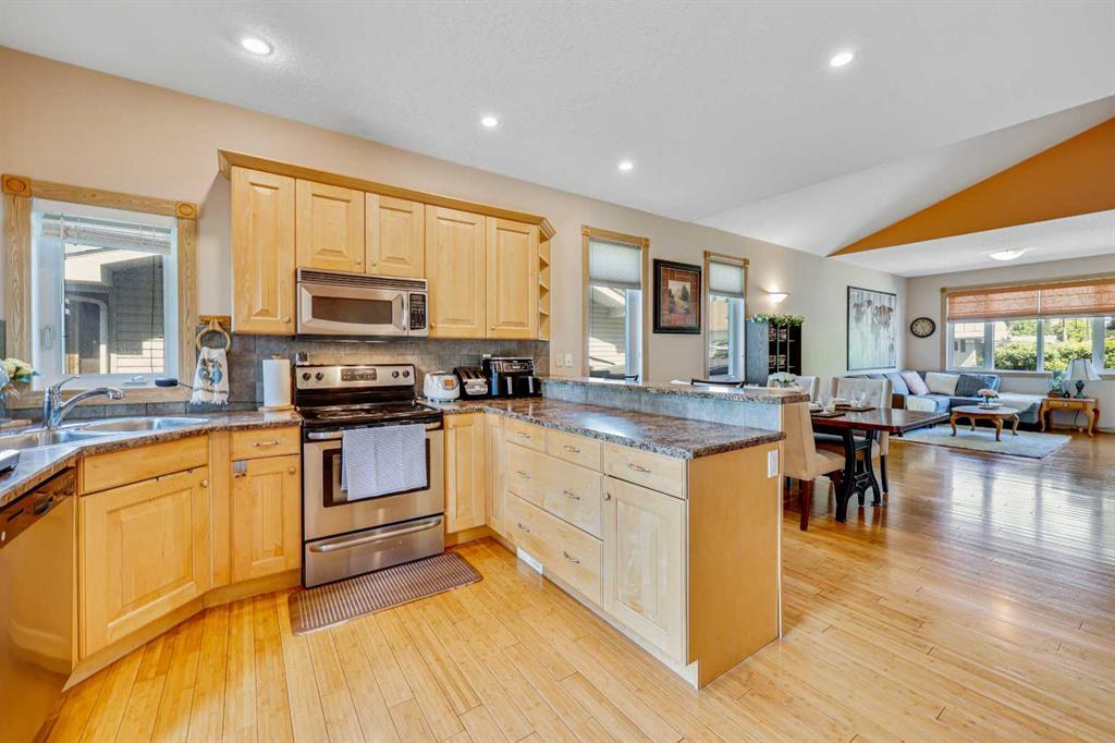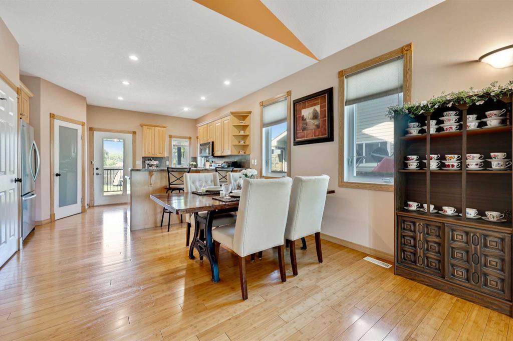 Her dream home & His dream garage! Well maintained beautiful 2 Storey home, located close to Craig's corner play park and the pool. This home features very open floor plan with kitchen, dining room and living room all open to each other and is impressively built for comfort, functionality and efficiency. Kitchen features custom maple cabinets and stainless steel appliances. Bamboo flooring throughout main and upper level. Toe kick sweep vents at every entrance. Laundry chute from second storey family room/loft. Triple glazed, argon-filled, Solar Ban windows. The list goes on. Upstairs features bright open bonus room with private upper deck, 3 good sized bedrooms including a large master w/ walk-in closet and terrific en-suite. Fully developed basement is equipped with in-floor heating system and features large family room and a 4PC bathroom. Boiler system and forced air for efficient and quick heat, geo-thermal cooling system for hot summer days. South-facing balconies off Master and loft. The spectacular oversized heated tandem triple attached garage is perfect for a workshop, car enthusiast and more. The garage features open floor in third bay, adjacent work space, front and back drive through and heat. The garage has access to the back yard, that is fully fenced, landscaped and big enough to park your RV. Short walk to Craig's Corner play park, Olds College & pool facilities. Click the Virtual Tours for more detail! (id:22211)