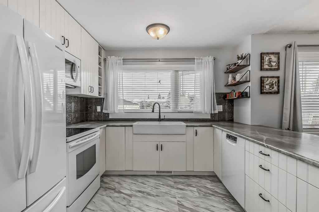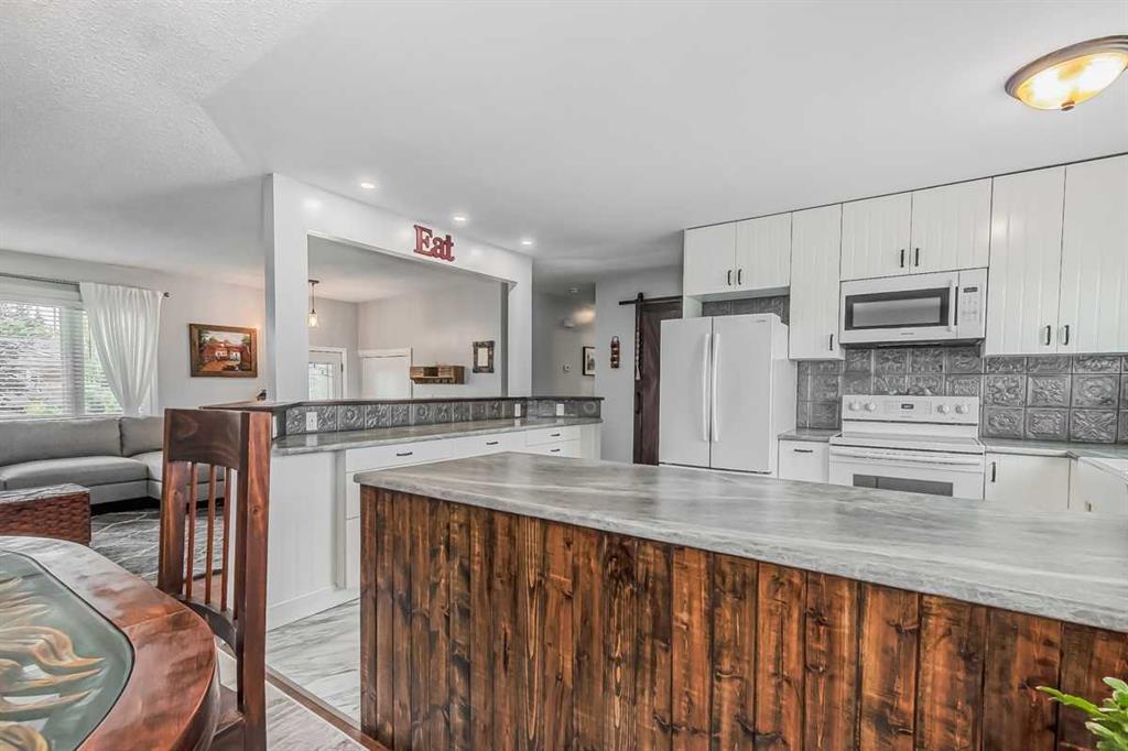 Welcome to 5210 - 44th Street, OLDS! This immaculate four bedroom, 2 bath home is move in ready! Many upgrades and updates over the years including the replacement of all windows in the house! The main floor boasts an open floor plan! There is a large living room with a cozy electric fireplace. The bright kitchen is complete with a large island, plenty of cupboard and counter space and an upgraded tile backsplash! There is a large pantry with a sliding barn door and a separate area for your dining table! The three bedrooms on the main floor all have hardwood and large windows! There is a an updated four piece bath! The fully developed basement features an OVERSIZED fourth bedroom, a large rec room and a three piece bath. Here you will find a separate laundry area and a separate storage room and work shop area! There is central air for the warm summer days, the furnace was replaced approx 2017, Hot water tank replaced approx 2020 and newer roof shingles on the house. You will love the large, fully landscaped backyard! There is an oversized single detached garage (which will fit a full sized truck), room for your RV plus the sellers will leave the canopy, which is perfect for storing another vehicle or toys! Call to view this exceptional property located in a quiet and mature neighborhood! (id:22211)