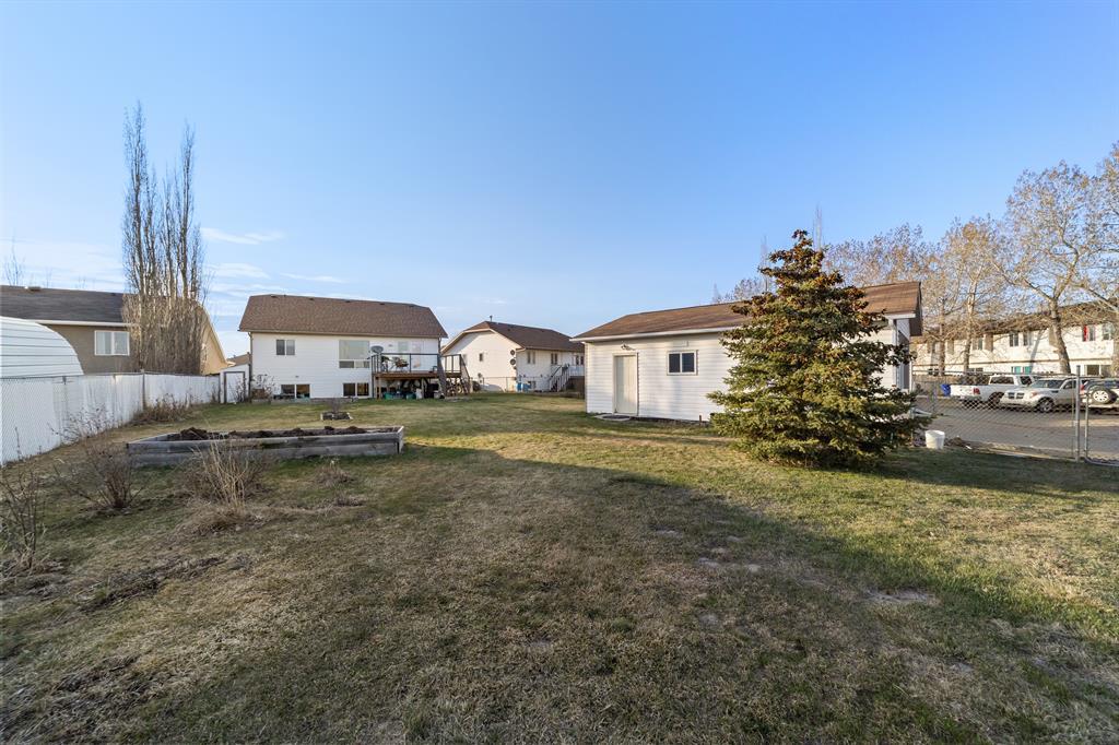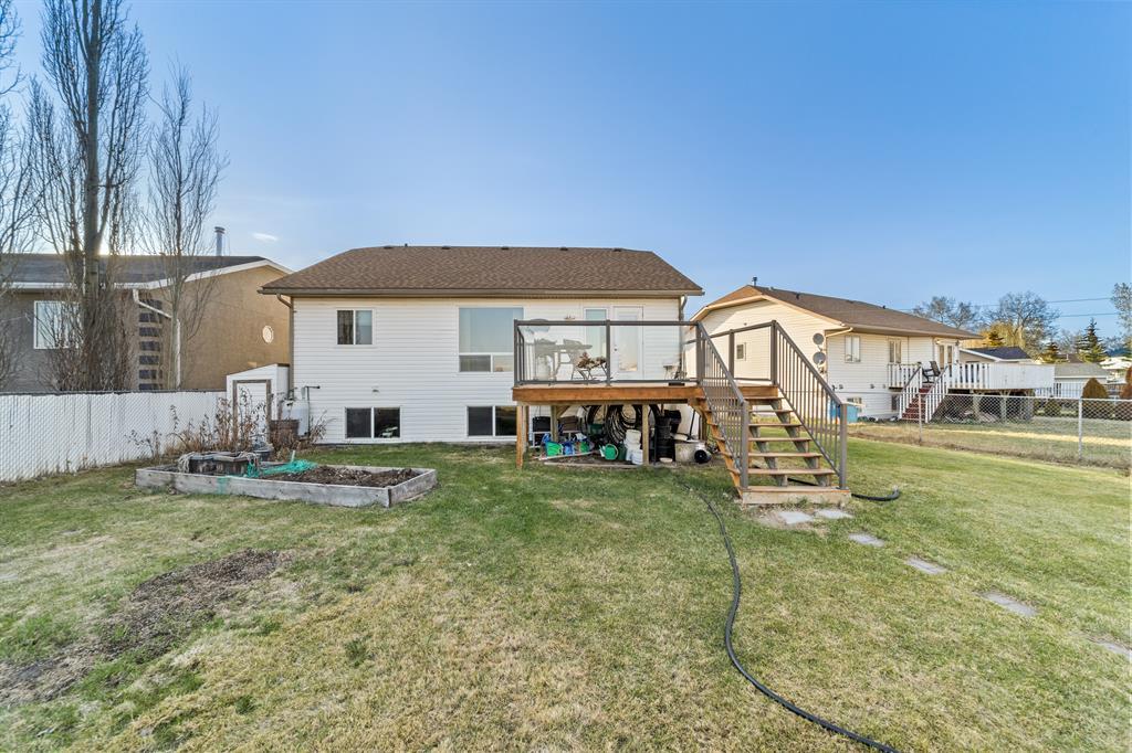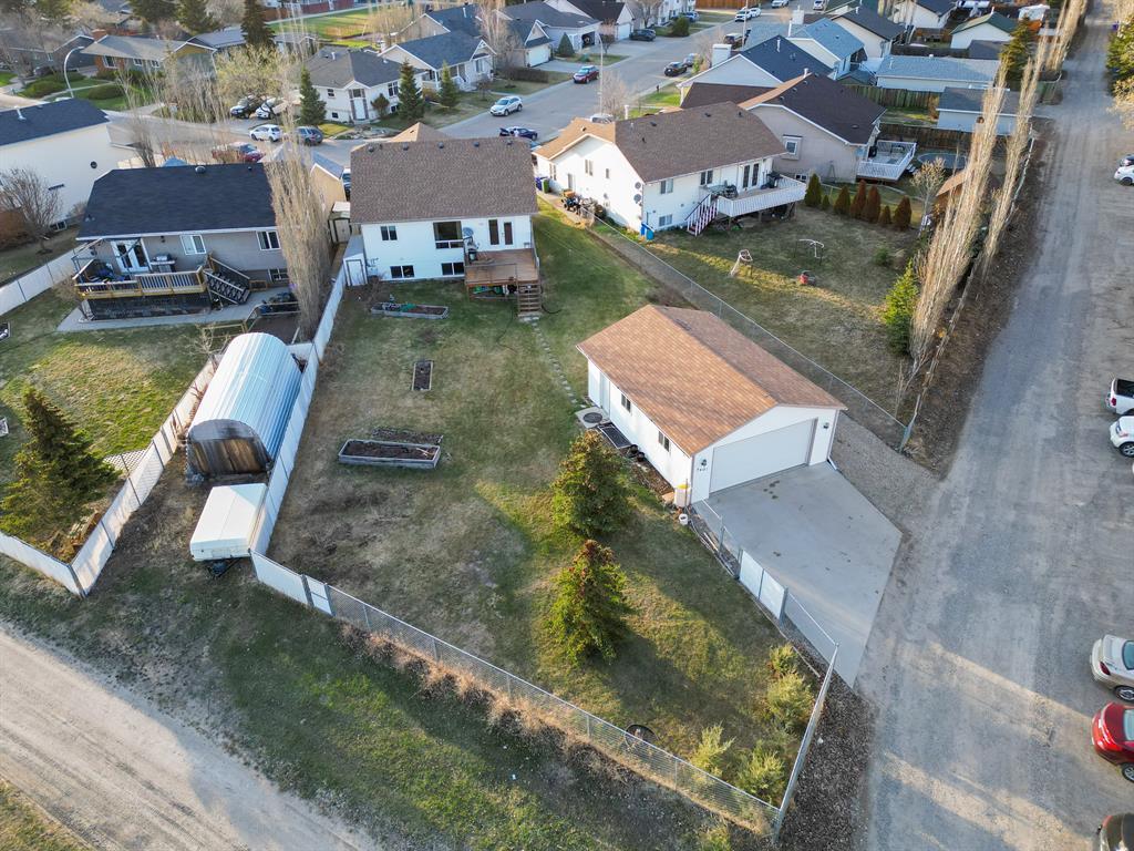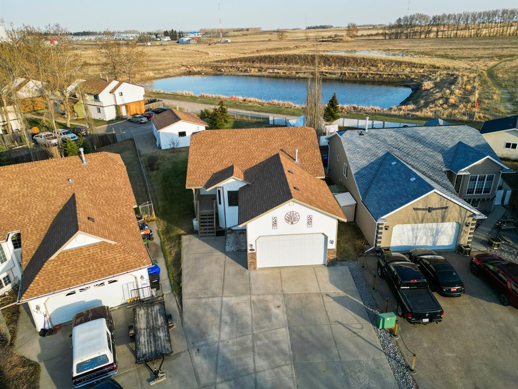 Your search is over and QUICK POSSESSION!! This fantastic BUNGALOW will check all the boxes. Great layout for anyone looking to "resize" with just under 1200 sq ft of well laid out home and, if outdoor living is your thing, this lot is pie shaped and LARGE! You are sure to appreciate many of the things this home has to offer, starting the moment you enter with the good sized entrance that is perfect for all the "hellos & goodbyes". Next, on to the heart of the home...the kitchen, which has a functional layout and has been updated with granite, great cabinets with numerous pull-outs, and most of the appliances have been updated along the way. The dining area is central to both the kitchen and living room making it great for gathering with family and friends. You are sure to enjoy the large south windows that look out onto your massive back yard, complete with raised garden beds, fruit bushes/shrubs. This level is also where you will find the primary bedroom with 3 pce ensuite & walk-in closet, 2nd bedroom, office/flex area, 4 pce bathroom and laundry pair. Downstairs is fully developed with a good sized bedroom, family room with cozy fireplace and wet bar, 3 pce bathroom, plenty of storage, flex space, work shop and large windows. Outside won't disappoint, front drive DOUBLE ATTACHED GARAGE with large concrete apron, a 21' X 29' DETACHED GARAGE that is heated, built-in work benches and 220V. There is also a graveled parking spot for the RV, with all of this, you are sure to have plenty of room for the trailers, toys and extra parking. Beyond your back fence and across the alley you have a great view of the man made pond and green space, perfect for bird watching and/or enjoying a tranquil moment! This home has it all and is in a desirable mature area of Olds, close to schools and many amenities. To help those ever rising utility bills there has also been extra insulation blown into the attic! Book your showing today, with all this one has to offer, it won't last long! (id:22211)